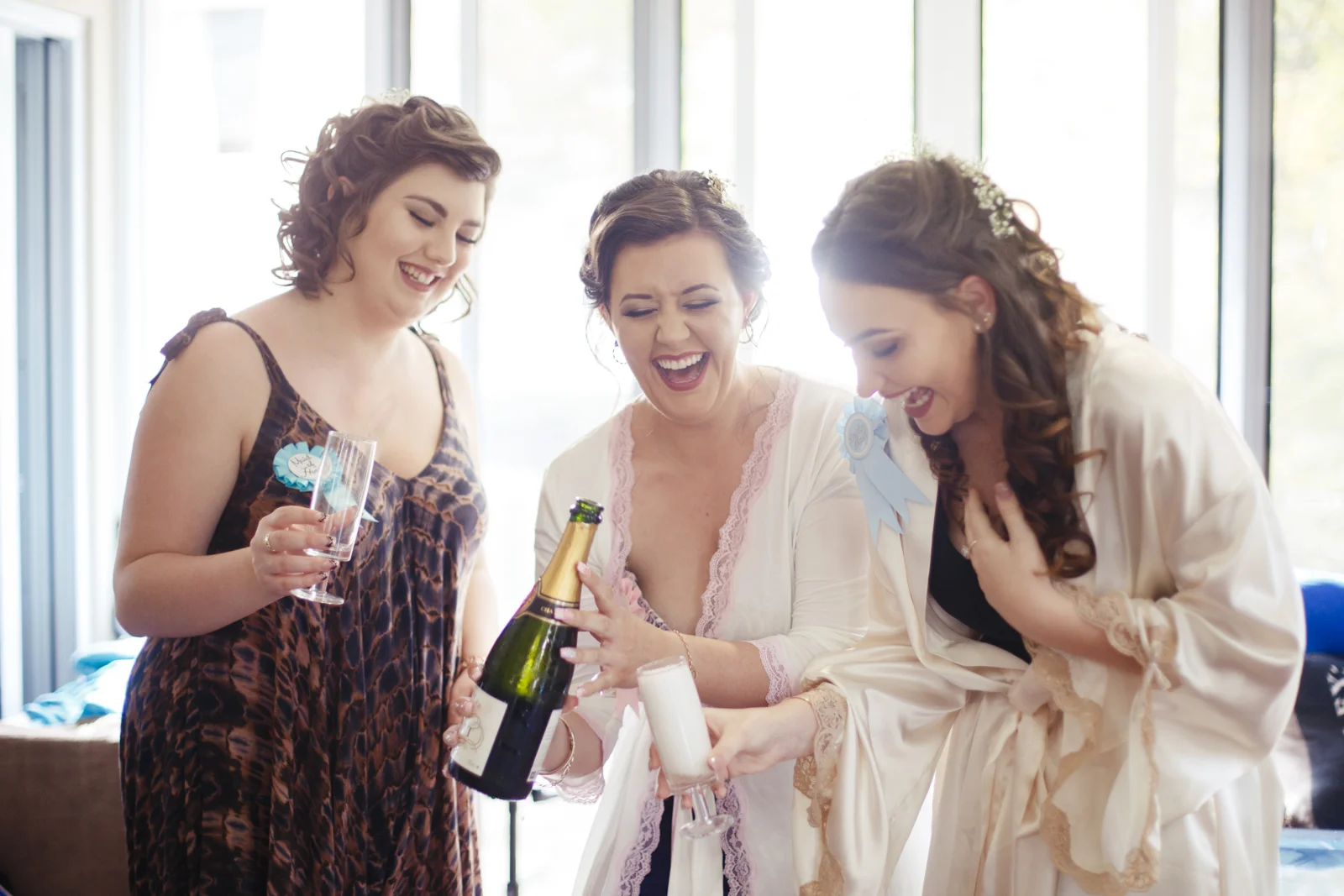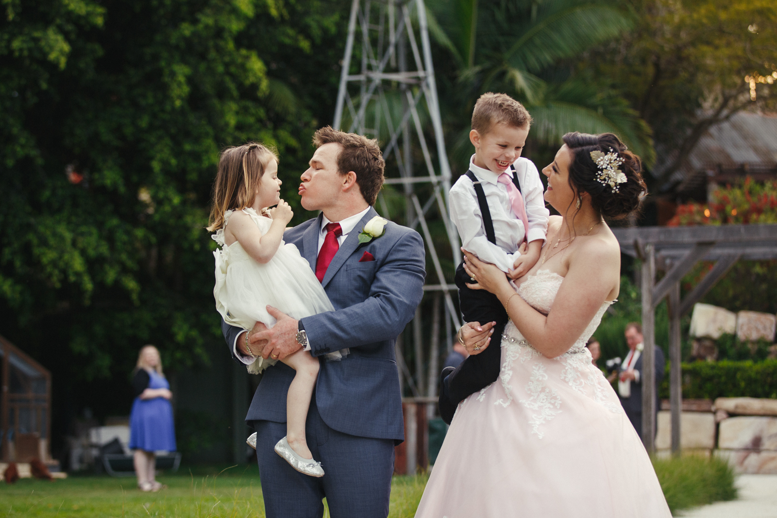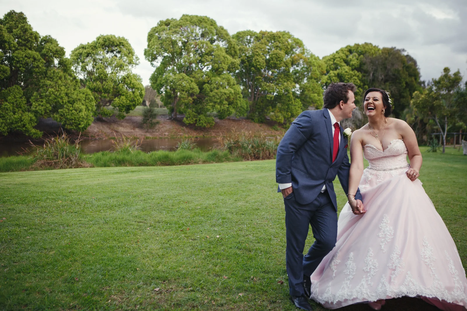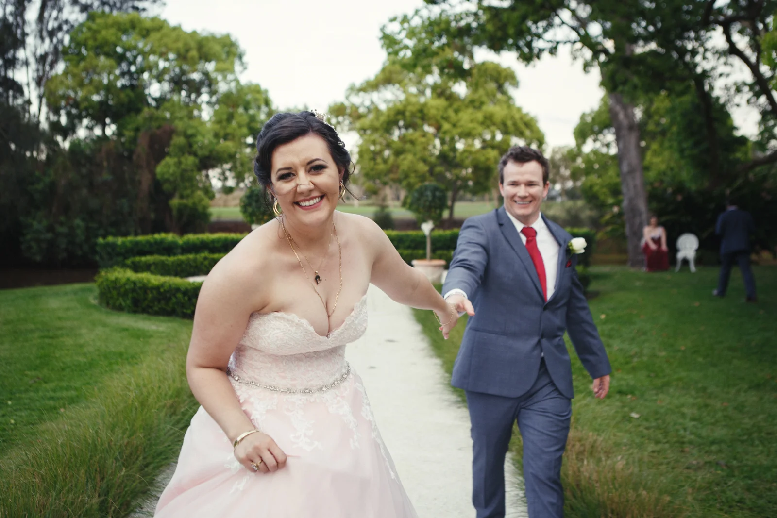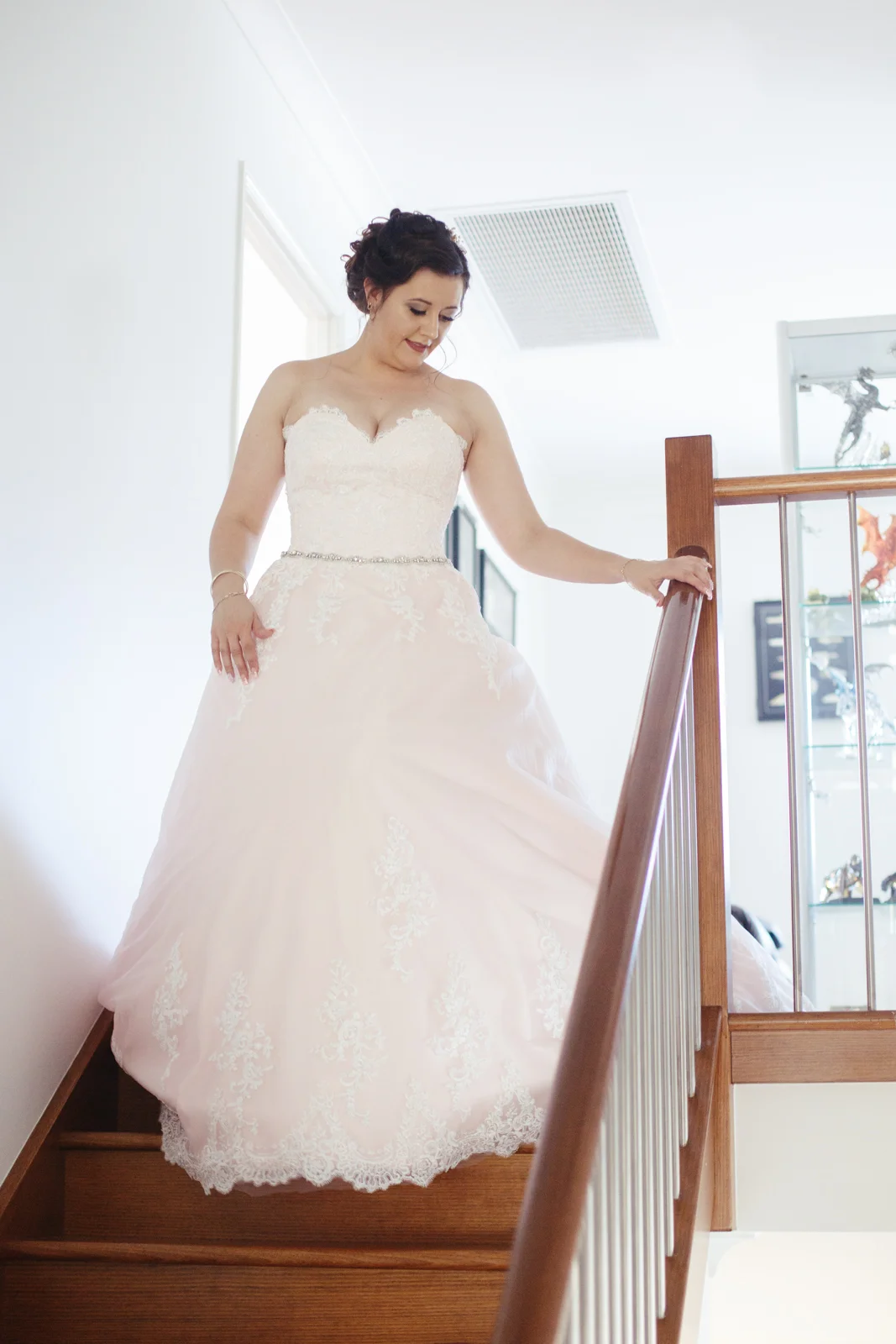When one of our crew members turned up at Jenna's pre getting ready place, she had her two bridesmaids and mother surrounding her with a few laughs. With a deep dark red lipstick and a dress Jenna's mother made for her; the white lace meshed effortlessly with the pink undercoat to which we rarely see!! This sleeveless dress looked exquisite on Jenna with her hair done up and curled to the side, she truly looked like a dream. Accompanying her look was the two bridesmaids of her choosing who to which wore dark maroon floor length gowns with white trimming.