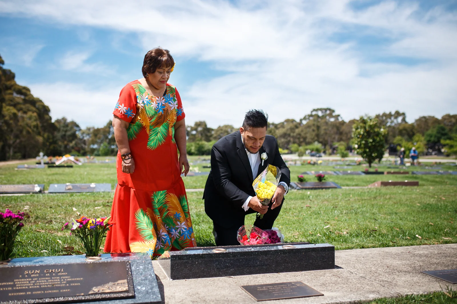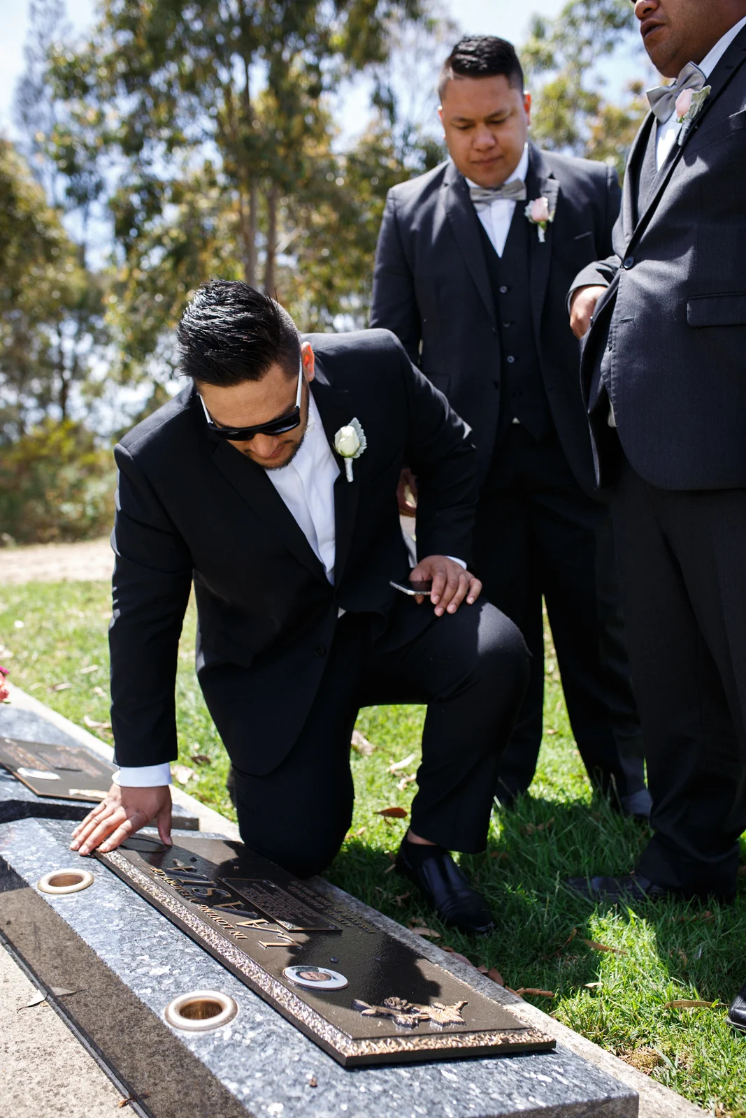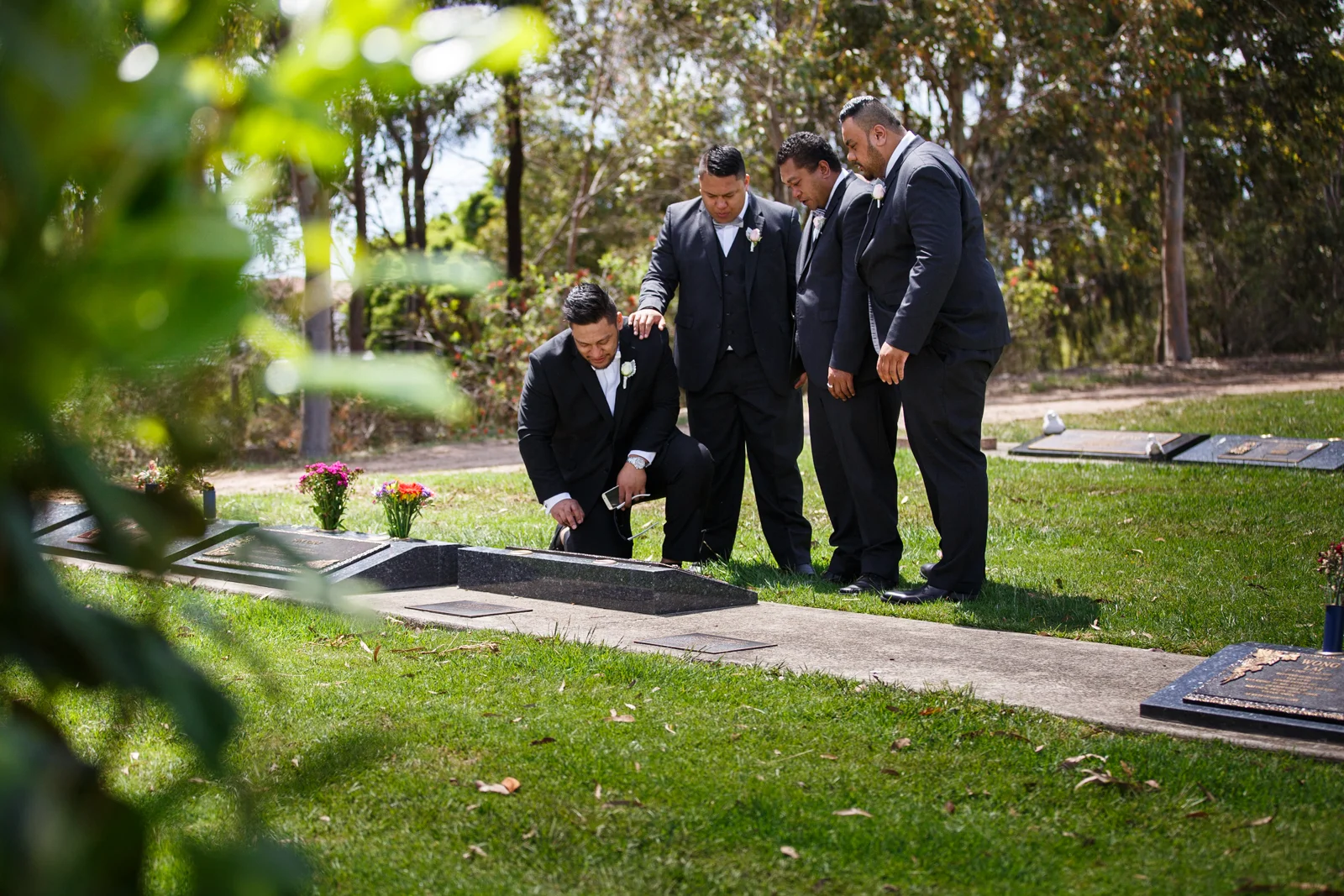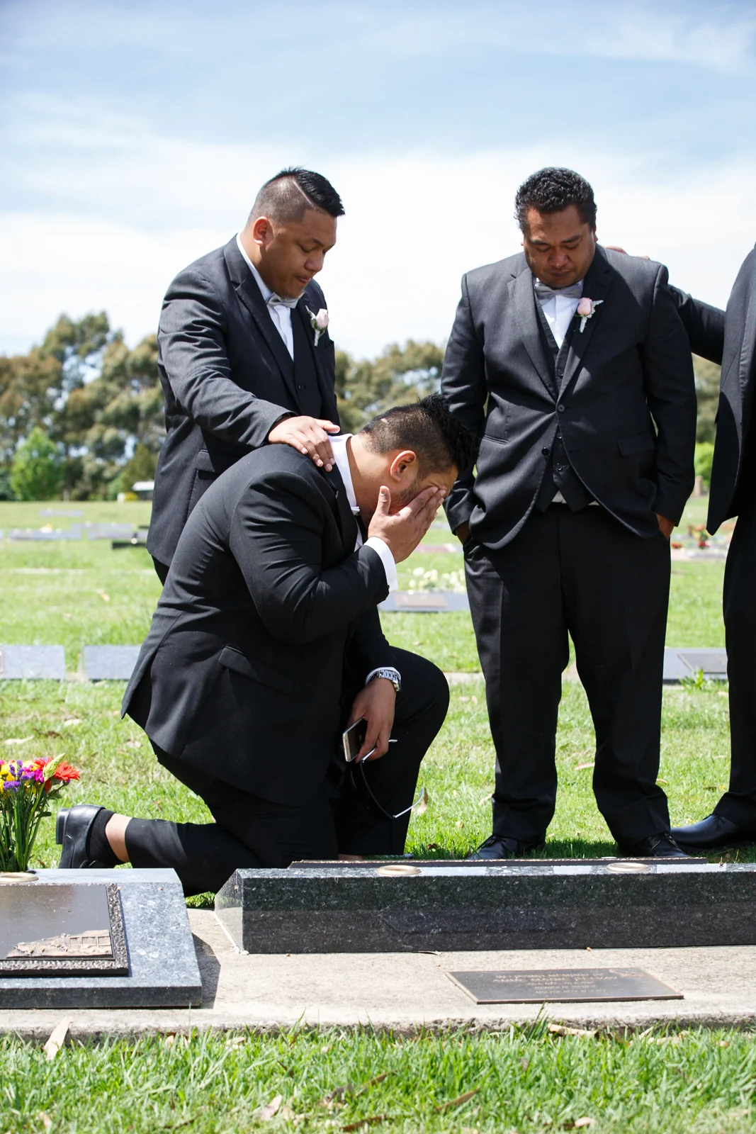 Welcome to our blog from the time we spent with Caleb & Samantha on their Wedding Day, The location was Melbourne, We started with the guys at Narre Warren North Caleb and the boys where super fun, relaxed and very welcoming. Didn't take them long to put their suits on before we went to our next stop which was one of the more emotional moments for the boys as caleb his mum & brothers visited his dad at the cemetary on his big day. We love it when we get to cover our weddings with Photography and Video and capture all the emotions that the day has to offer.