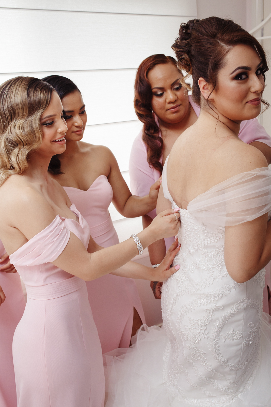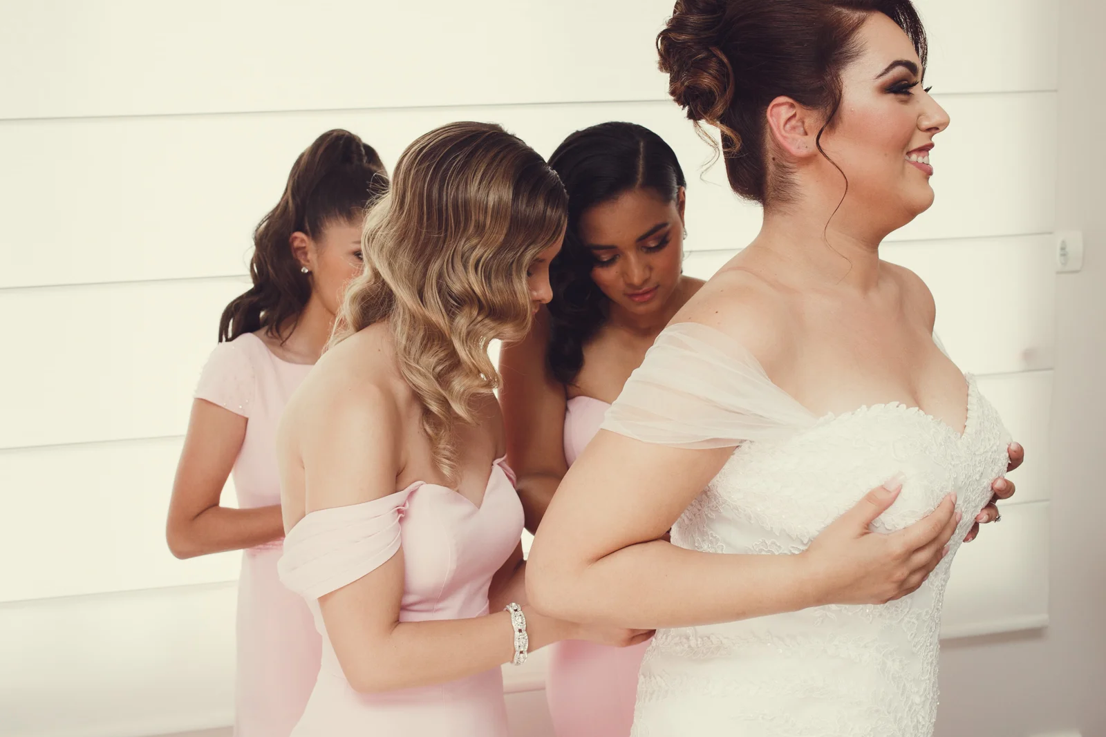 Next stop was Dandenong with Samantha's preparation, After a few quick setup shots of the dress and accessories Samantha started to put her dress on assisted by her bridesmaids. These are also special moments when the bride turns to her best friends and they see her in the dress for the first time and then when the parents enter the room.