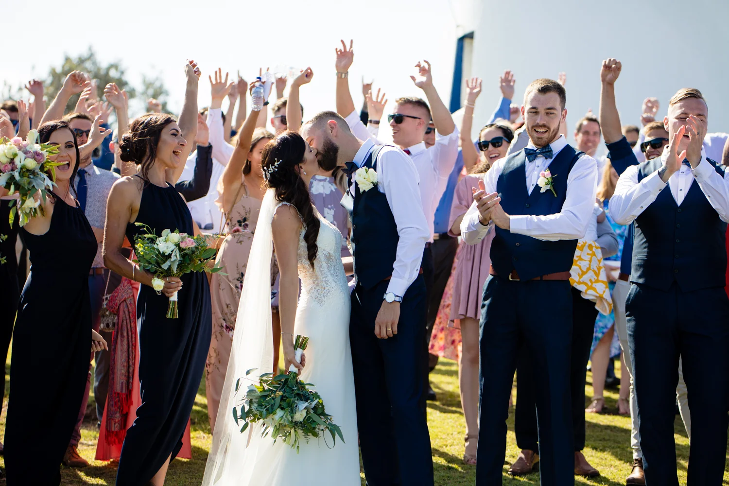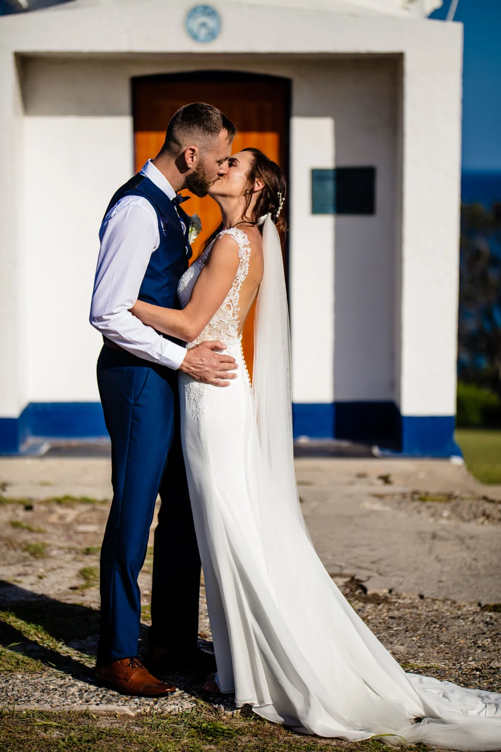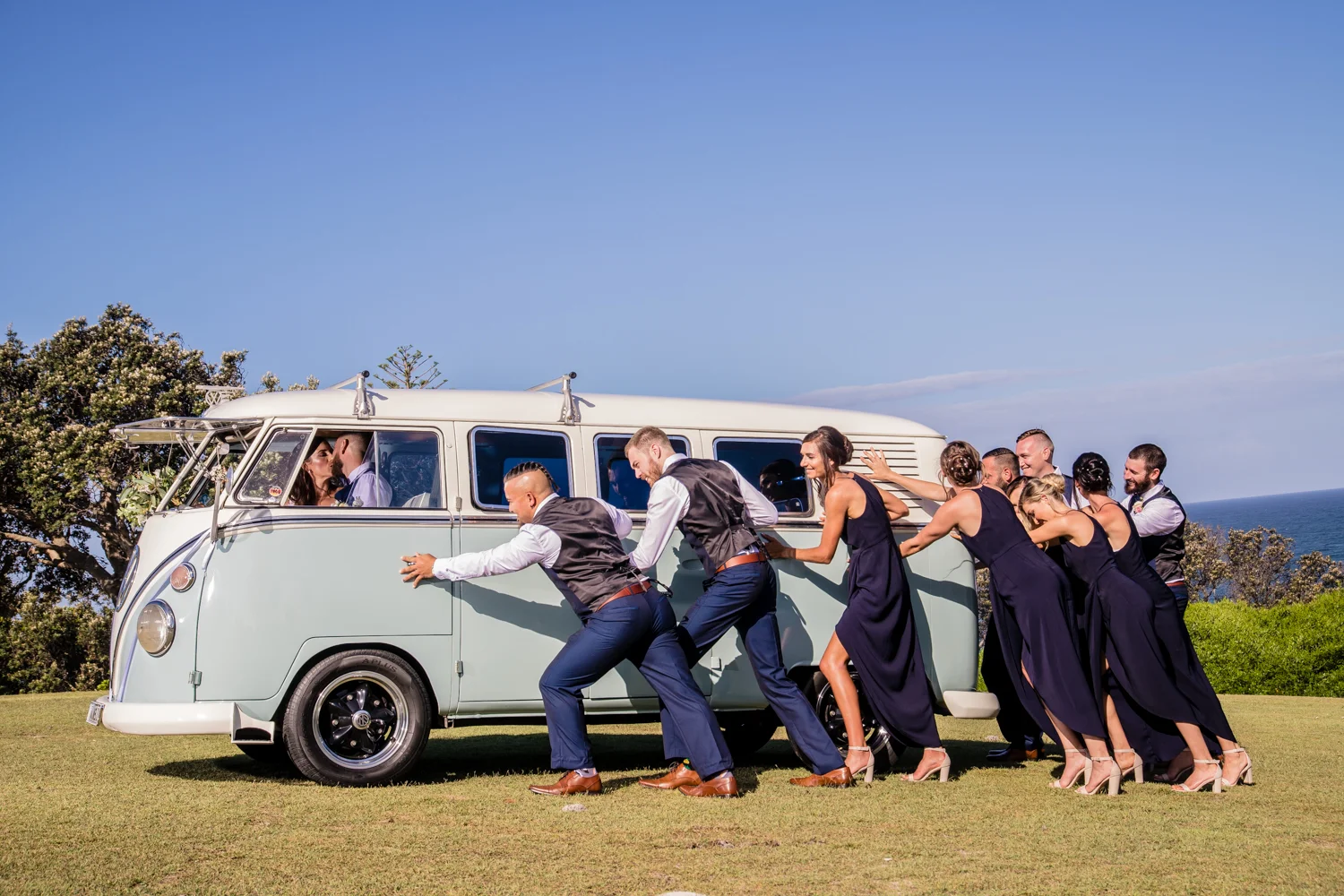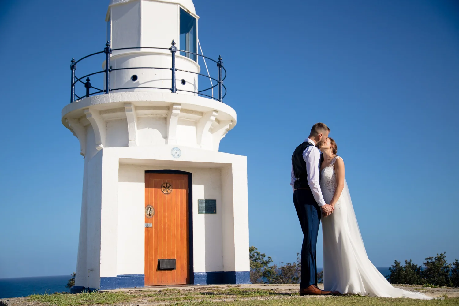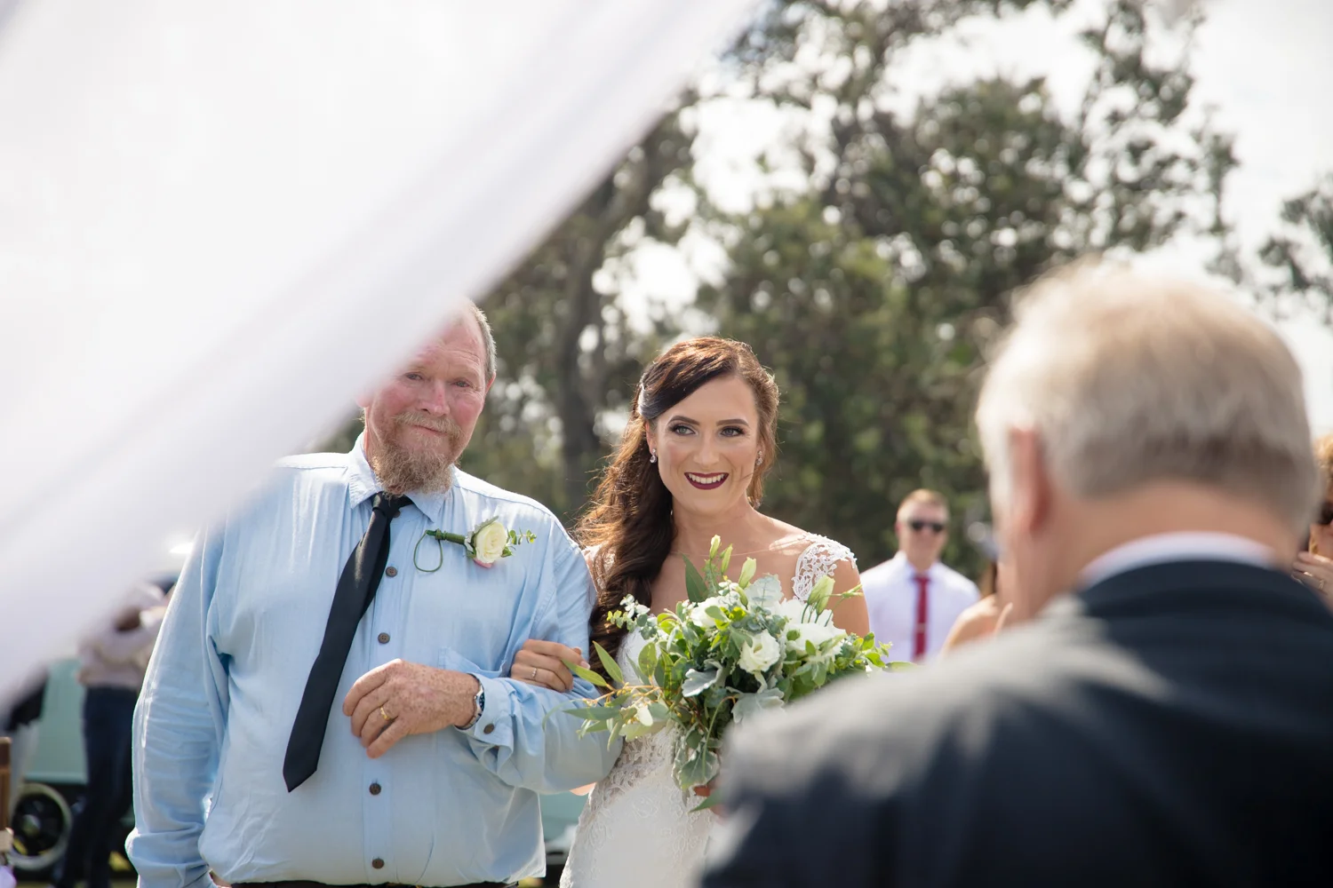 It wasn’t long before we were off to the ceremony at Ballina lighthouse. Such a great ceremony location for an outdoor wedding, with the scenery of the beach to overlook at as you’re saying your vows, with the arbour being entered down the middle of the aisle, and white chairs for the guests, we went into action mode, setting up all the tripods and key audio gear, before it was time for Tahni start her newlyweds journey. Turning up in kombi limo, a day surely now to be remembered with the luxurious dreamy cream & white Kombi experience. With Dean standing at the centre of the aisle next to their celebrant phil chapman, it was a cute ceremony, that had conjured up a few tears and laughs also from the crowd.
