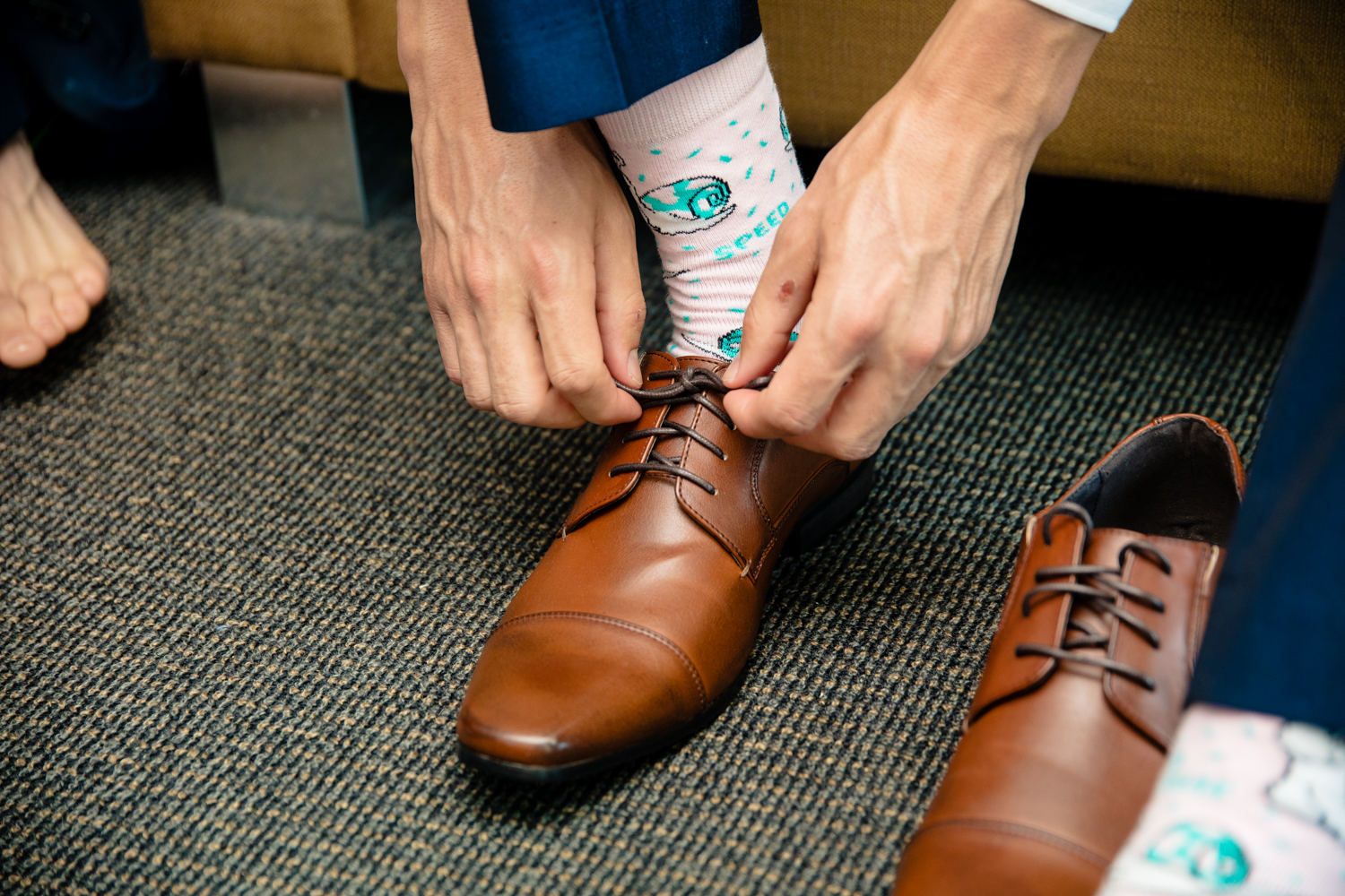 As we rounded to the apartment, we were greeted with the bridal crew all getting their finishing touches of hair an make up done by Hair by Laura, while Tahni was getting her own personal touch ups from hairstylist Sarah kemp and make up artist saint ella. We quickly went to setting up all the accessories and bridal dress by Hobnob Perth by getting those key snaps then we were off to capture Tahni and her crew before they walked down the aisle.
