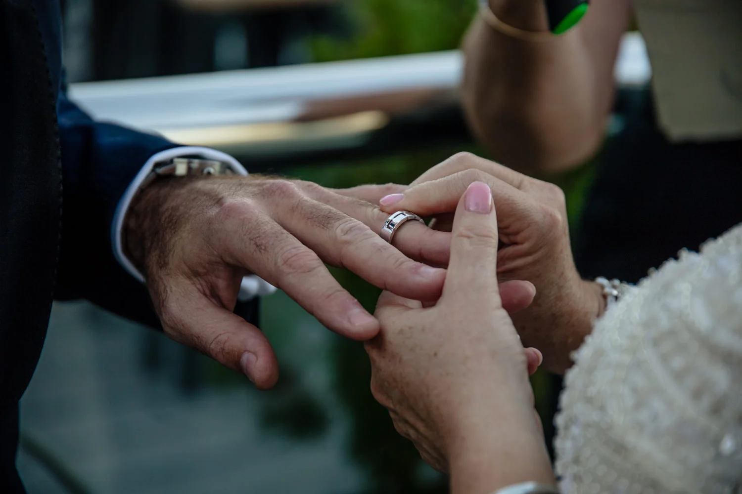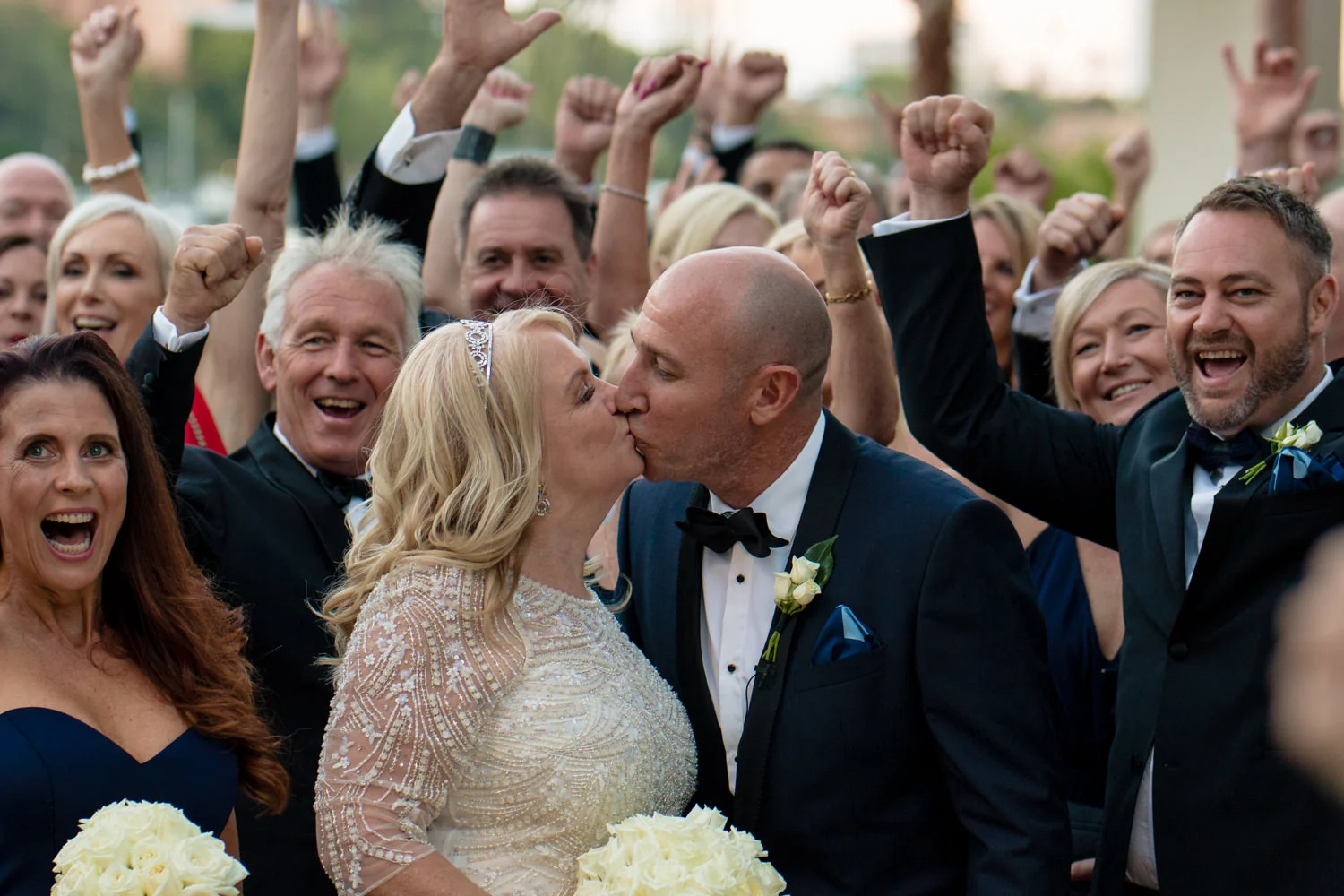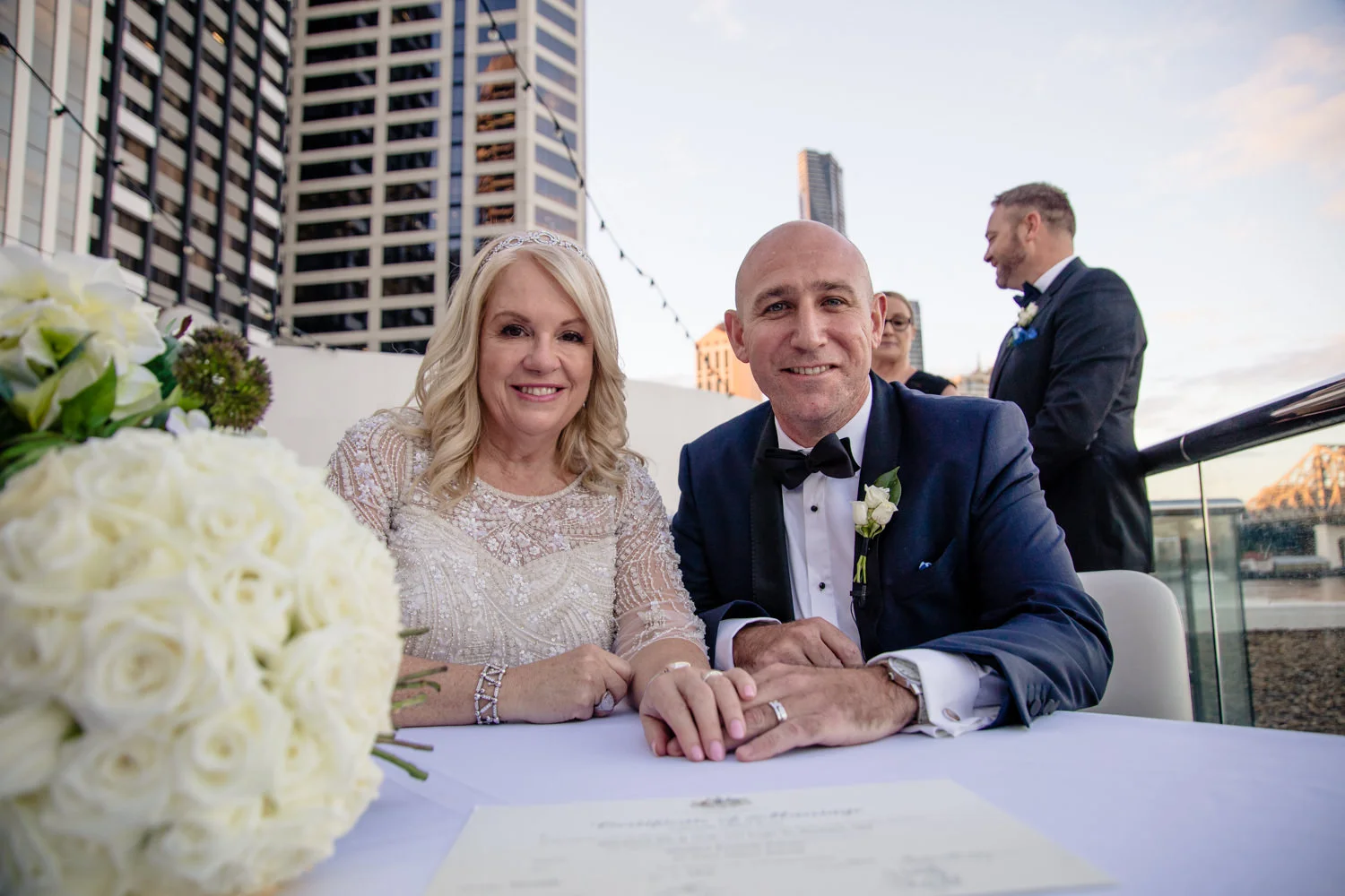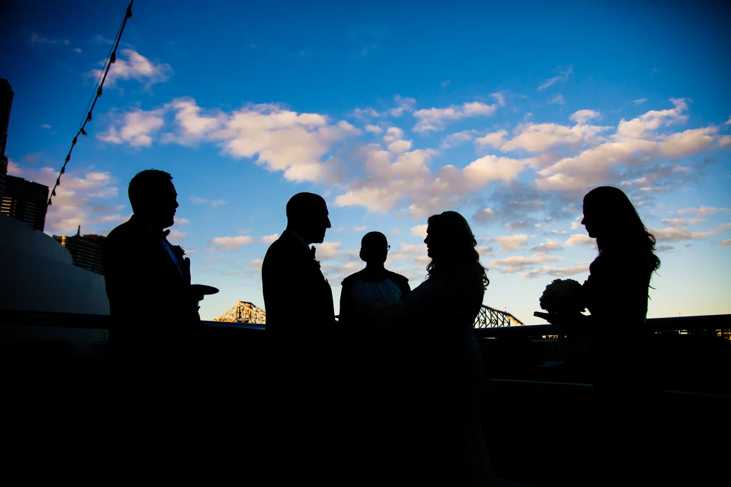The ceremony continued to move along smoothly, as heartfelt words were spoken and two became one, it was nothing short of the perfect moment for both Michel & Jo. Walking back down the isle as husband & wife it was time to get started on the photos section. Starting it off with a huge group photo then heading down to Custom’s House this made for some AMAZING images, with the detailed building in the background it was just magnificent. Making our way over to the balcony overlooking the Brisbane river we were very pleased with all the moments captured. Doing a little more exploring we were beside the Brisbane river with the beautiful Story Bridge filling the background with its colourful lights, this made for some more spectacular images.