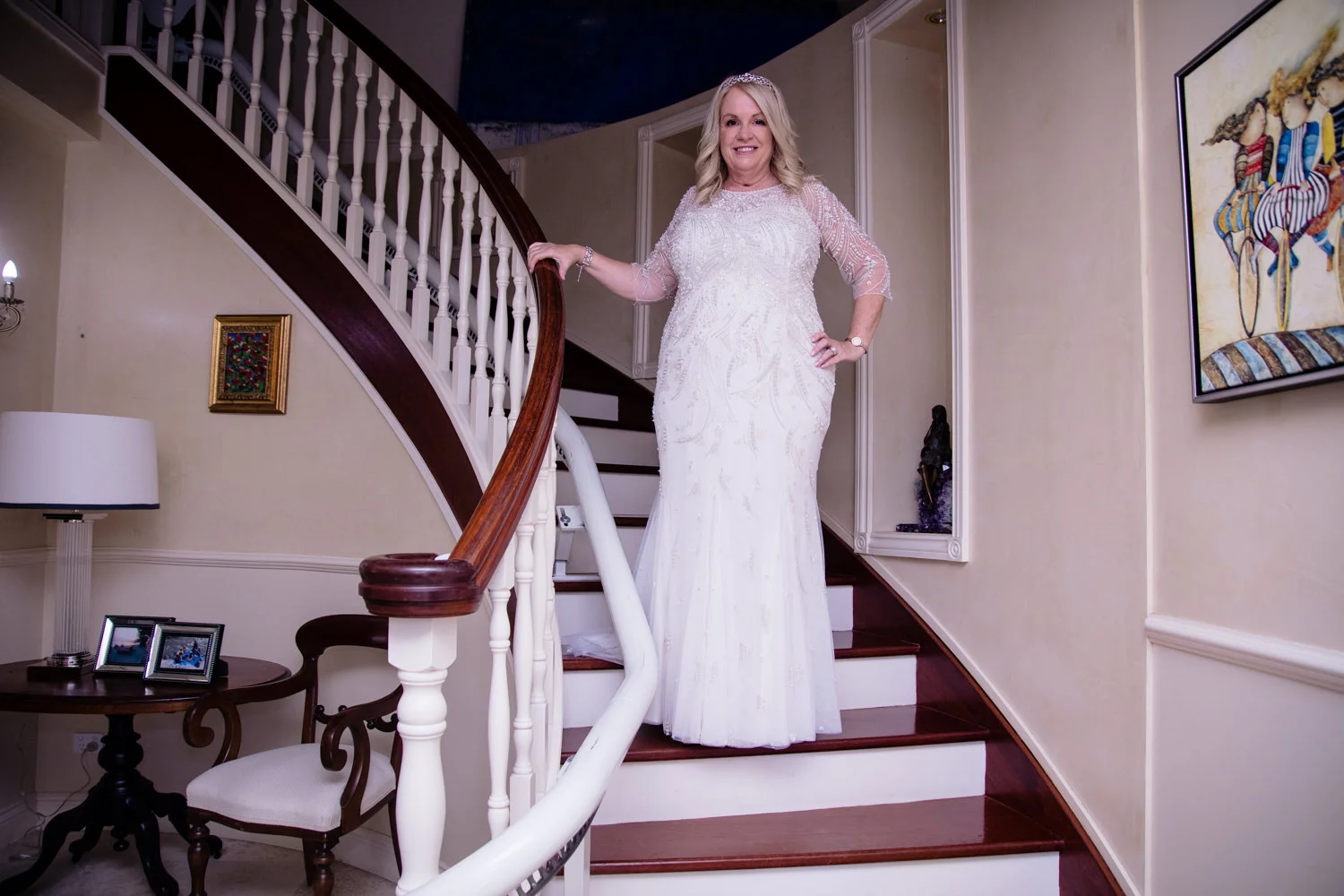 Starting the day off with the beautiful bride Jo, we meet at her home, just 10 minutes from the venue, a beautiful house filled with spectacular artwork & a winding staircase that made for some beautiful images. Taking a few shots of Jo’s stunning dress, it wasn't long before it was time to get dressed & begin the journey. Looking beautiful with hair by Envy Hair Culture-Teneriffe & makeup by the amazingly talented Makeup Artists/Stylist-Hearts and Heroes this wonderful team also took care of the wedding planning/styling along with Stem Design & what an amazing combination! The ever talented designer, Shannon Pittman at Bo and Luca designed the ivory heirloom gown with hand embroidered detailing of pearls, beads & crystals. It was just perfect. In no time the Bentley had arrived to take the bride & her bridesmaid to Blackbird & it was time for Jo to marry the man of her dreams. Everyone heading over to the venue meant the excitement was flowing effortlessly.