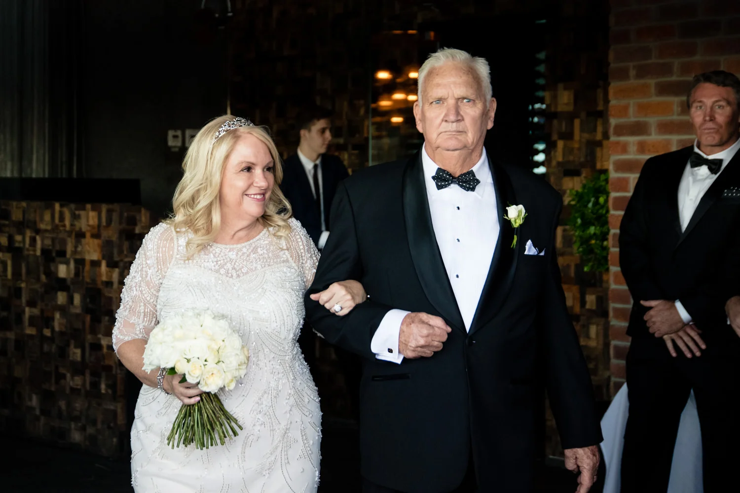Arriving at Blackbird, we were ready to go, cameras covering all angles & with guests seated it was nearly go time. Michael patiently waiting for his soon to be wife, you could see the smile on his face wasn't going anywhere. Finally the moment we had all been waiting for arrived, as Jo walked through those doors & down the red carpet towards awaiting family & guests, there was nothing but smiles & tears of joy flowing. Not to mention Michael, he looked to be the happiest man alive. Making her way down the isle everyone stared at just how gorgeous Jo looked...words couldn't begin to describe.