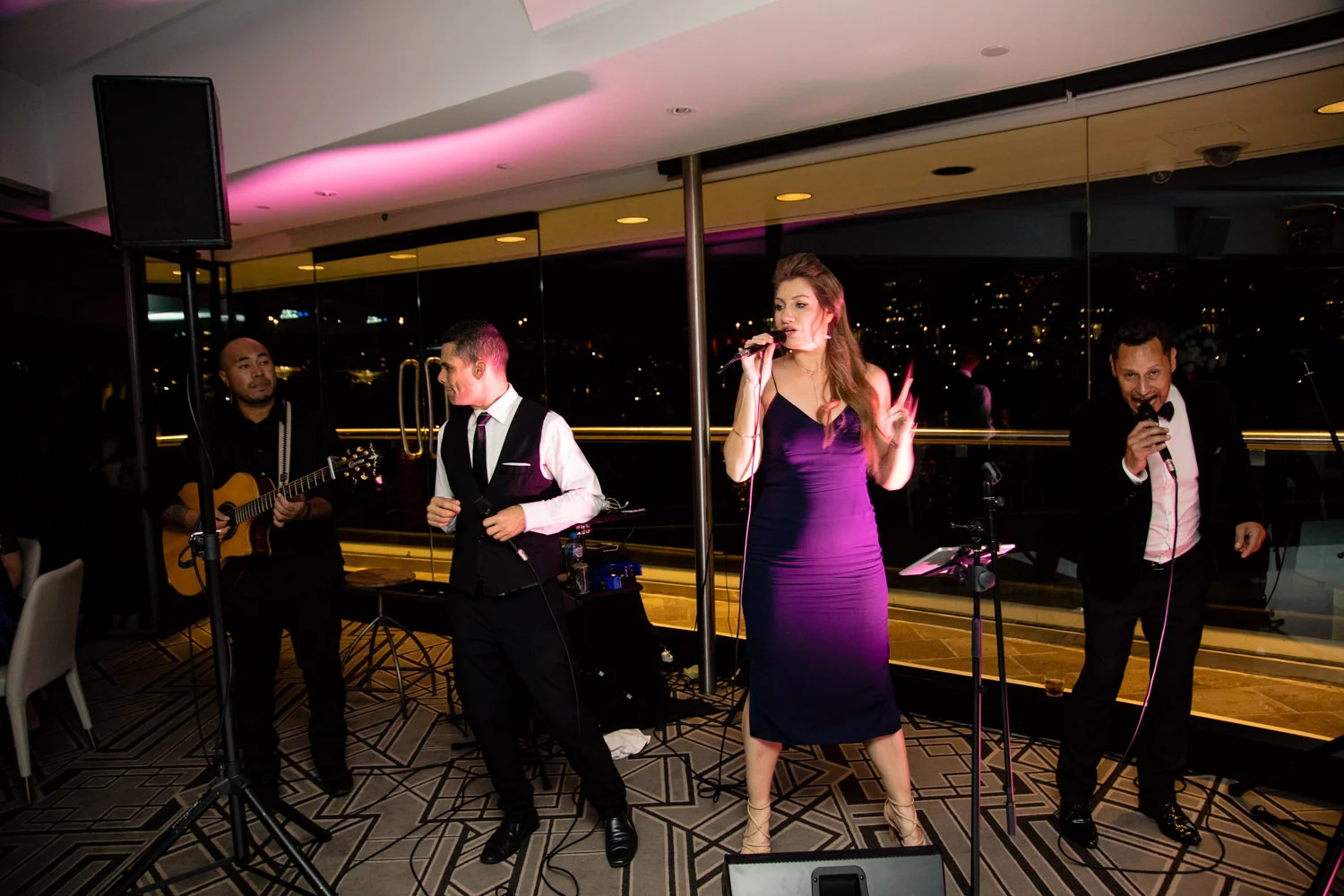 In no time it was time to head back to Blackbird to continue the celebrations. Arriving back at the venue we snuck some quick portrait shots in by the entrance taking full advantage of this wonderful venue. Soon enough everyone was seated & it was time to relax and have a little something to eat whilst listening to the fabulous band, Rush. We just have to say their music was just beautiful & such a pleasure to listen to.