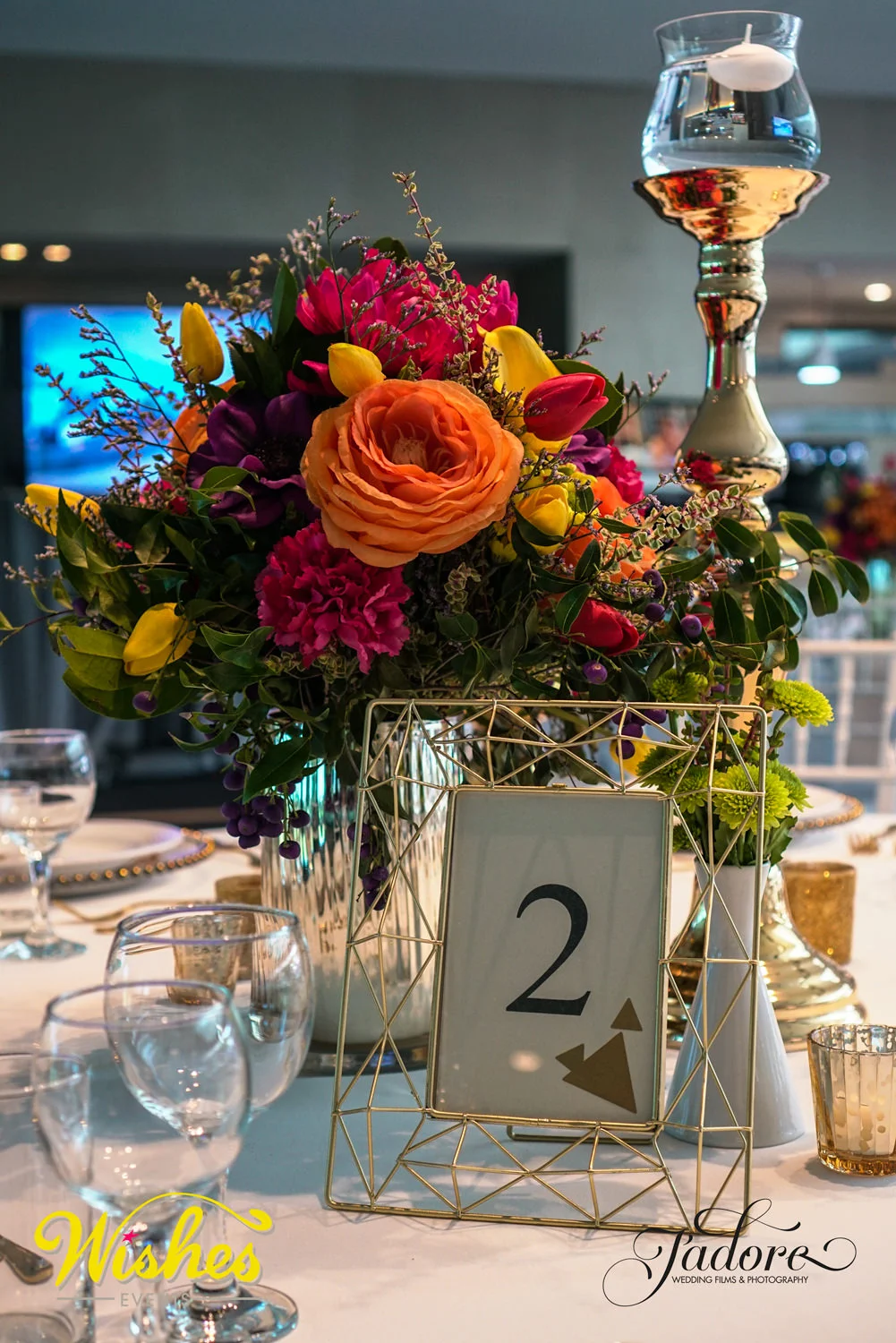 Styled by Wishes Events using a pop of colour to compliment the sophisticated chic look of the Gold and Pink elements. This elegant theme is a beautiful way to also incorporate the stunning bridal colours into the venue theming, and have the overall impression of that dream wedding. A modern bridal bouquet was created to showcase some seasonal flowers, bright colours whilst still working well with the colour palette & theme.