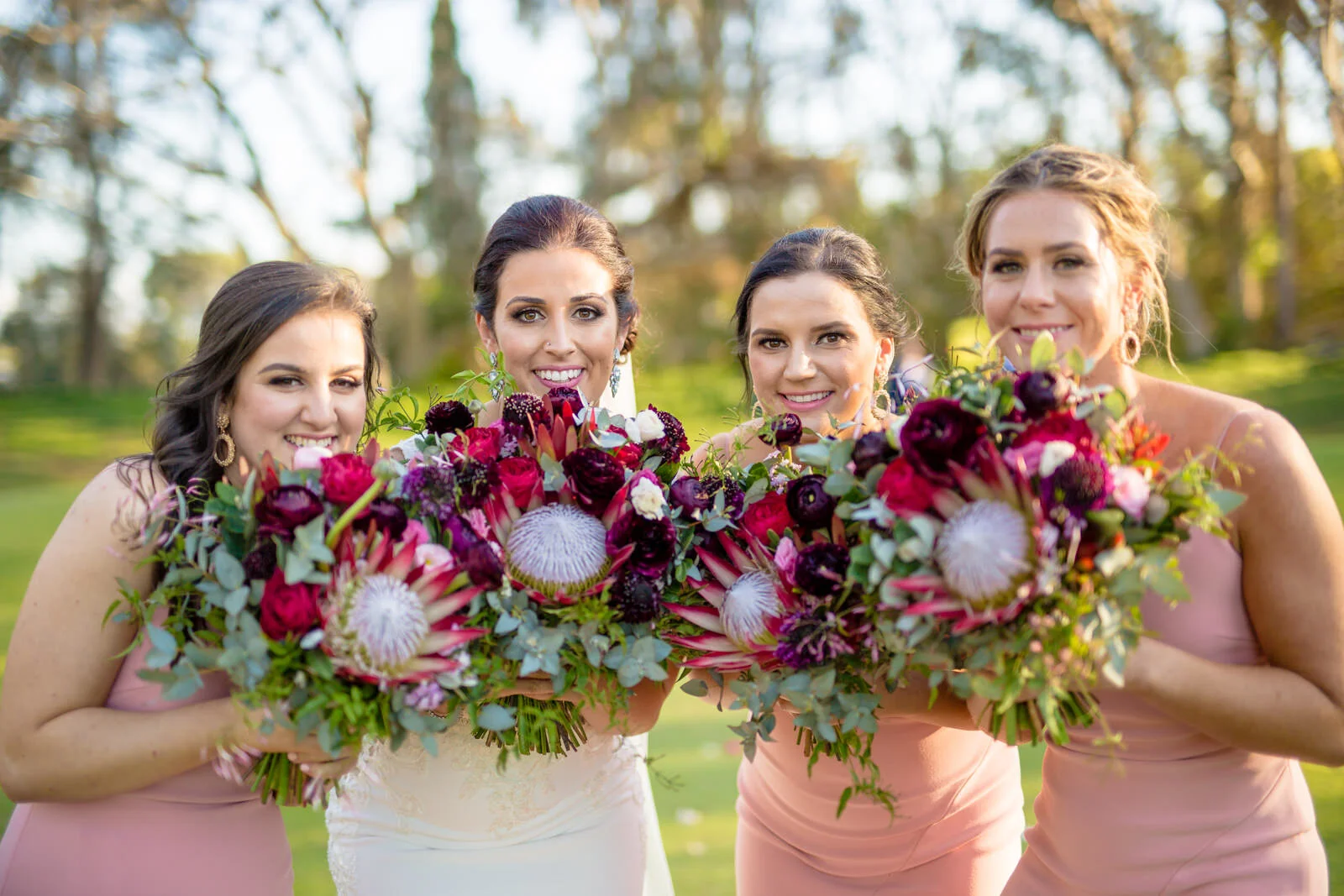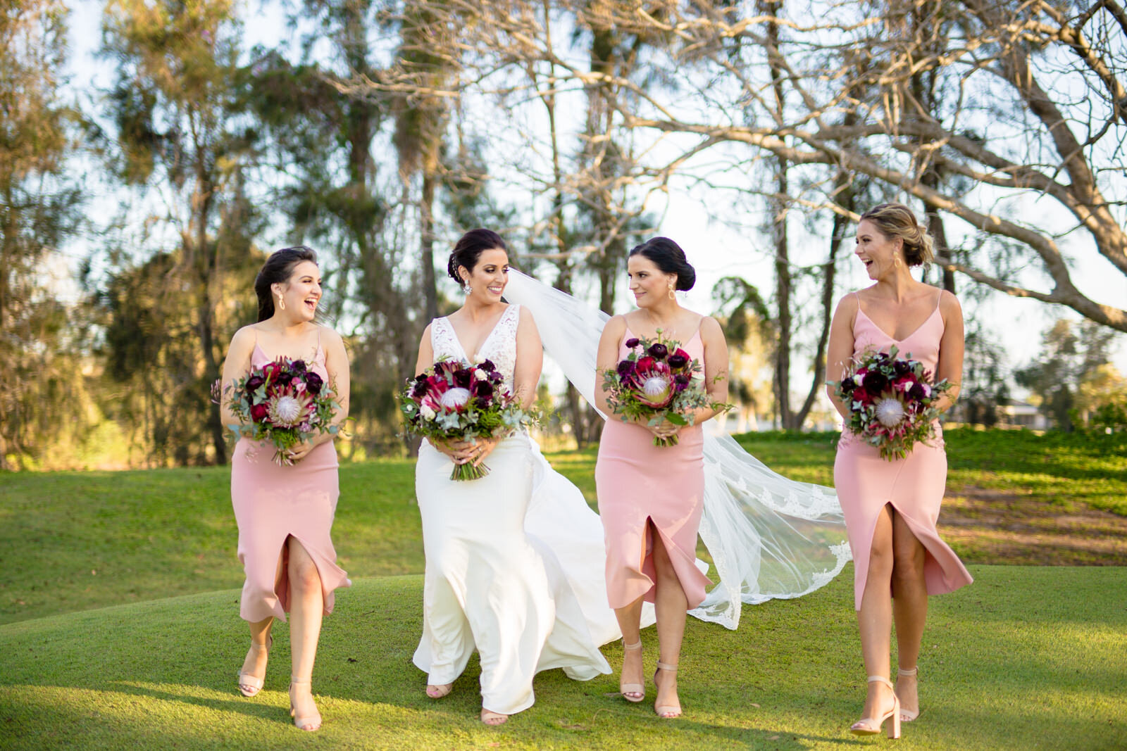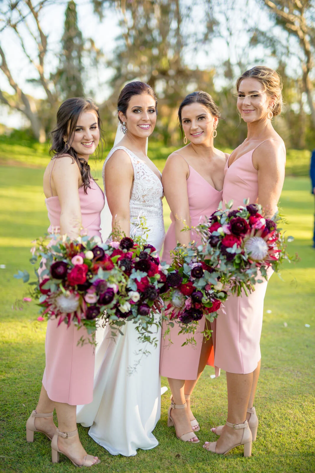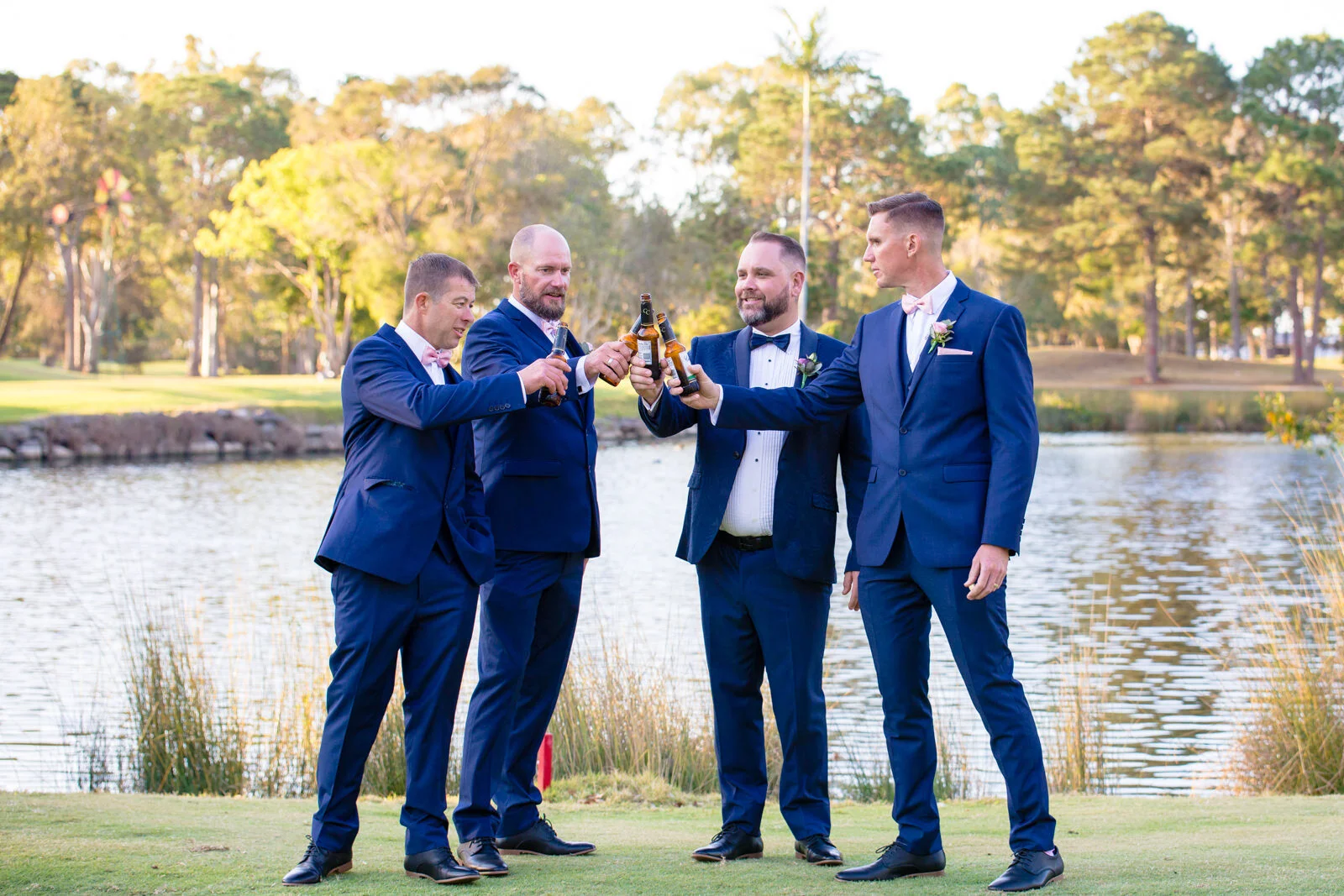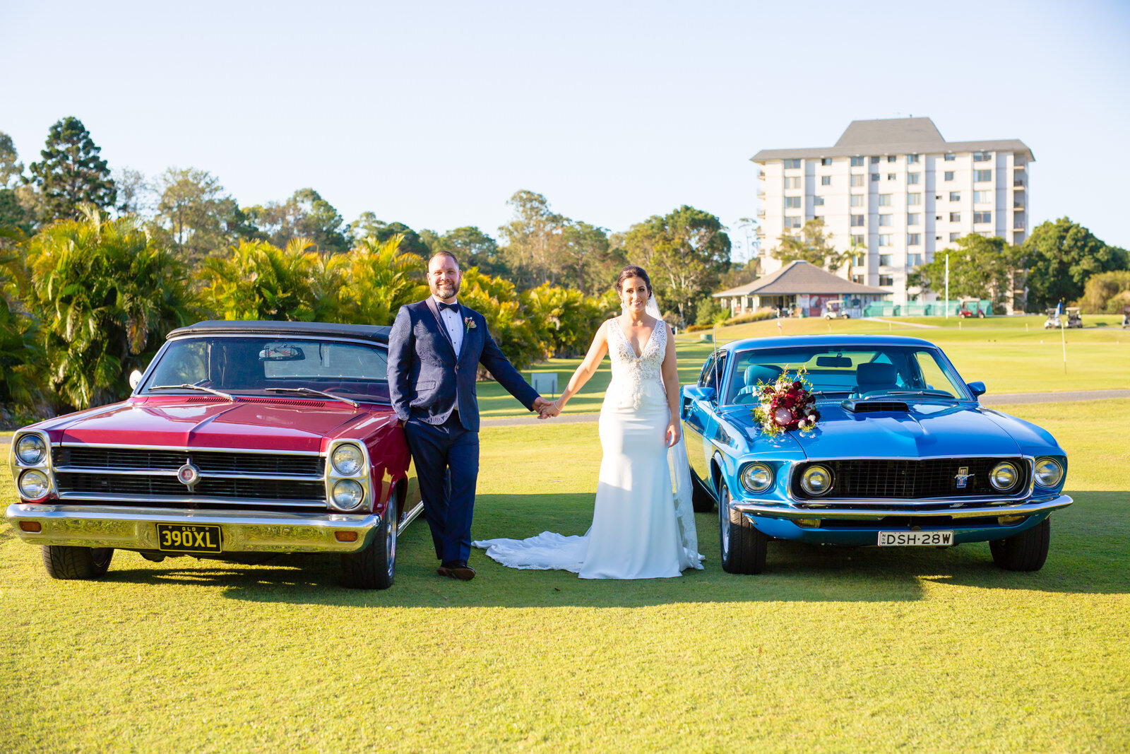We started off the day at the best mans house, whilst having a few laughs and sinking some beers the boys prepared for the ceremony that would overlook the beautiful views of the Surfers paradise Golf Course. Following this, we snapped a few shots in front of the classic cars then made our way around the course where the J'adore team and bridal party, took some time to take in the spectacular sunset while the bride and groom had some romantic moments by the golf course lake.