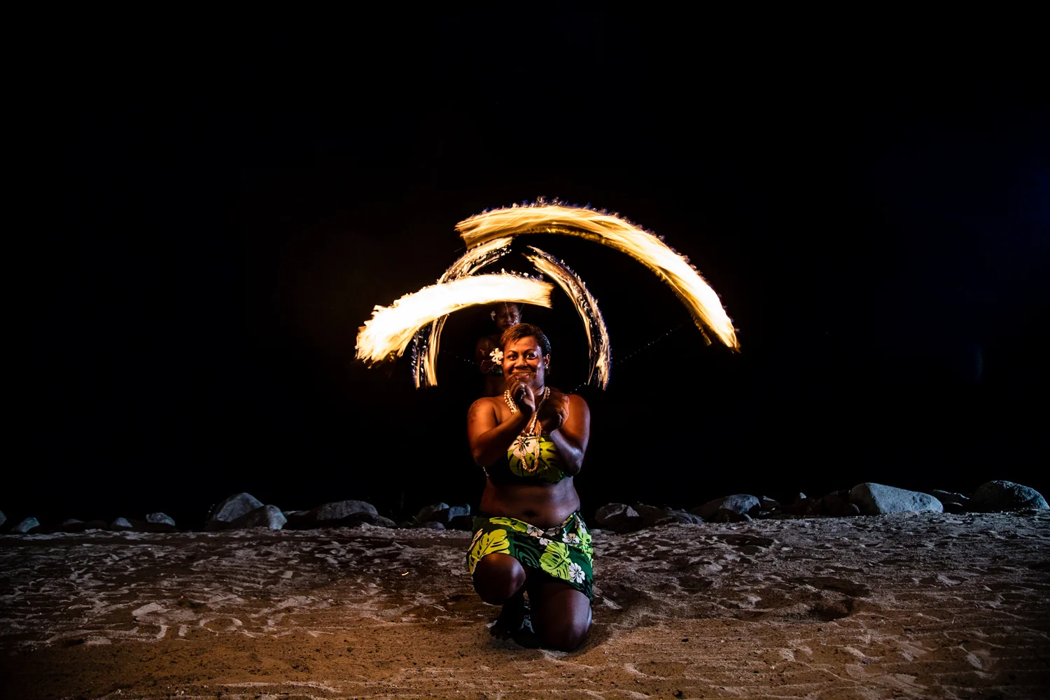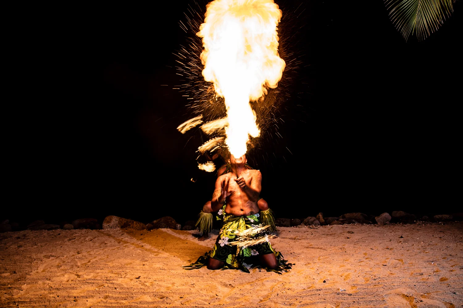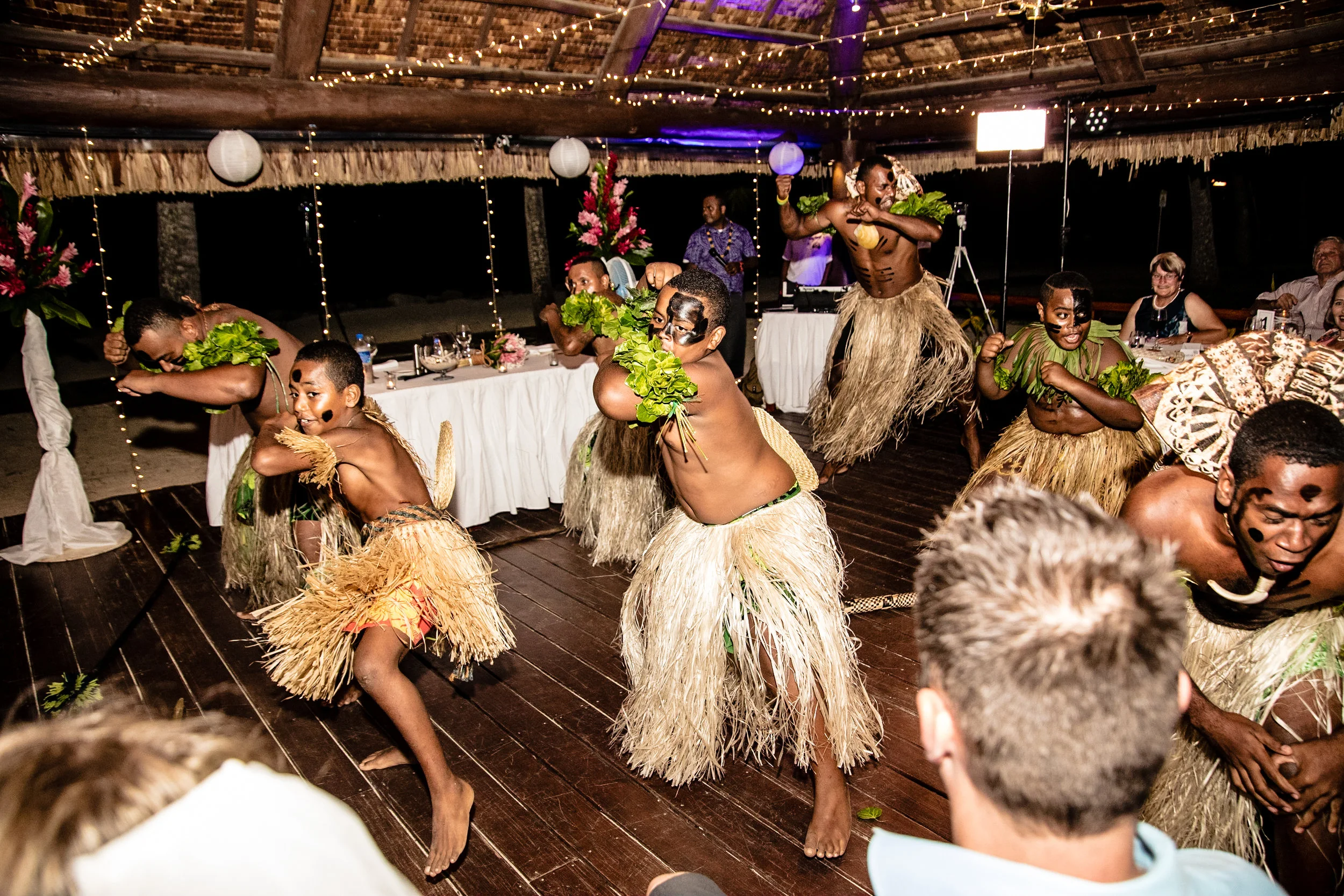 Shortly after finishing the photos sections it was time to relax & enjoy the reception. With a beautifully prepared buffet the food smelt amazing, accompanied by wonderful service it was a fantastic start to the night. As we progressed through the reception we were provided an AWESOME show by the Fijian warriors of all ages performing for us all, a spectacular fire twirling show as well as come fun dancing games it was a reception that was unforgettable.