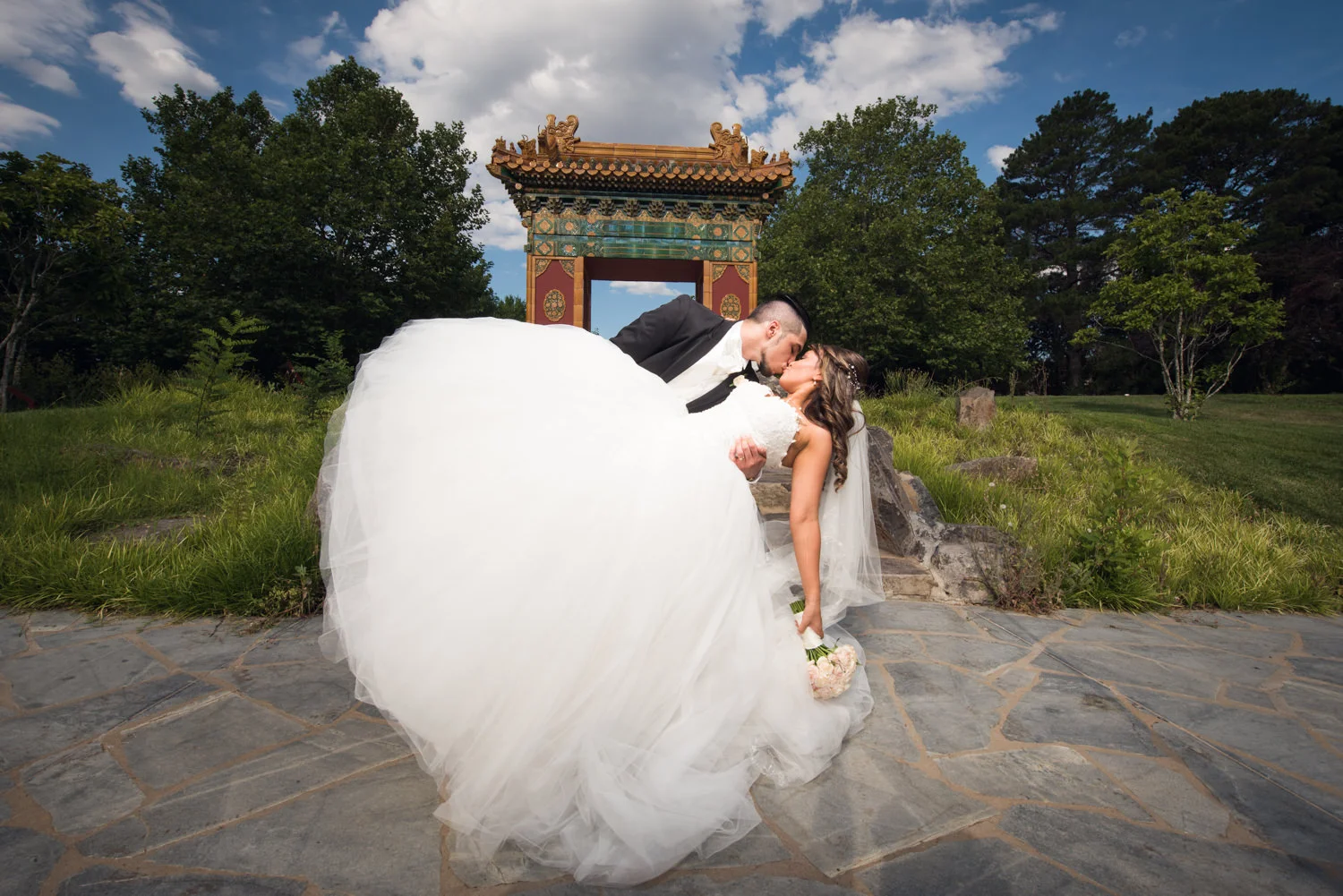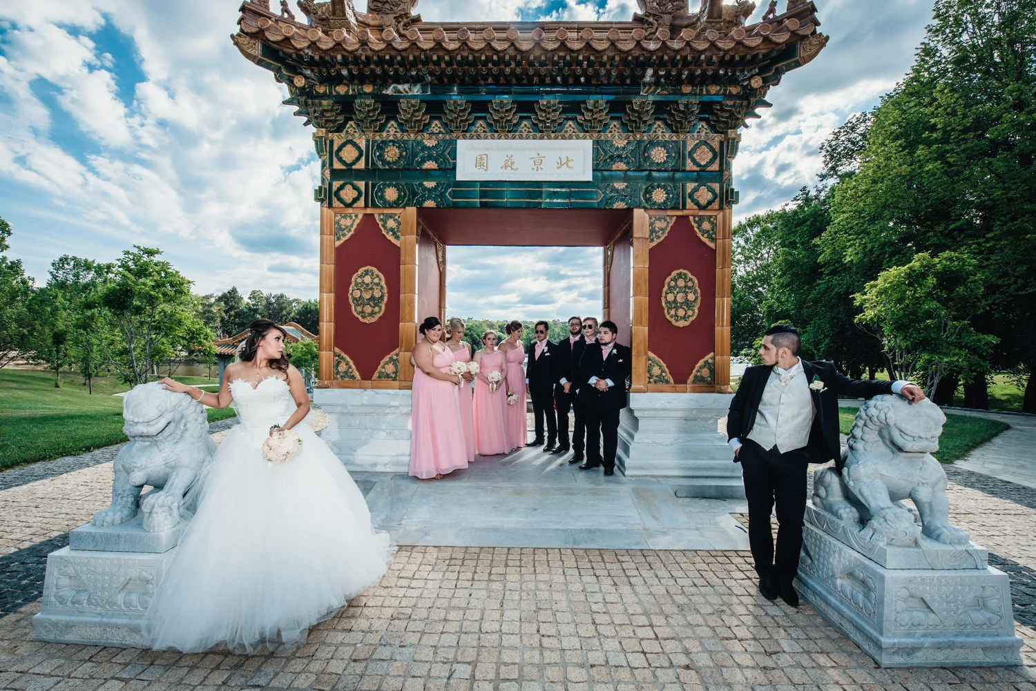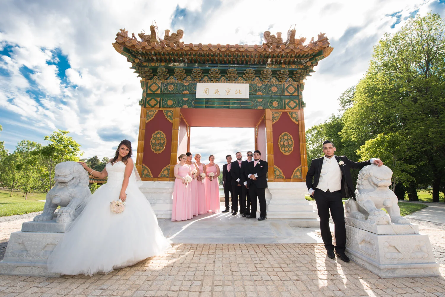 After the ceremony, the bells rung out in song after the couple walked out the chapel & down the stairs we did some group photos & of family. Instantly whisking the newly wed couple & their bridal parties to the nearby Lennox Gardens where we got to incorporate some of there Chinese background into some amazing photos and video, within groves of Ivy and beautiful Chinese gateway & stunning lakeside views.