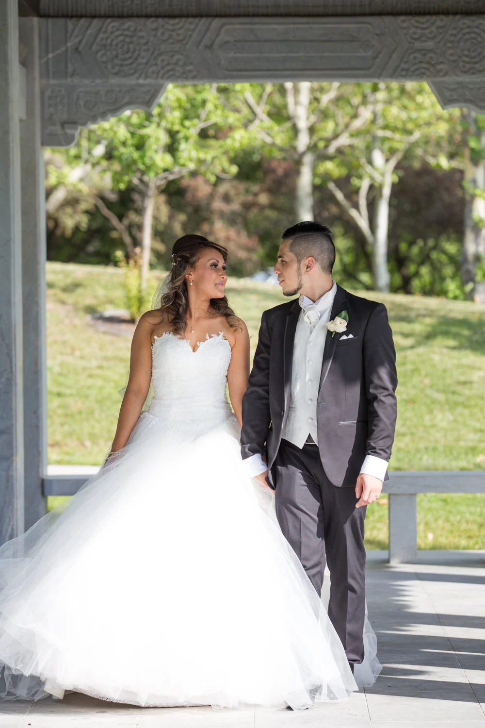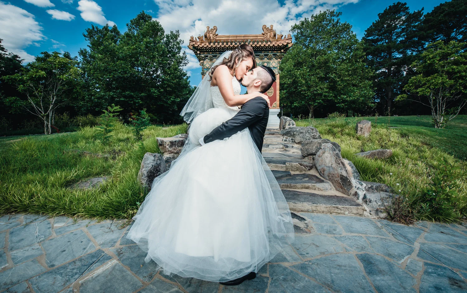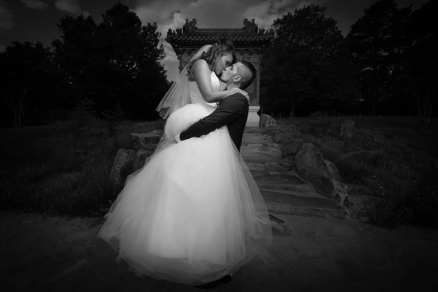 After the ceremony, the bells rung out in song after the couple walked out the chapel & down the stairs we did some group photos & of family. Instantly whisking the newly wed couple & their bridal parties to the nearby Lennox Gardens where we got to incorporate some of there Chinese background into some amazing photos and video, within groves of Ivy and beautiful Chinese gateway & stunning lakeside views.