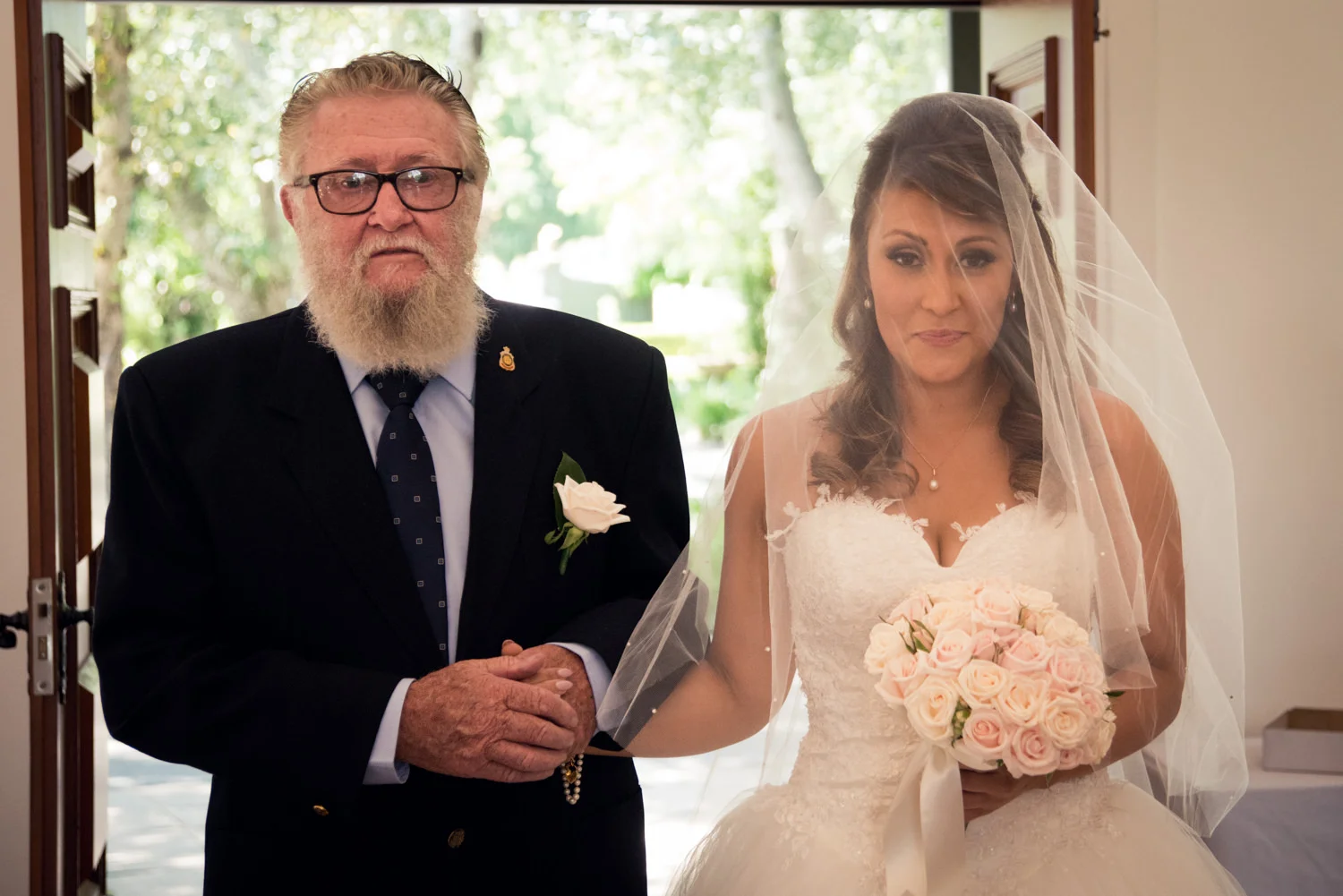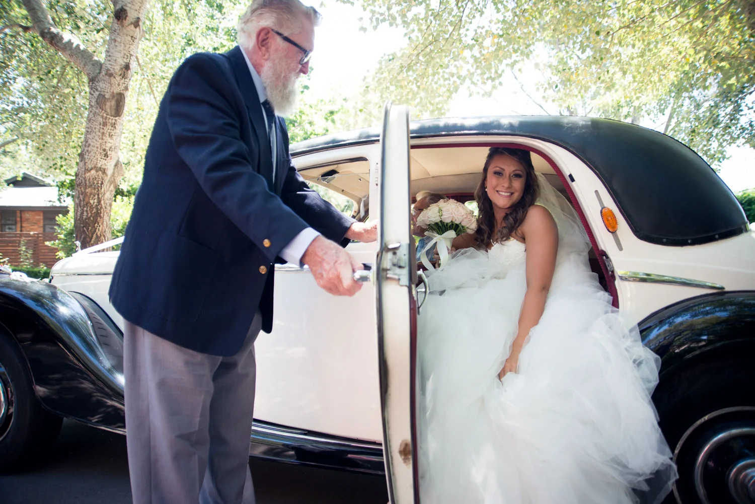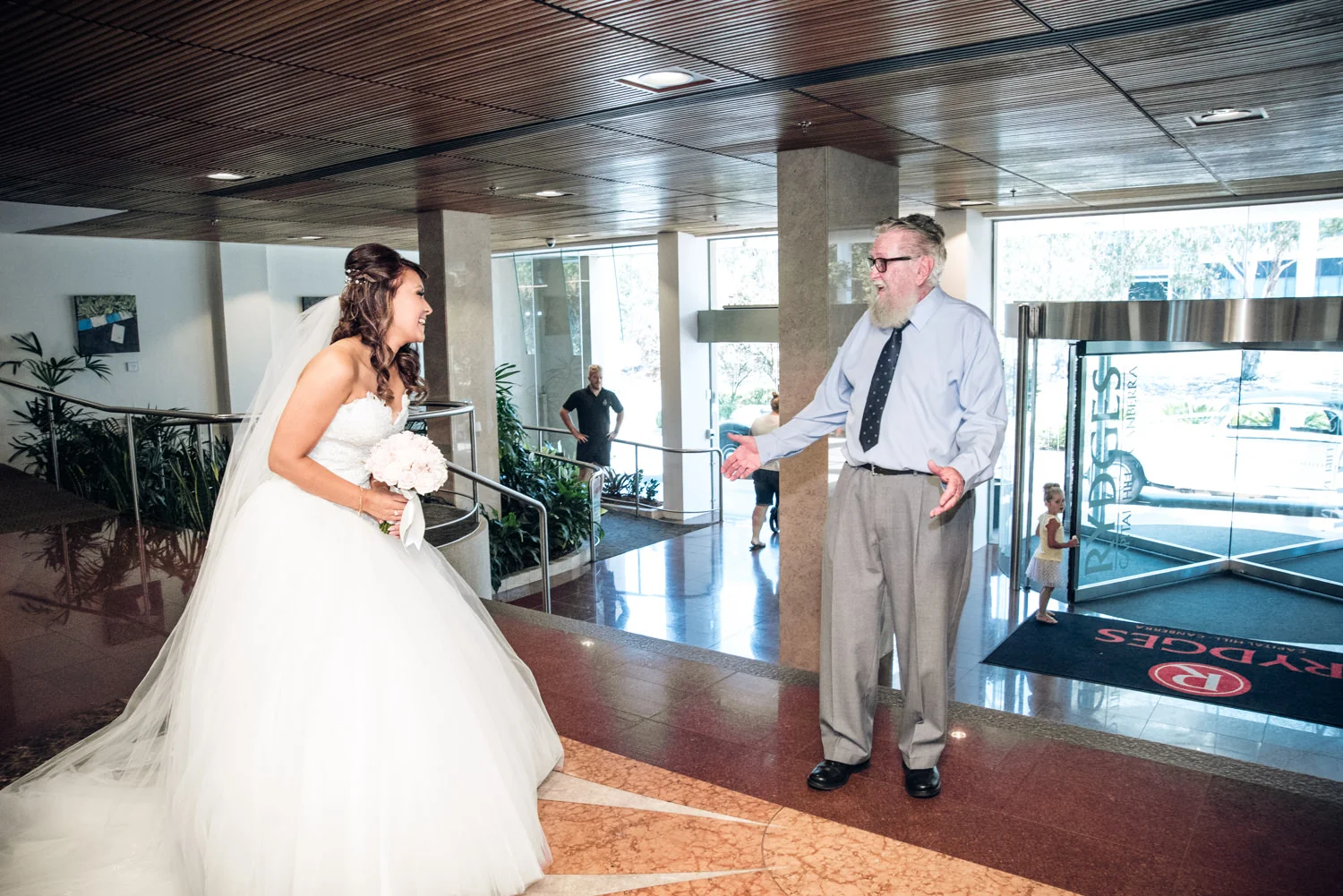 Having Narisa's Dad come in from outside so we could get some cheeky first look shots as Narissa walked out of the elevator & into the arms of Dad. Whom gave her a big hug & a kiss, carefully assisting her down the stairs & into the awaiting vintage classic cars outside.