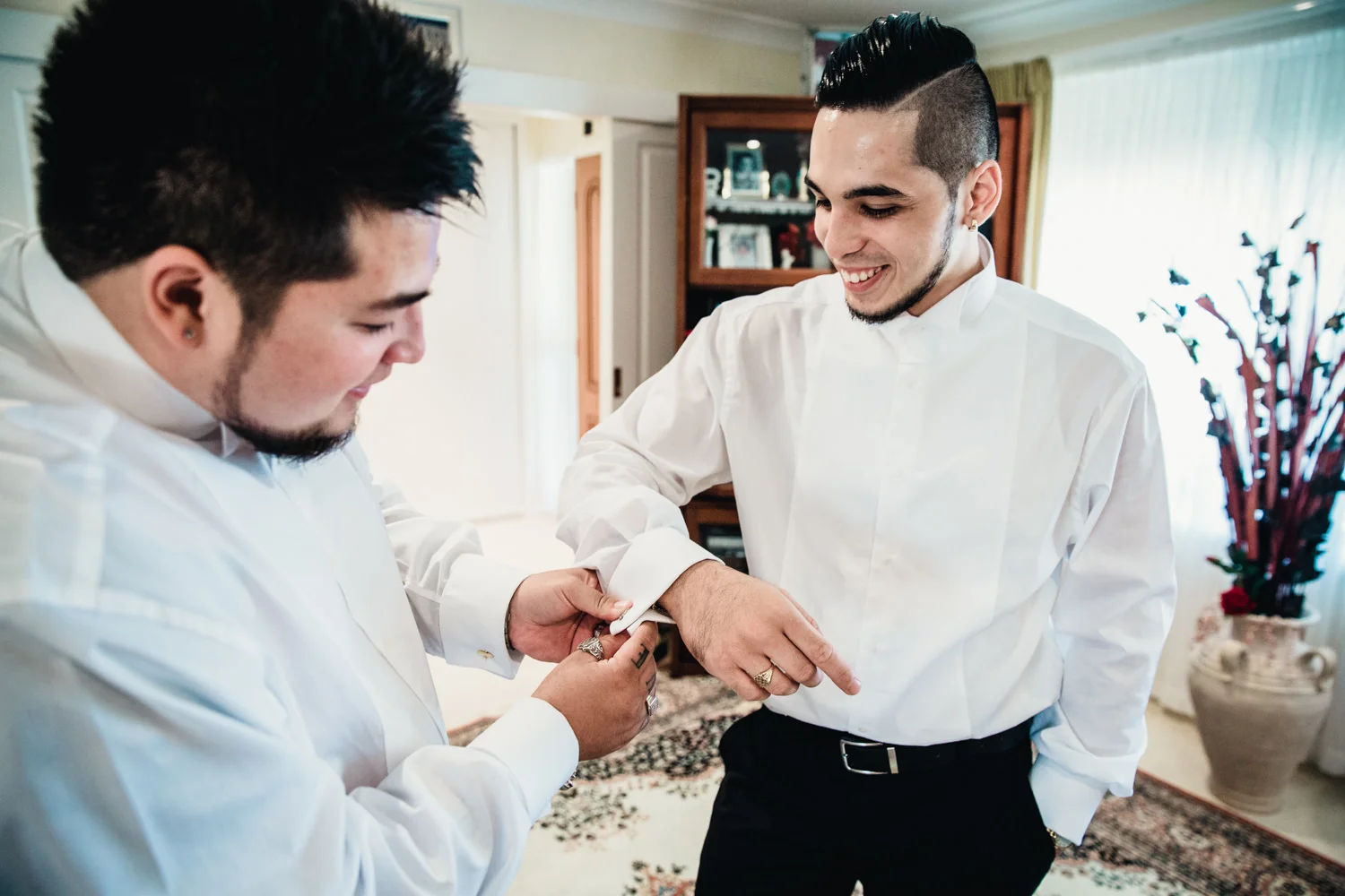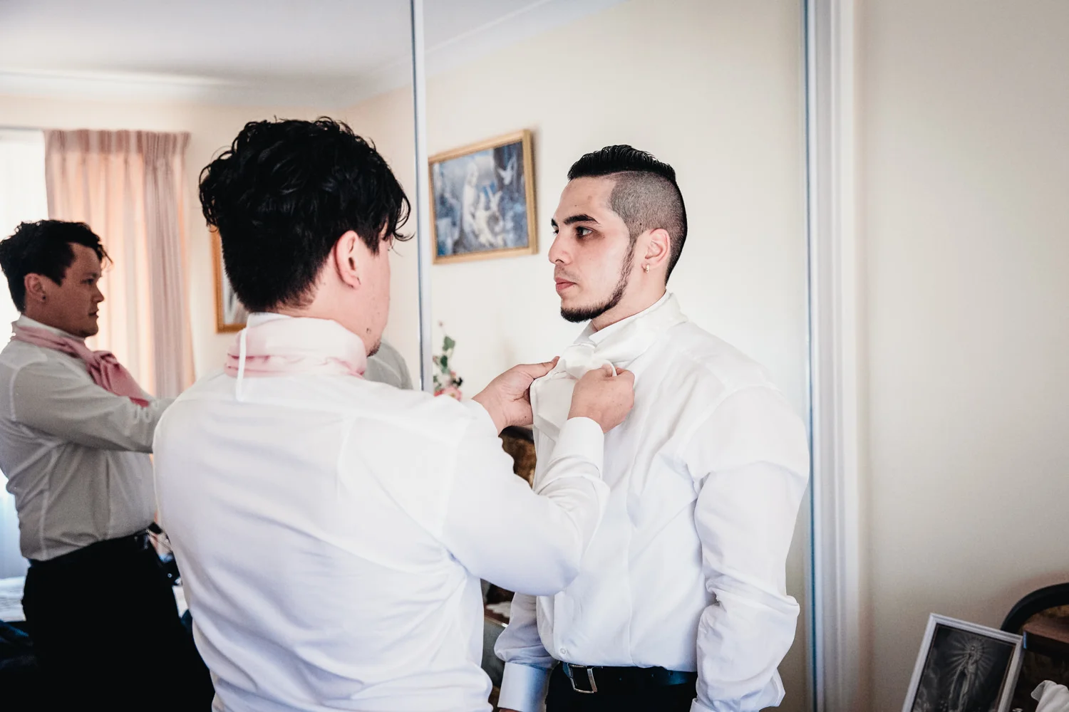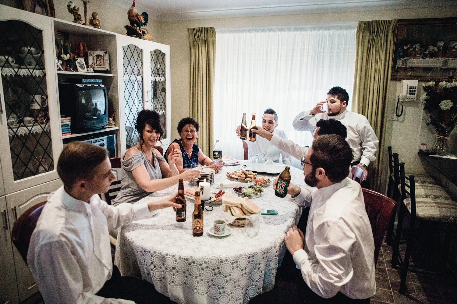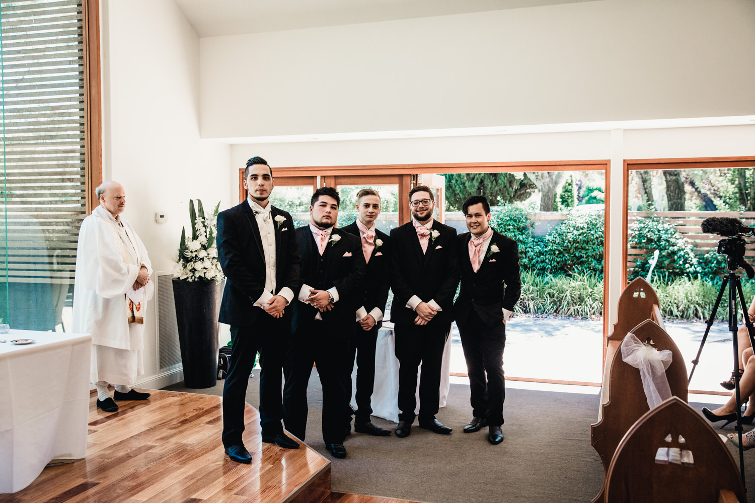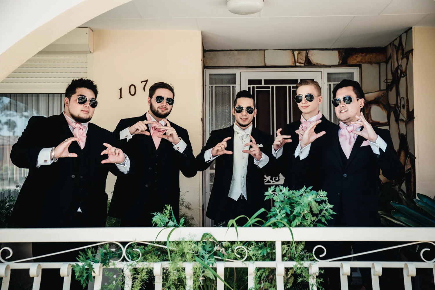 The groom & his groom's men looking very dashing in their suits with pops of pink in the ties to match the girls. The boys all helping Nick into his suit with mum wiping a way a tear as she looked her handsome son getting ready to go marry the love of his life. Everyone quick to grab the tissues & the Rakia to start the celebration of this amazing love story.