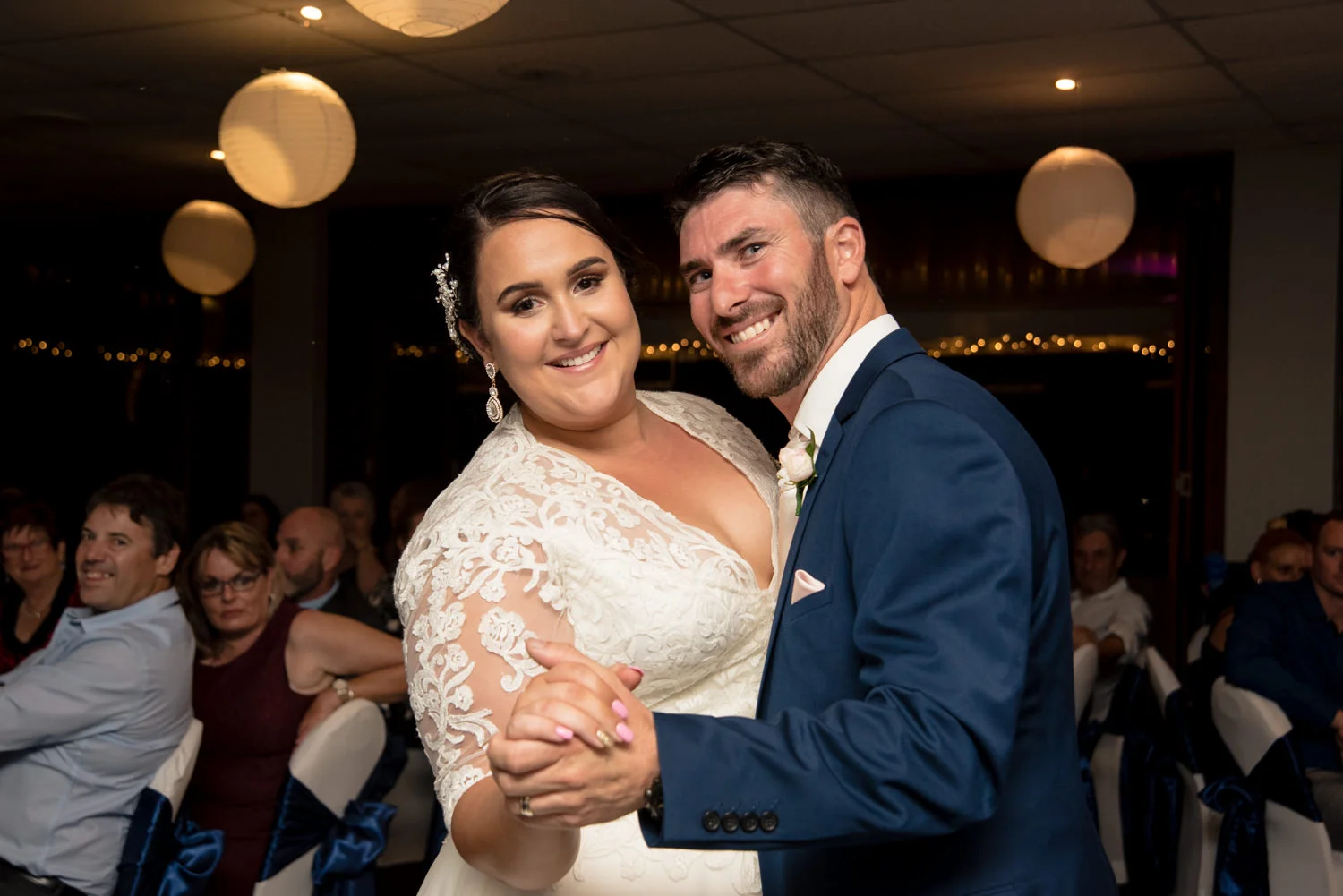 Wasn't long before it was time to head into the reception to meet all the guests held at the Waterfront Restaurant & have a bit of well deserved fun! Jumping straight into the first dance after entrance was a spectacular idea, opening the night with a bang!