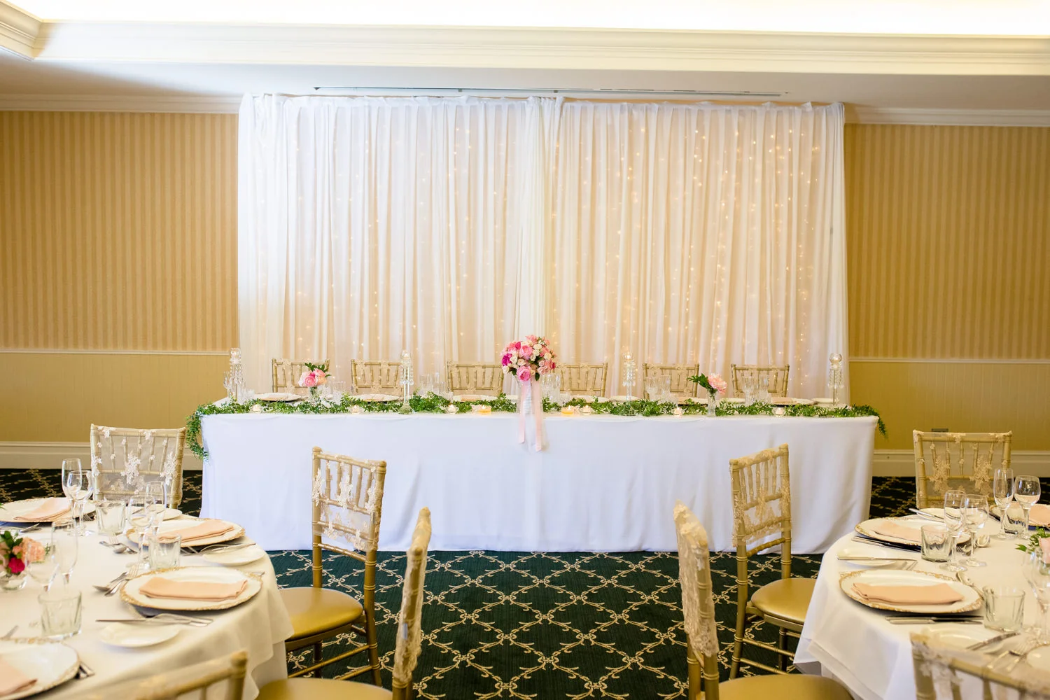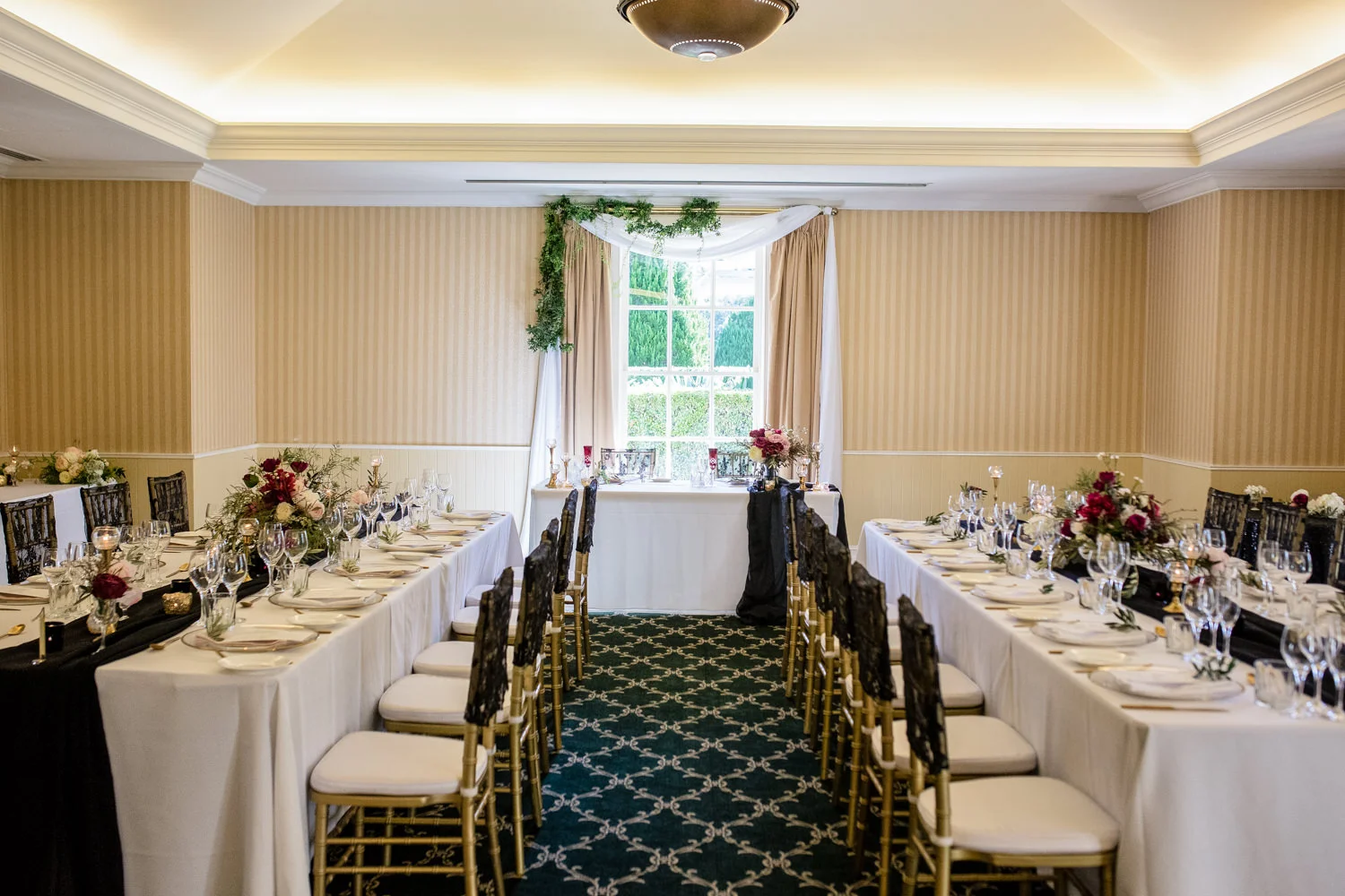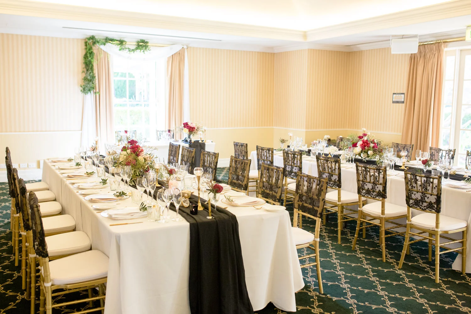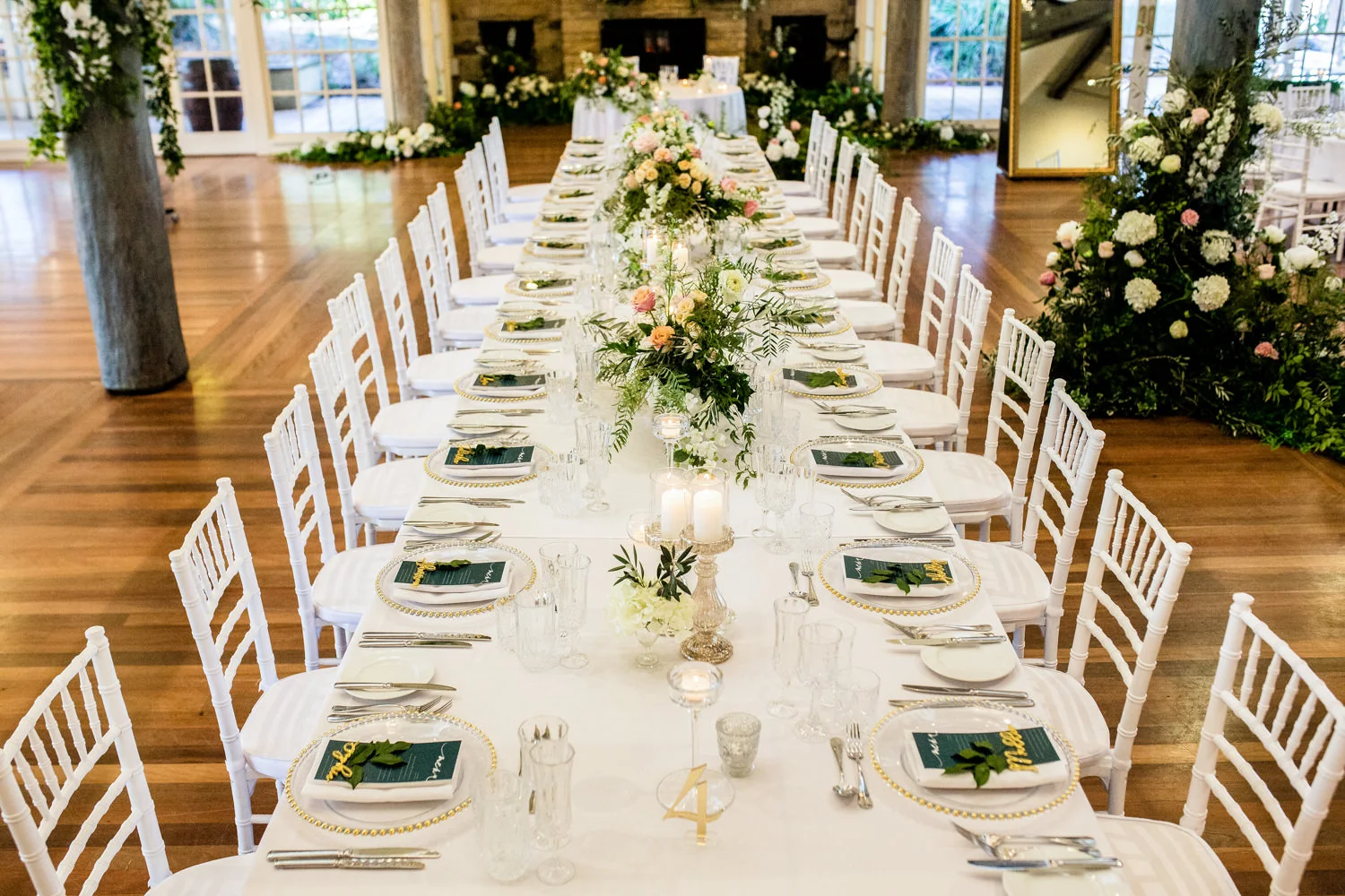 Having all of the main reception rooms styled by W Events & Style on Q they both had done an amazing job at creating such a magical space. The main runway stage and the outside Ballroom Terrace was style by W Events Group with The Grange, The Fireplace and Merino Room being styled by Style OnQ.