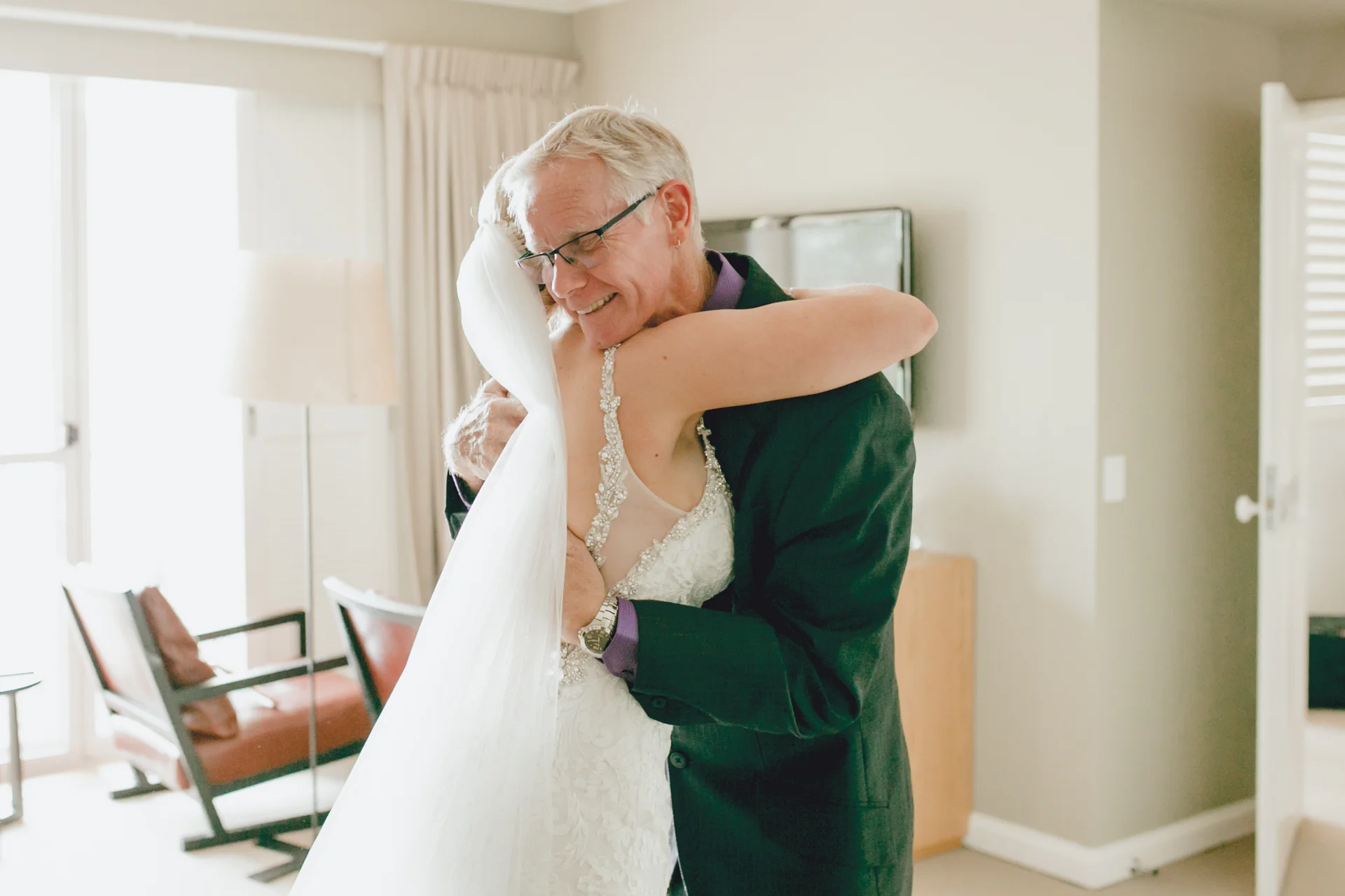 As we arrived to meet Anna she was presented with a few gifts which the ladies opened together, as you could imagine this got the emotions flowing quite rapidly. Thus prompting me to ask the girls how much Anna means to them while I was filming away, we got some beautiful reactions showcasing that raw emotion we love to capture. Moving on to one of the most important moments for every bride is the moment she puts on her dress and see’s herself for the first time on her weddings day. Anna's accessories were also impressive & as you can see from watching the video she really did look amazing, thoughts in which Anna's dad exemplified as he entered the room.
