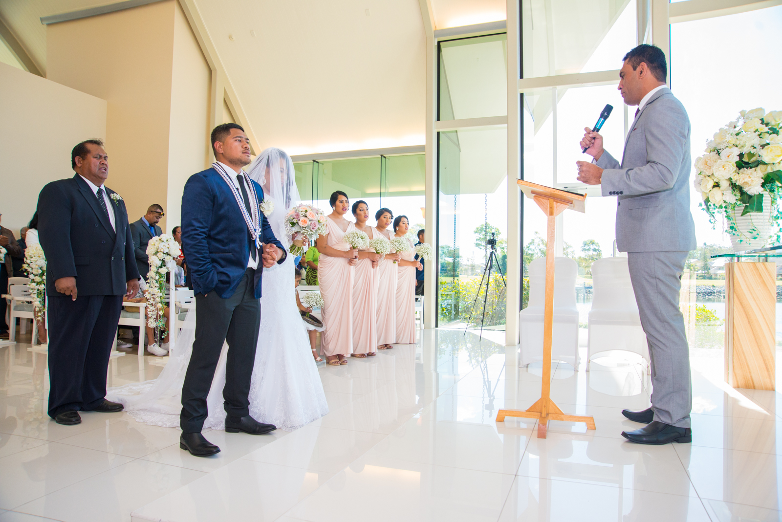 Jacob & Nastassja did things a little differently compared to the average Sanctuary Cove Wedding. With the groomsmen waiting near the start of the aisle awaiting for the bridal crew to emerge out of their 60s Lincoln vehicle they used to transport them from their family house to Sanctuary cove chapel. One of my favourite shots is seeing the groomsmen as he finally takes a look at his bride starting to walk to the aisle.