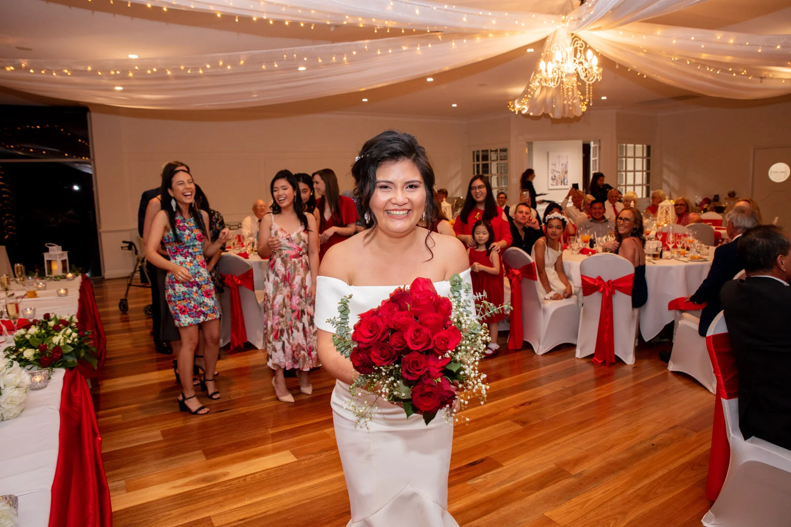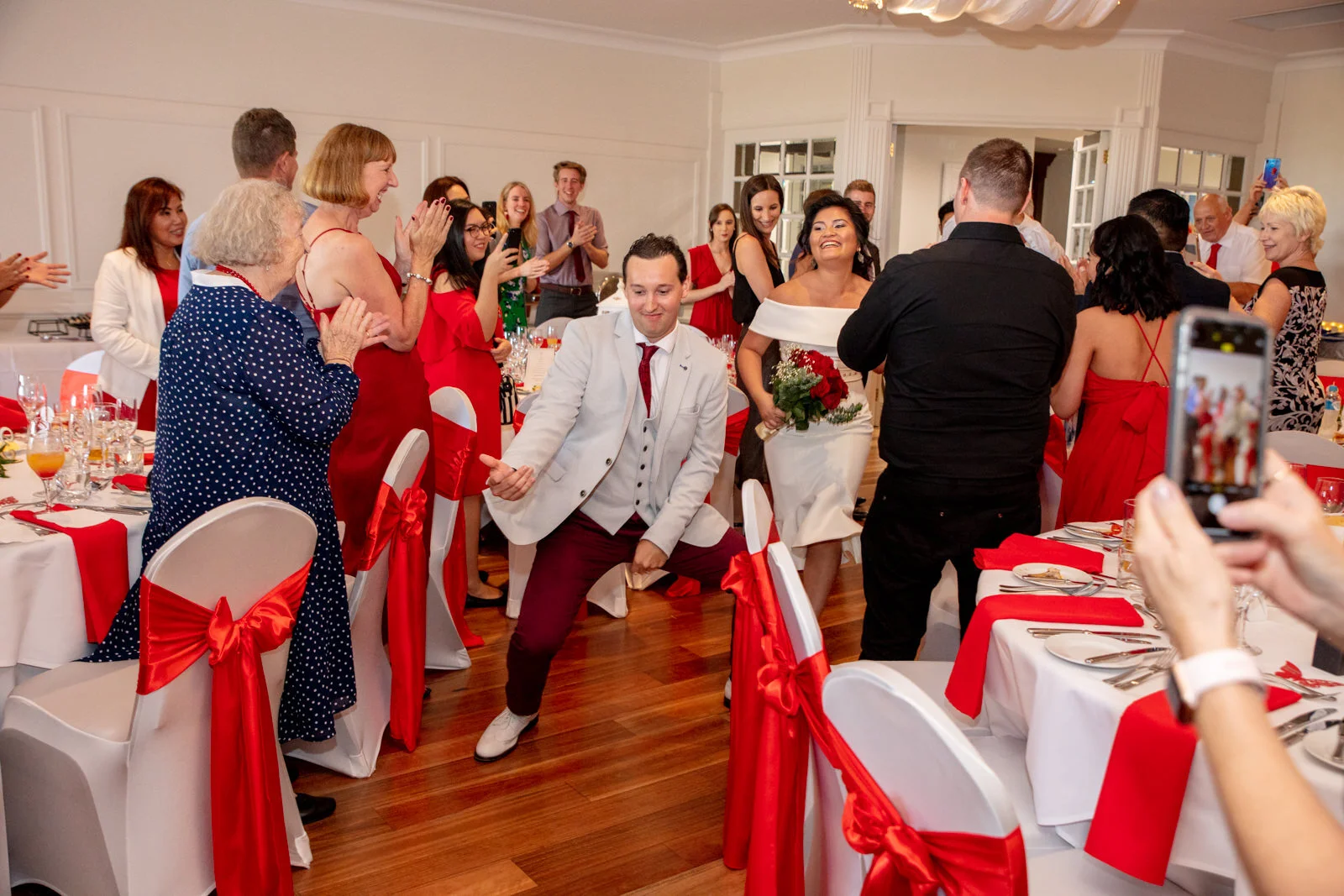 Upon entering the reception, Ben, Marie & the bridal crew unleashed a dance for their entry getting the crowd up and cheering. For the rest of the day we conducted those extra special formalities like the cake cutting and first dance and those emotional speeches that sure did get a few tears from the crowd and Marie.