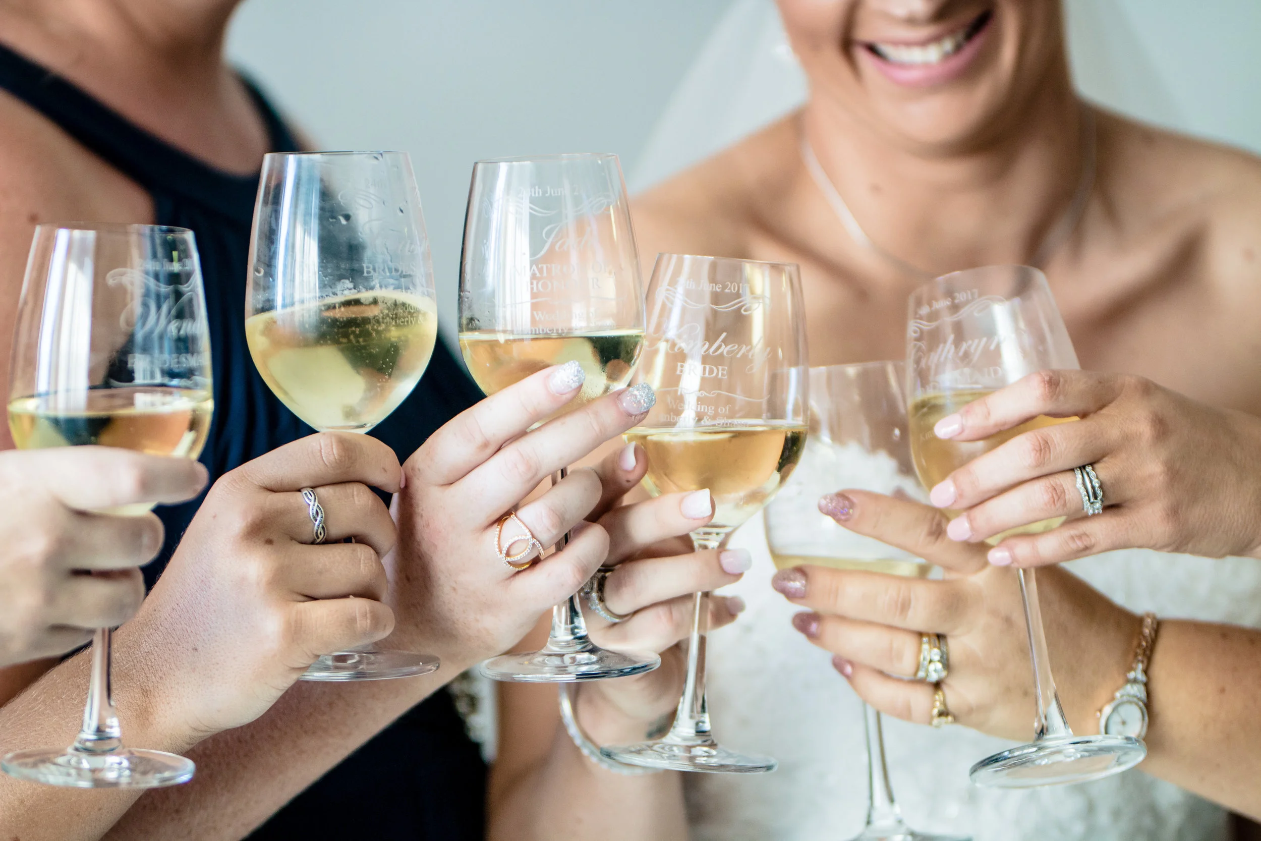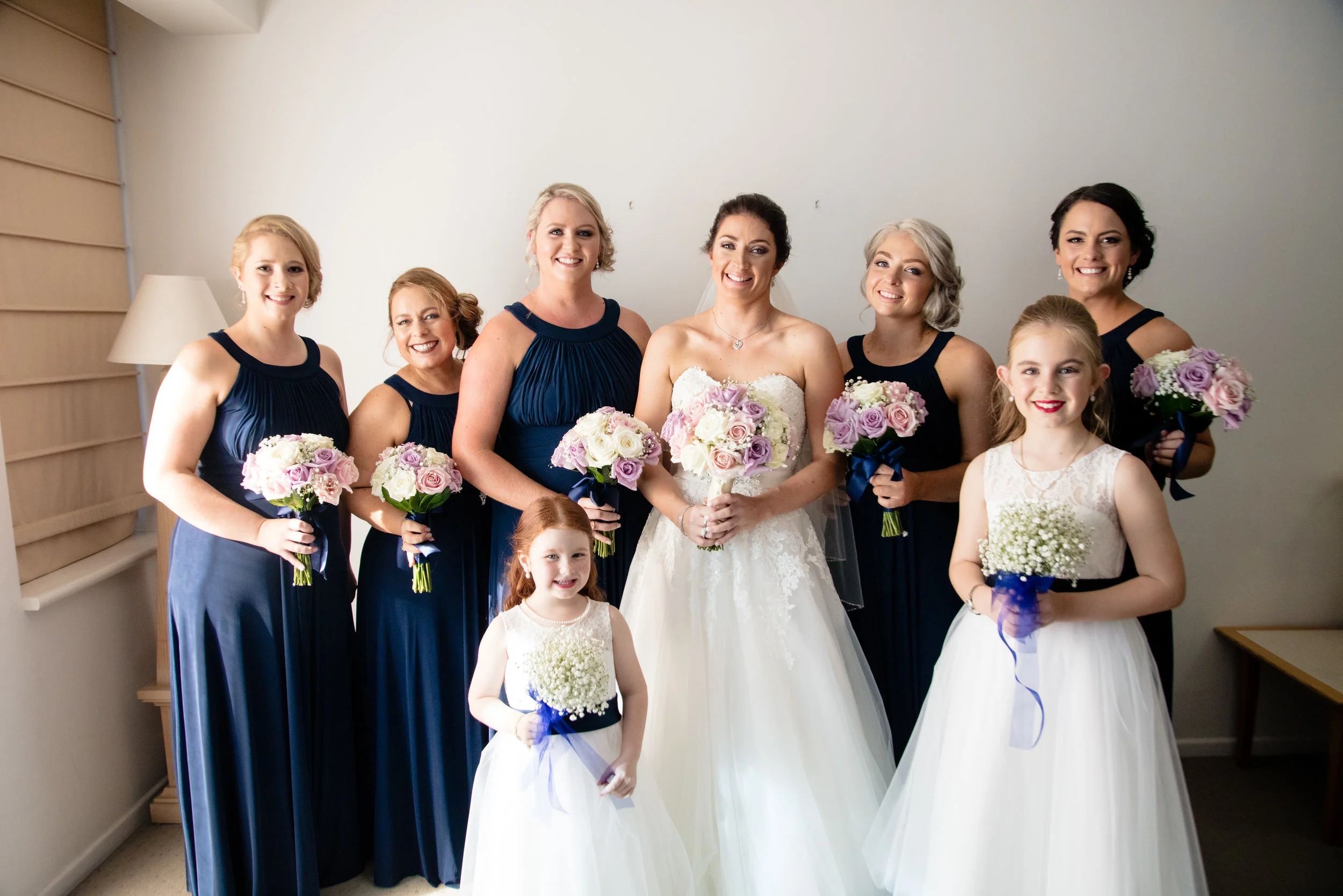 Once Kim was in her dress it was time for all 5 bridesmaids to begin the process of finalising those finishing touches, putting on a stunning belt with a gorgeous display of crystals centred on the front it made the dress from Luv Bridal look even more beautiful then before. Not to mention how well Kim wore it! After putting on the shoes it was time for some fun photos with the girls, and having 5 bridesmaids this made for some gorgeous photos, you could tell how much each of the girls mean to one another. Also having Kids little sister there as apart of the bridal party made it an experience for them both they will never forget.