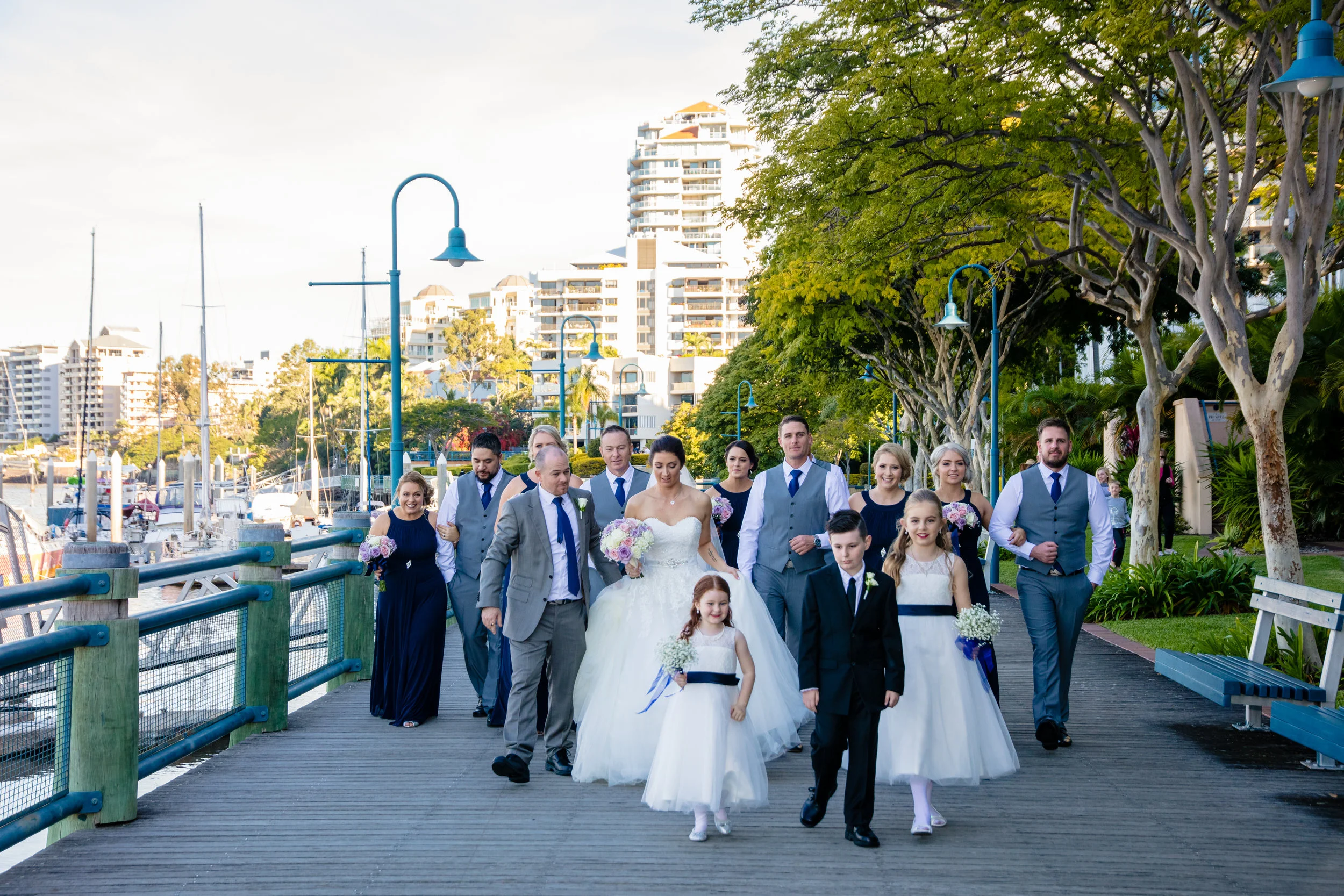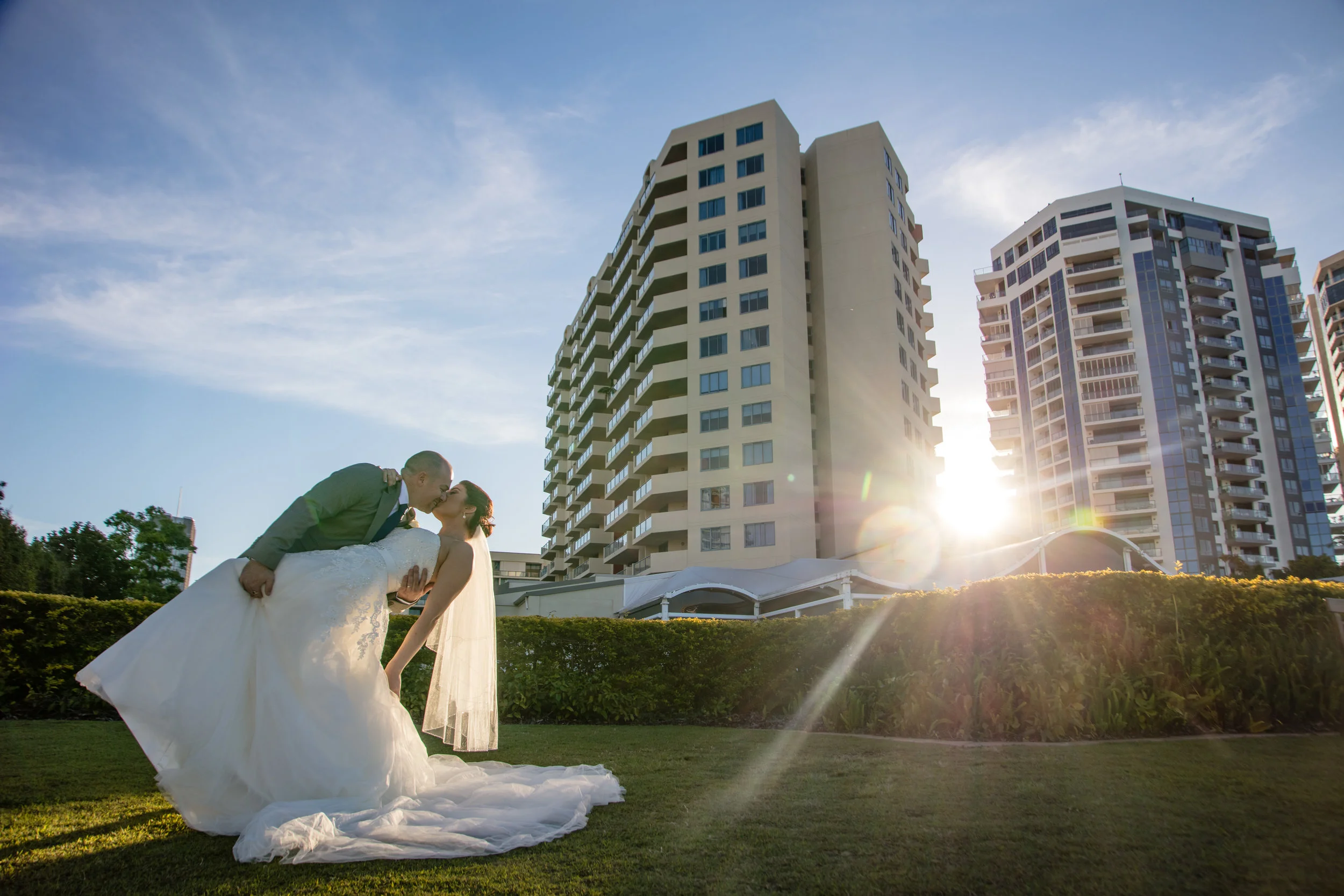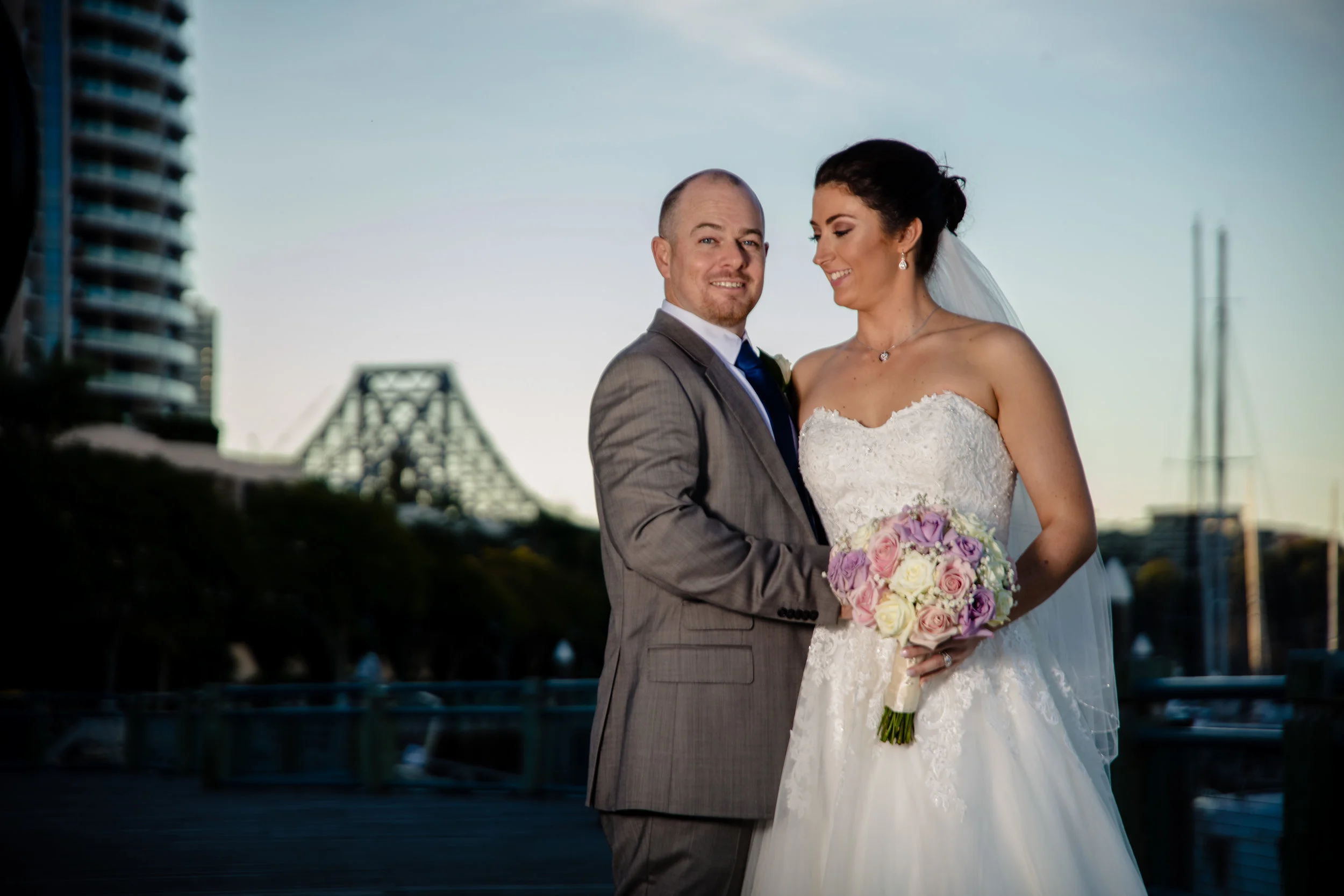 Getting into our fun part of the day, the photos section we went for a little walk on the path along the Brisbane River, getting a few cool group shots whilst we walked, by the seats and by the water this bridal party was a breeze to shoot not to mention a whole lot of fun! Now it was the for Bride & Groom, capturing some gorgeous sunset shots we often remind our couples that this is the moments they get to take in the fact that they are now Husband & Wife. Seeing them both soak up the moment was beautiful, making for some amazing images.