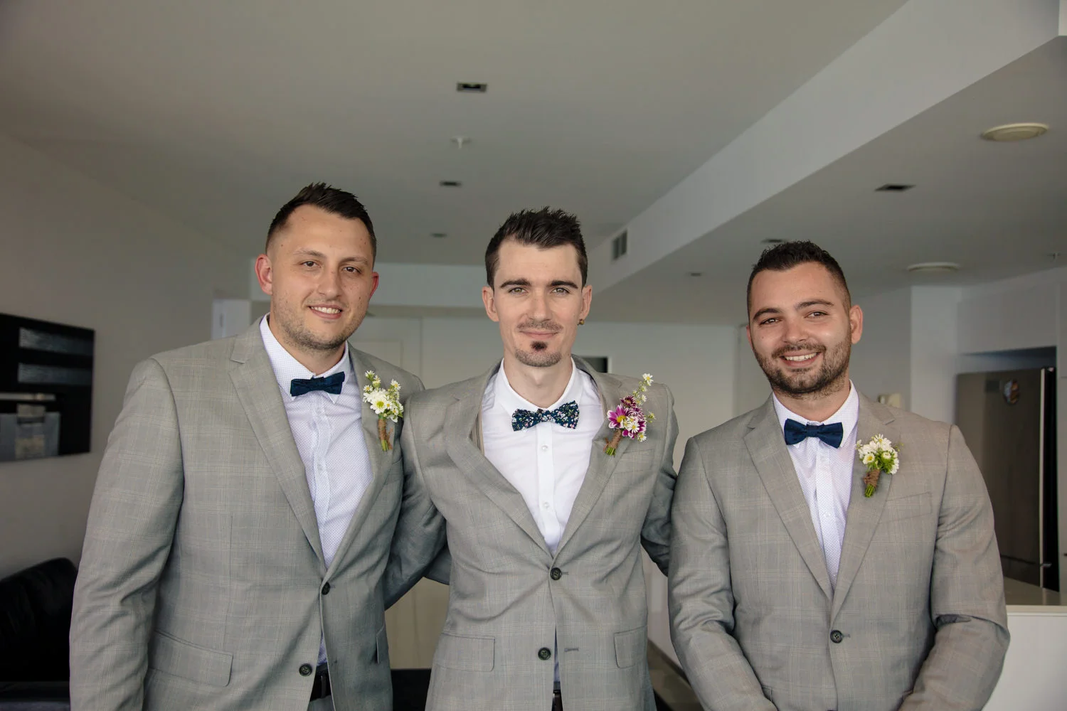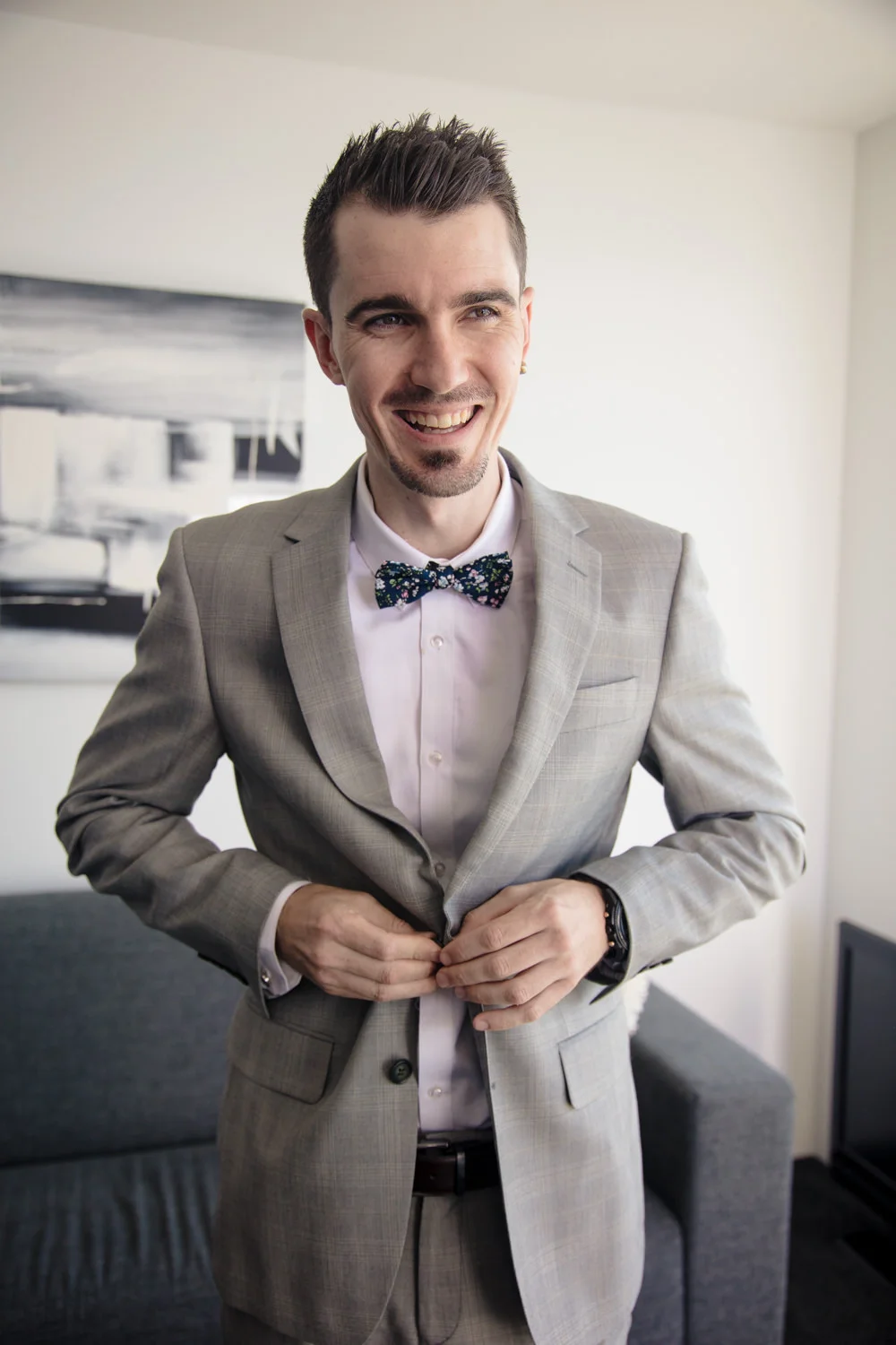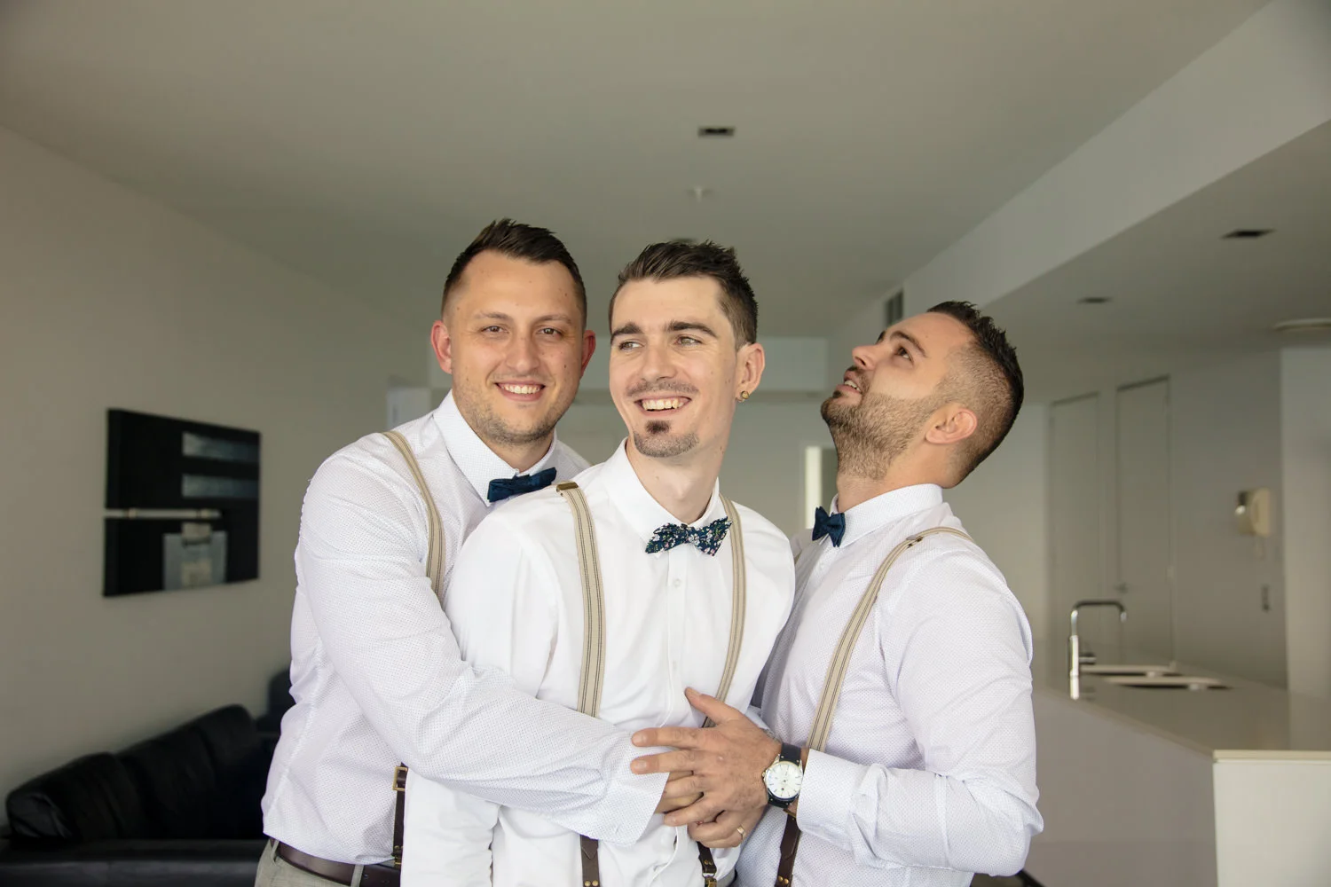 Arriving at the boys in the Q1, we had a beautiful apartment full of space to shoot the boys getting ready. Jordan busting out with personality and funny poses you could tell he was rearing to go! & who wouldn't be, his gorgeous bride was in the getting ready process herself at their family home not to far away.