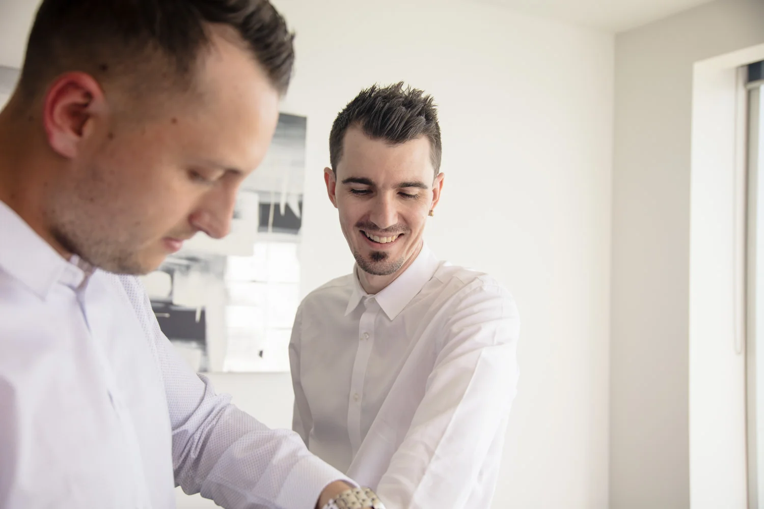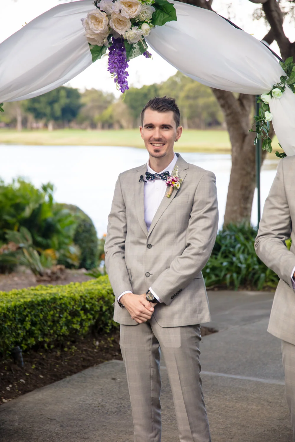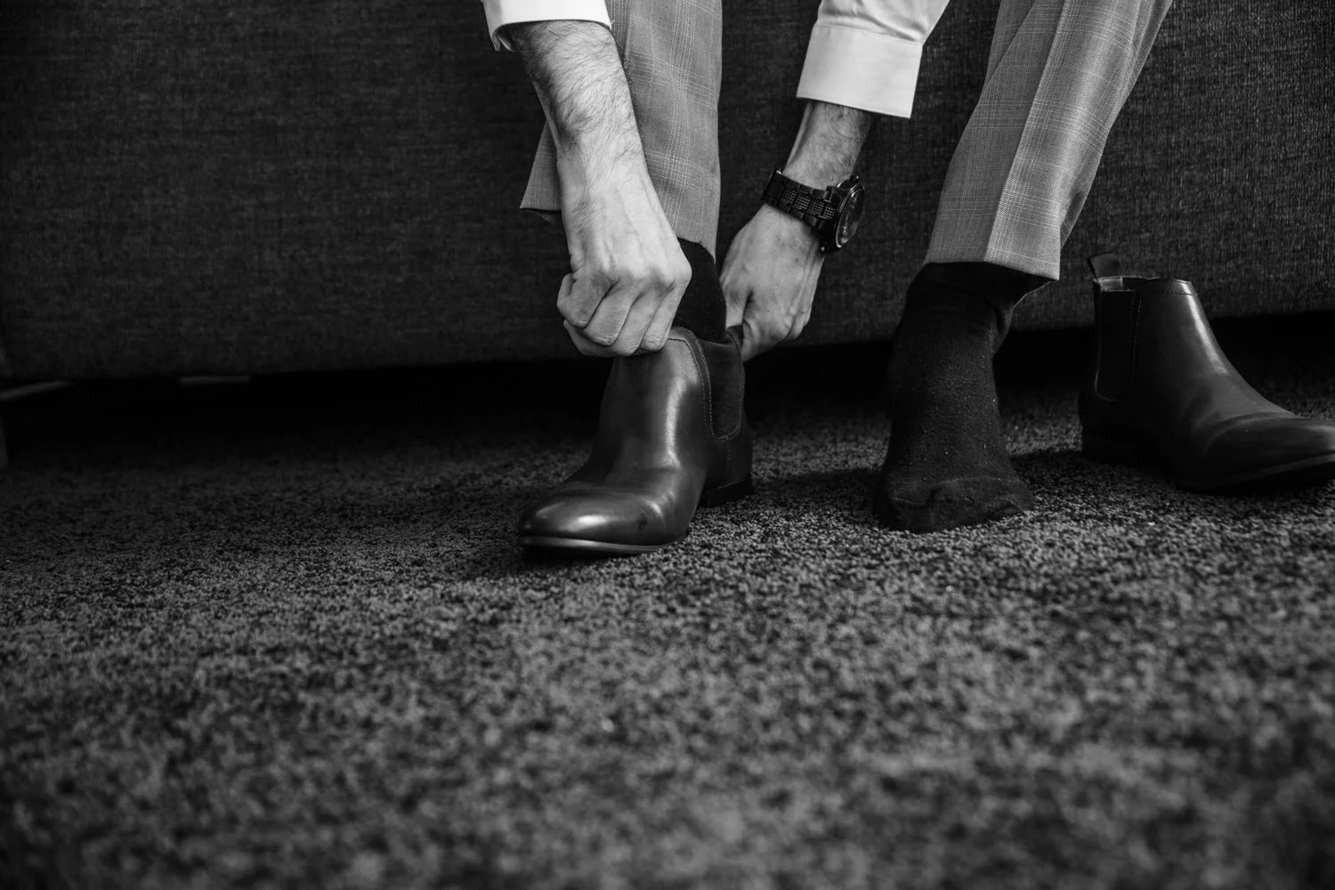 Arriving at the boys in the Q1, we had a beautiful apartment full of space to shoot the boys getting ready. Jordan busting out with personality and funny poses you could tell he was rearing to go! & who wouldn't be, his gorgeous bride was in the getting ready process herself at their family home not to far away.