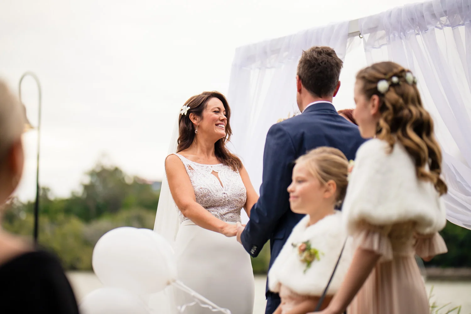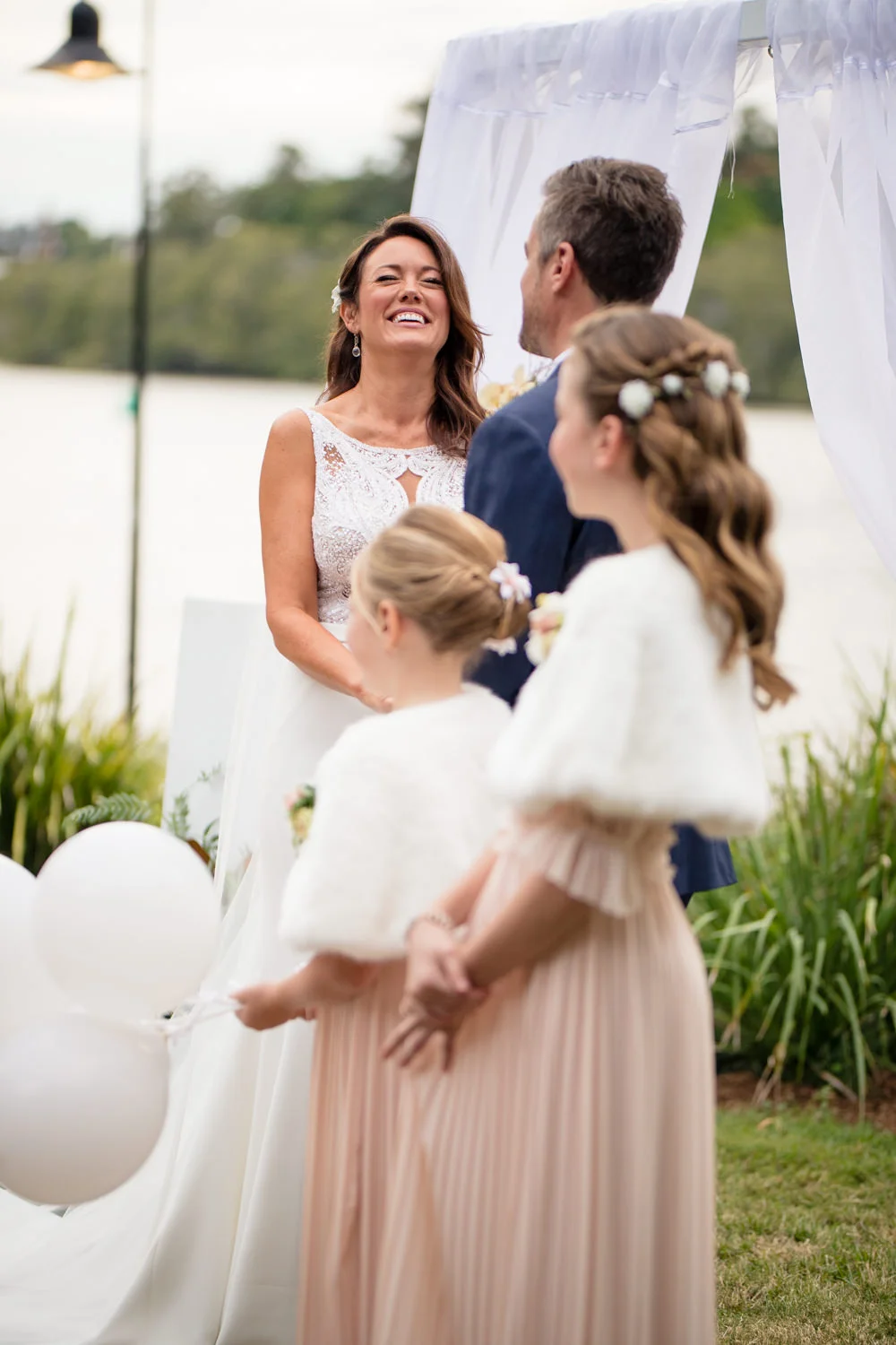 Moving forward it was the big day! Everyone patently awaiting Melissa's grand arrival by boat you could see Tim was anxiously awaiting his bride to be along with his two gorgeous girls.