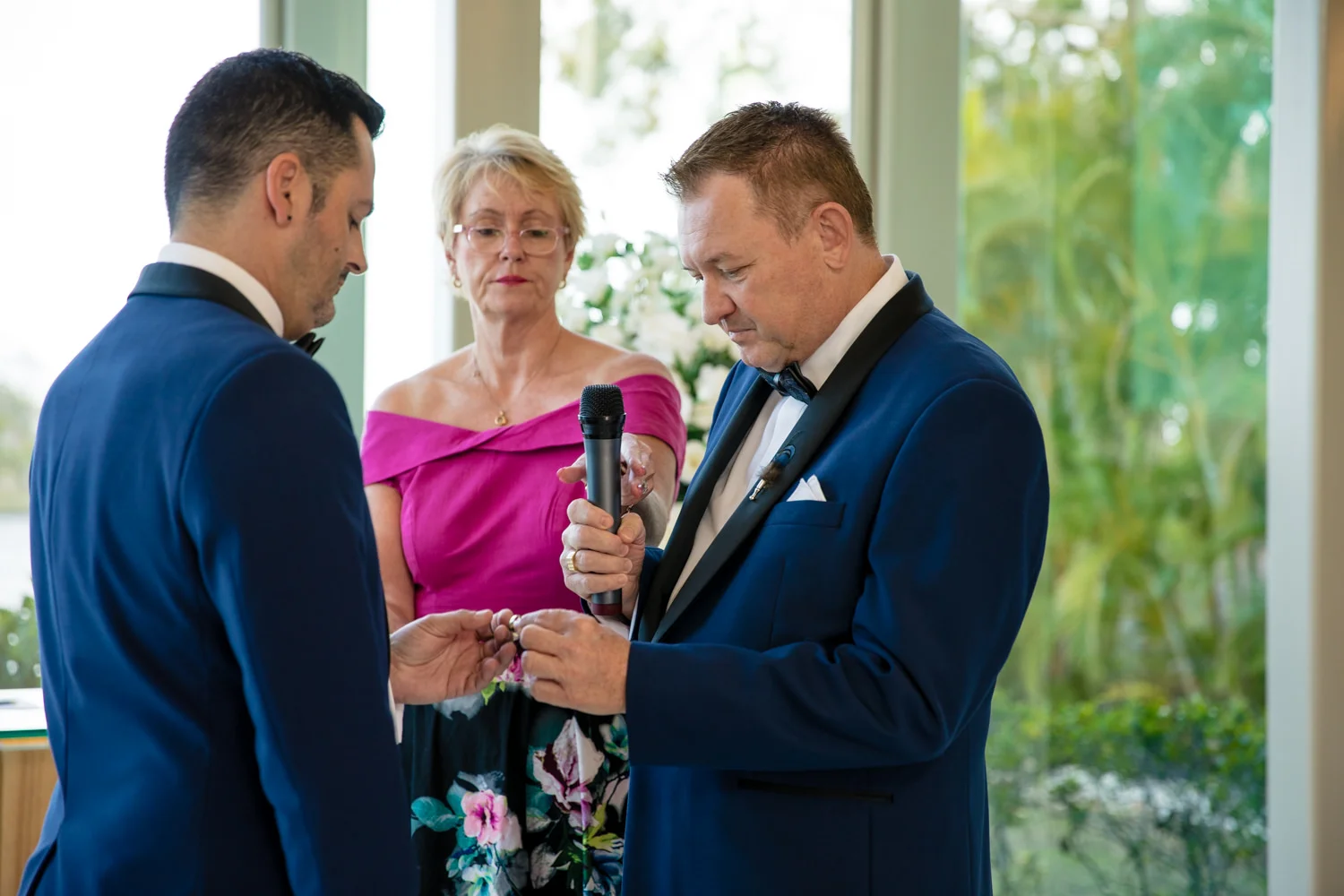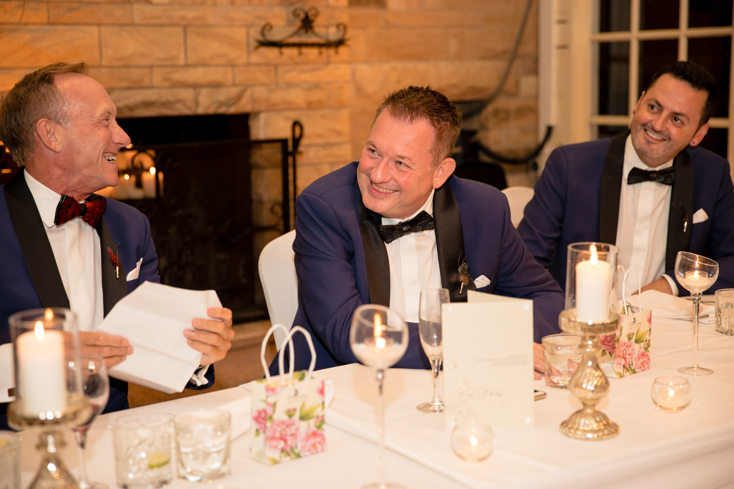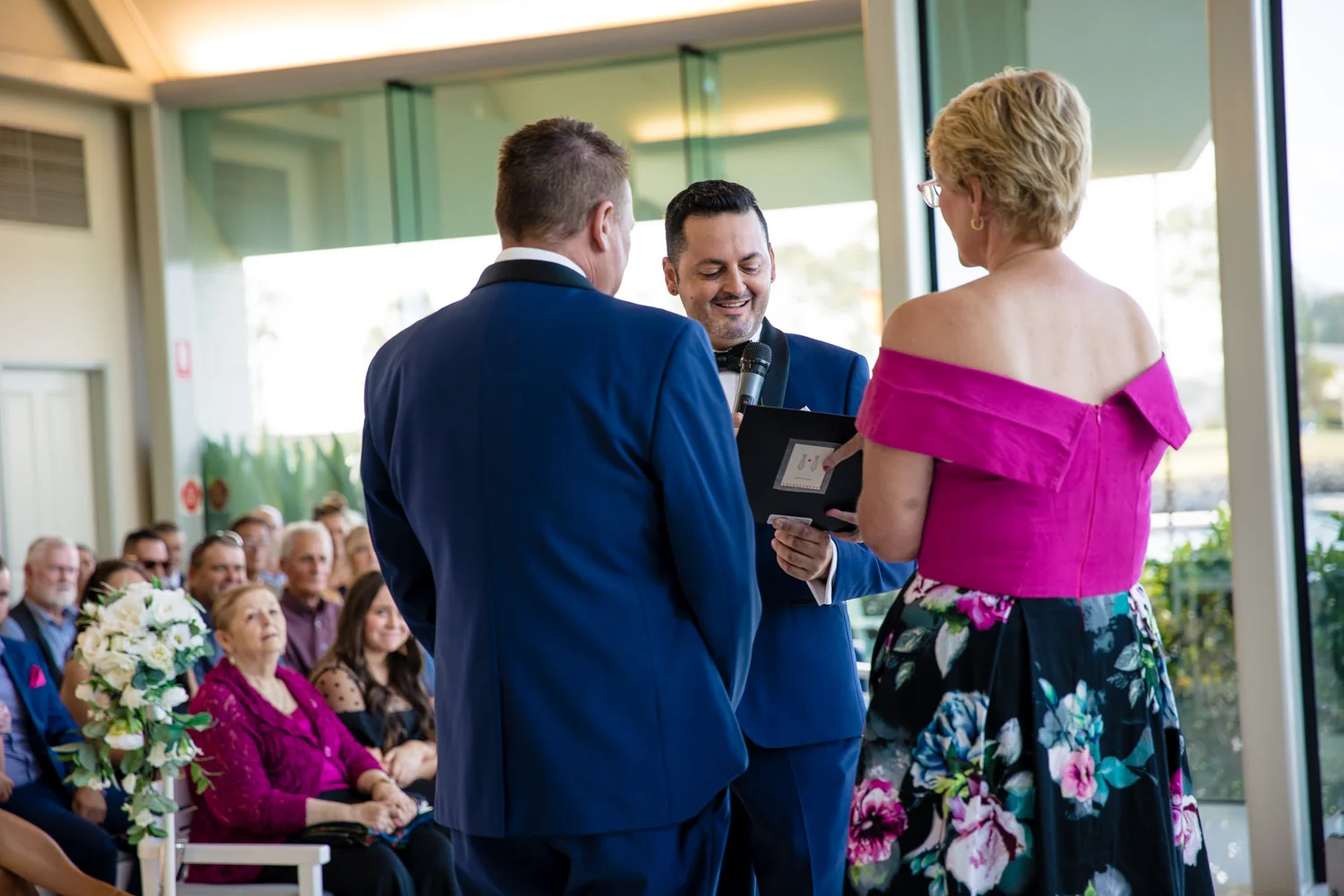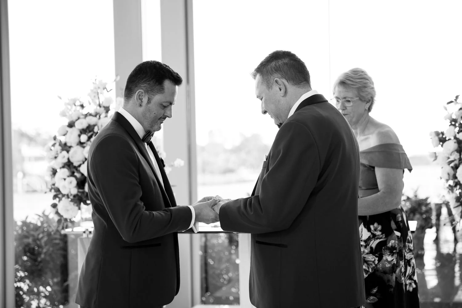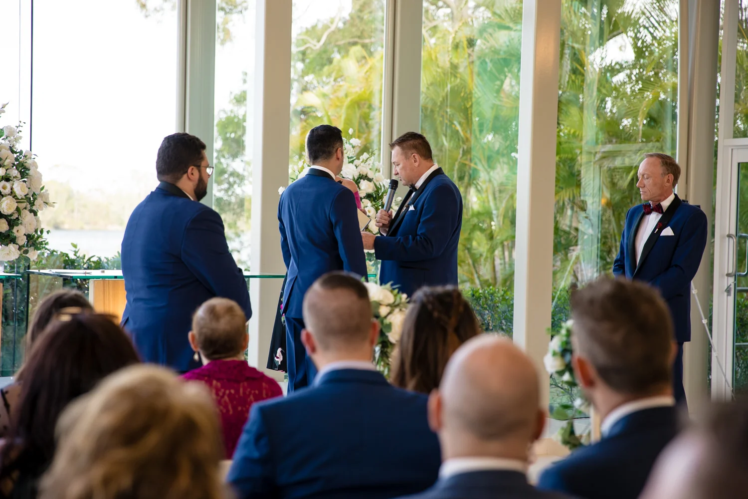 Walking down the aisle was Bretts son & Leo’s best friend, to some mighty fine music might I add. As everyone patiently awaited our two handsome grooms, sure enough down they came, hand in hand and looking happy as ever.