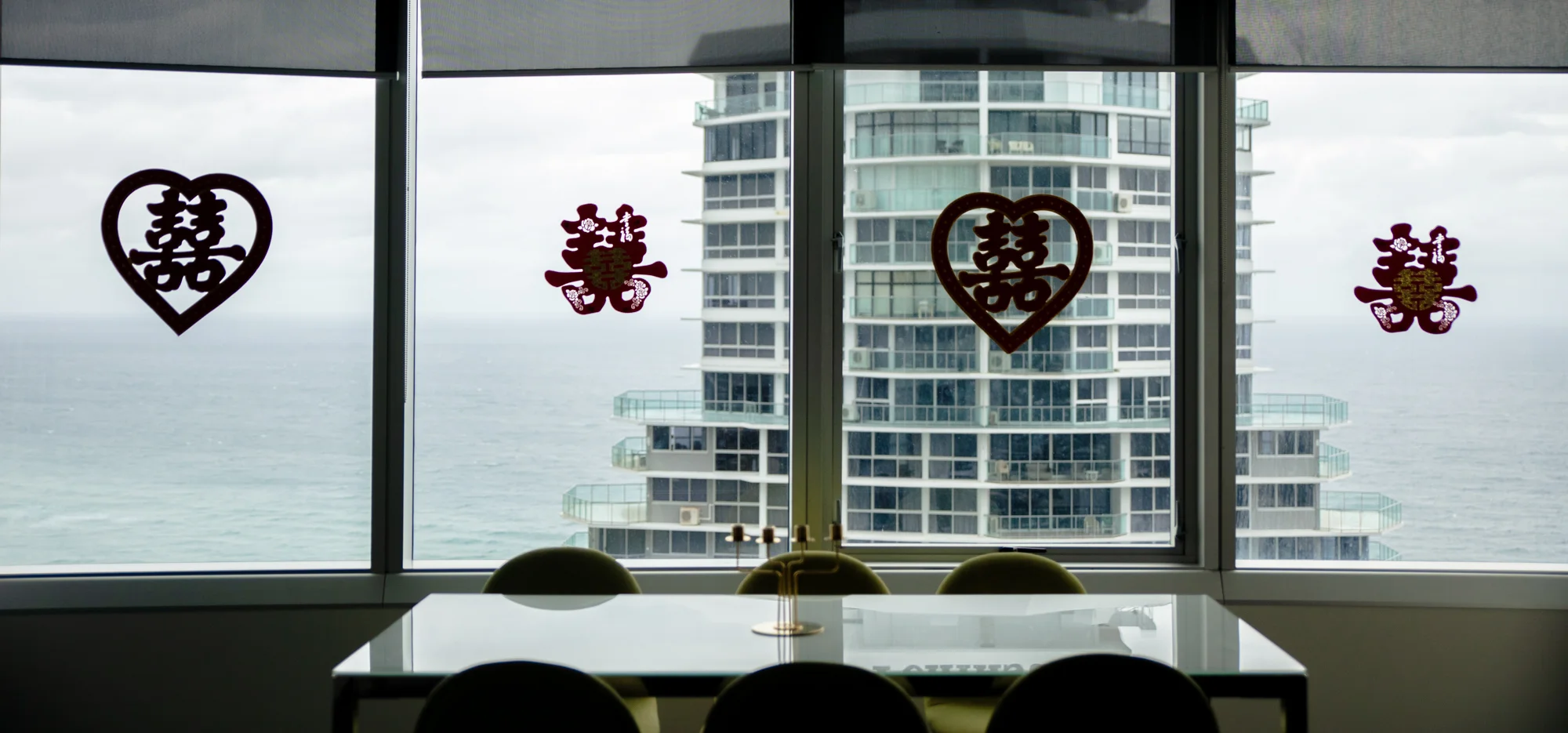 Moving along from here we made our way back to the reception venue, The Island Surfers Paradise. As we made our way in, the beautiful sun decided to come out and play. By this point, we were 11 stories high and not far from entering the reception. Using one of the conference rooms, we did the best we could to still get some of that beautiful sunset before the rest of the night commenced.