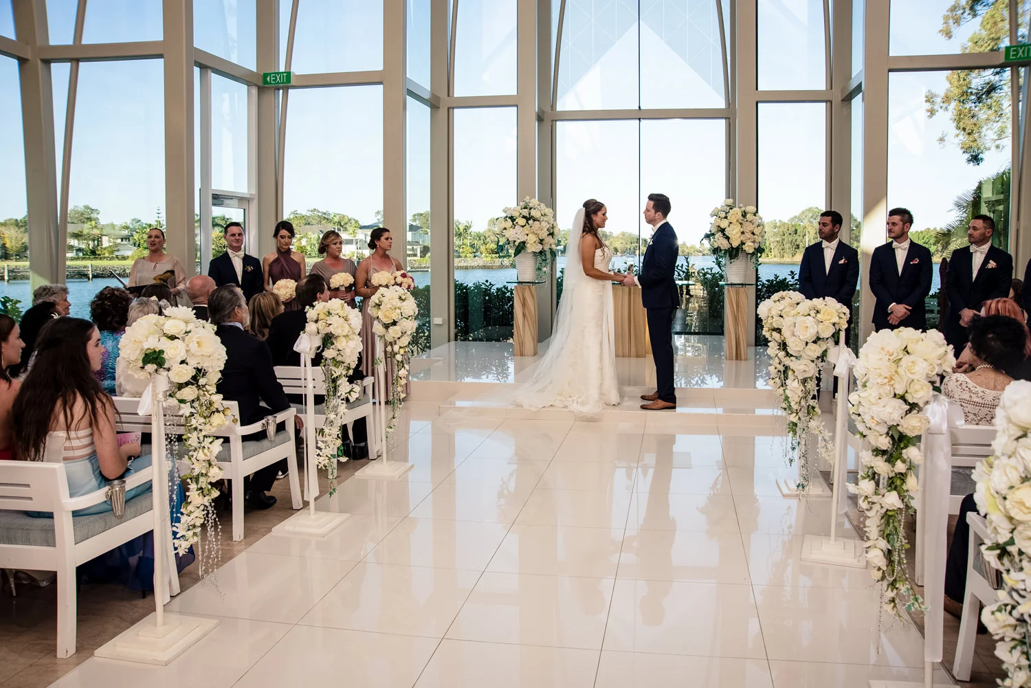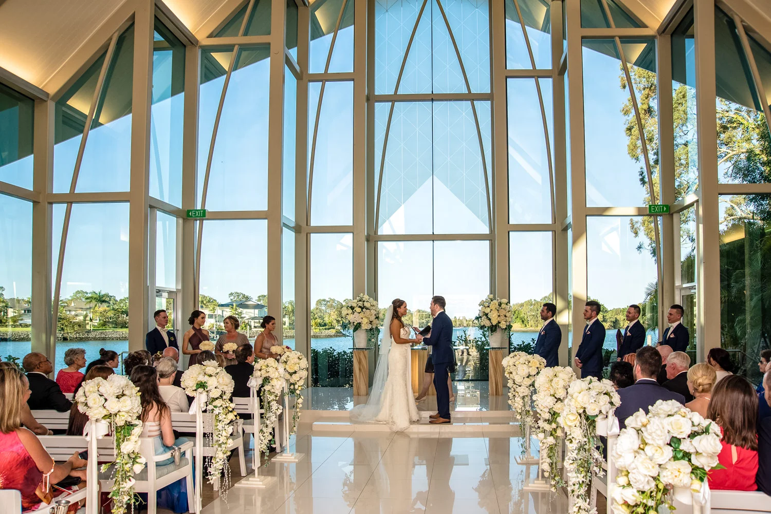 My name is Rob and I was lucky enough to have been part of the J'adore team for the day. The venue for the day is one of my favorites the Intercontinental Sanctuary Cove which is on the Gold Coast. It is such a great all in one venue with great accommodation, ceremony, photos and reception options. The morning went very smooth with both the bride are grooms preparation being covered with photo and video. The ceremony was then at the glass chapel which is almost a famous landmark on the Gold Coast. I love ceremonies because it's one of the only days men are expected and allowed to get emotional and Russ didn't disappoint when Tiare reached the end of the isle arm in arm with her father. I really do love these moments and generally end up shedding a tear or 2 myself as it's beautiful to see love at its purest moments.