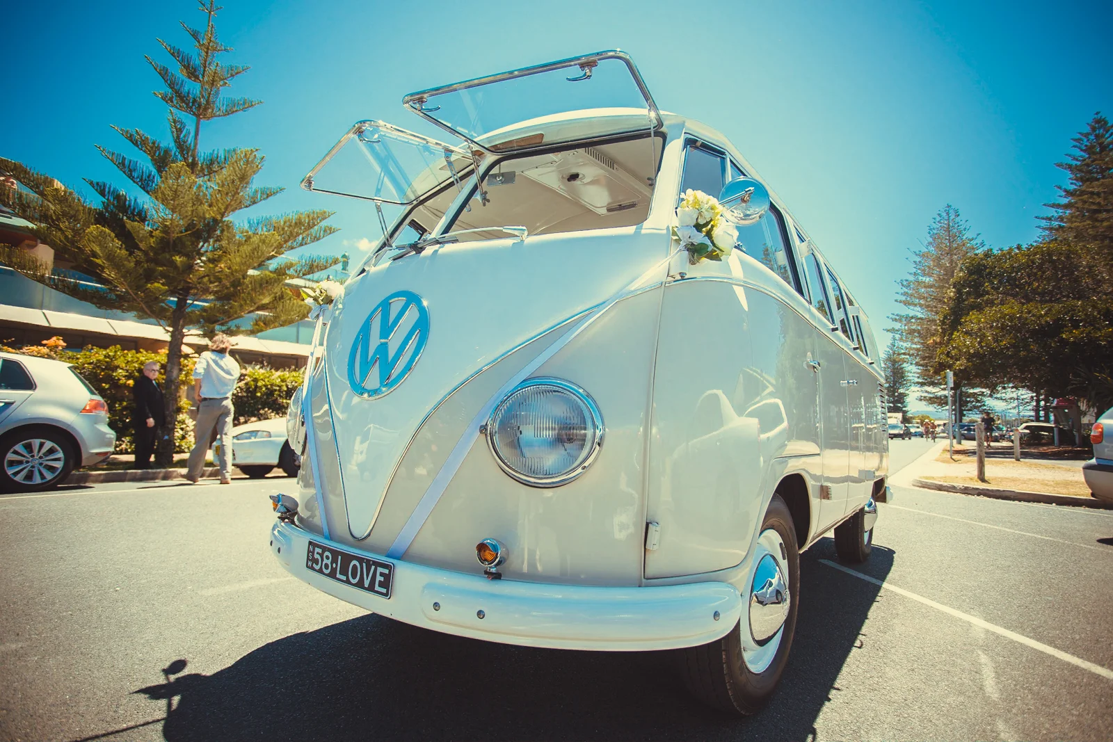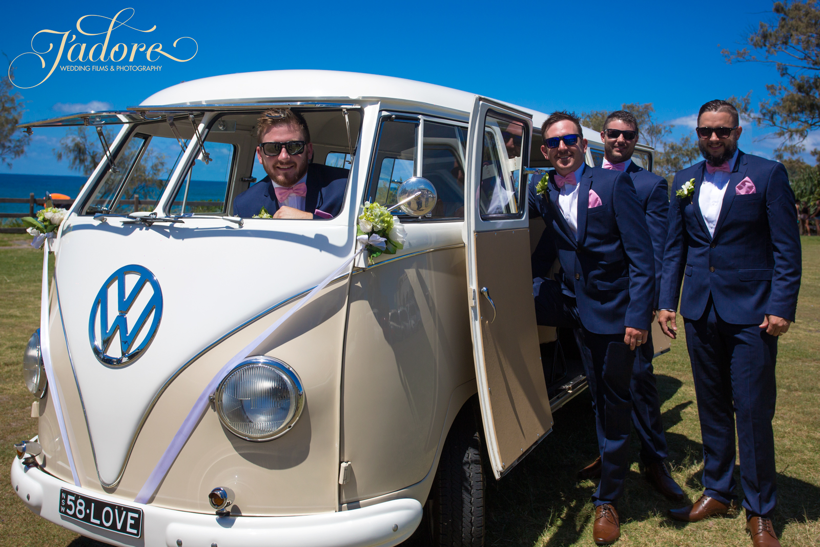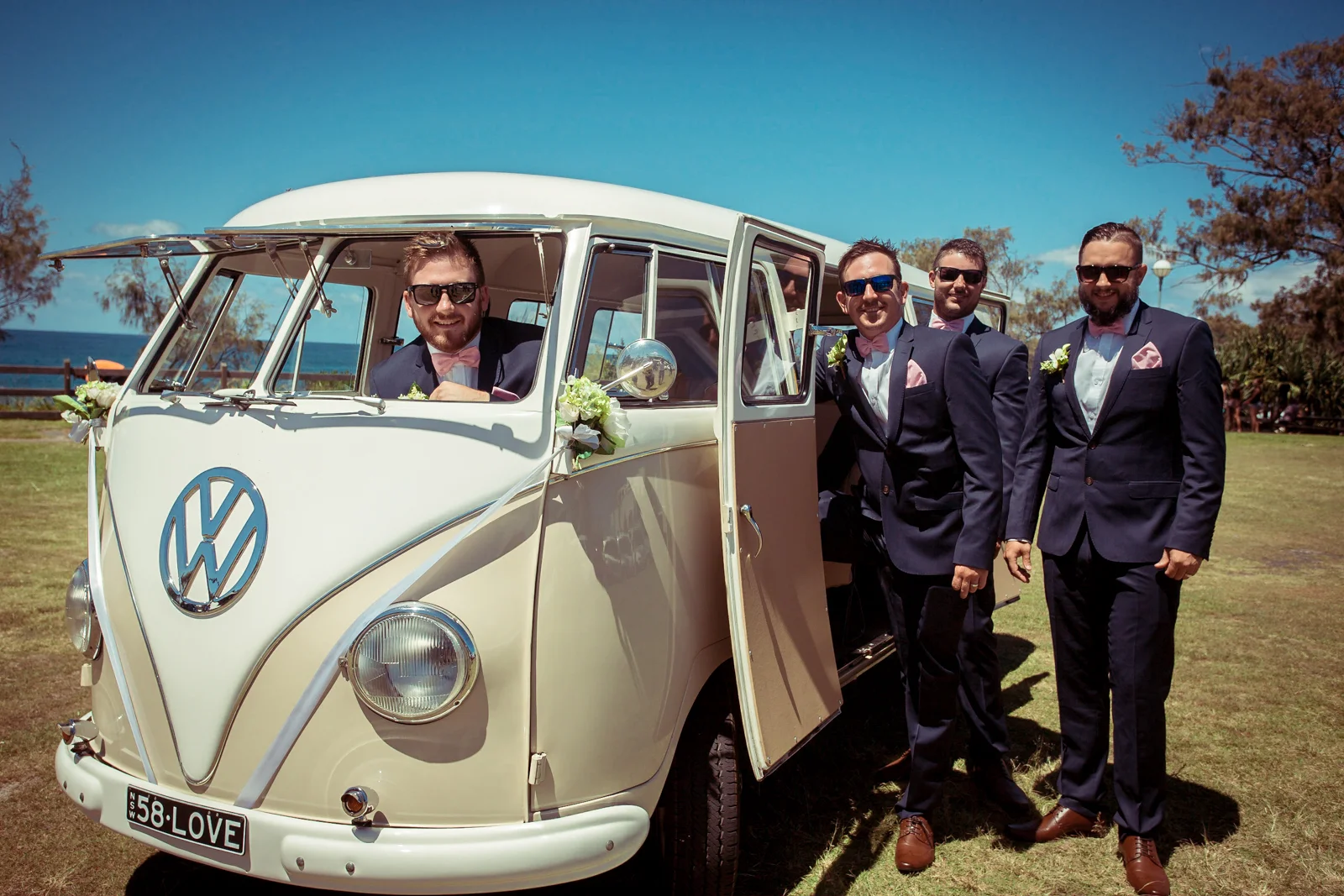 As Simon and his groomsmen party were leaving earlier in true Byron Bay style with a vintage Combie van, we arrived at our beachside destination, 'beach suites'. Just in time, our videographer and photographer 'Jess and Matt' were able to get some great exiting shots of the Grooms crew, right before they pulled out and drove to their next big adventure.