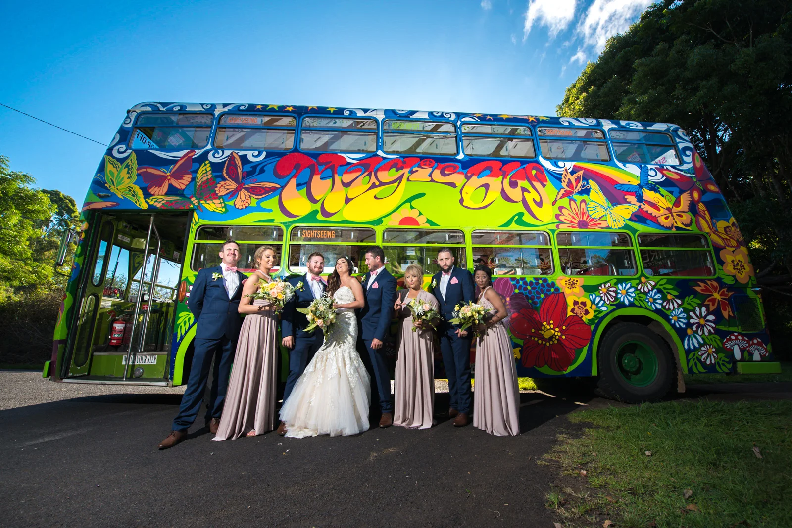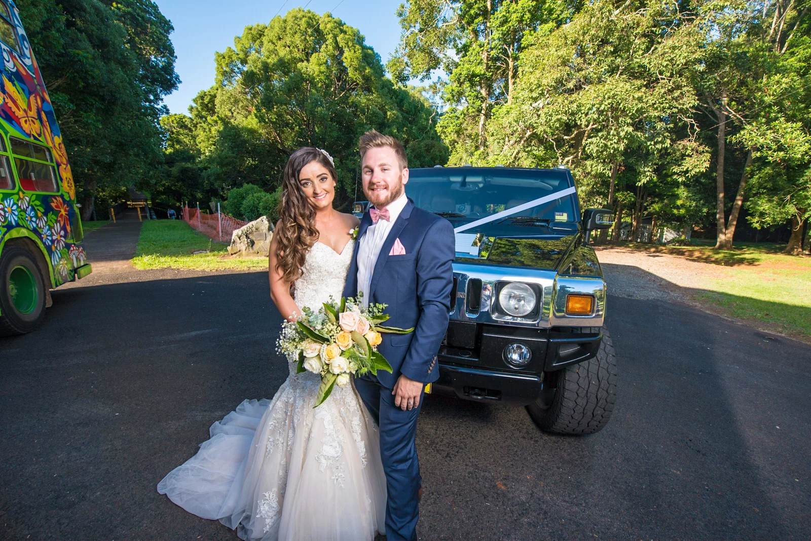 As apart of every wedding day, Jodie and Simon got creative for the photo section and the team travelled to an abandoned park where both the tourist Byron bay double decker bus and the hummer could meet together and transition into a beautiful picture. Working with the Bridal party was a joy and entertaining. From getting those cute/ funny shots on the colourful bus, to taking Simon and Jodie aside to create a more intimate moment; It was hard to put the camera down when infectious smiles were spread across everyone's faces.