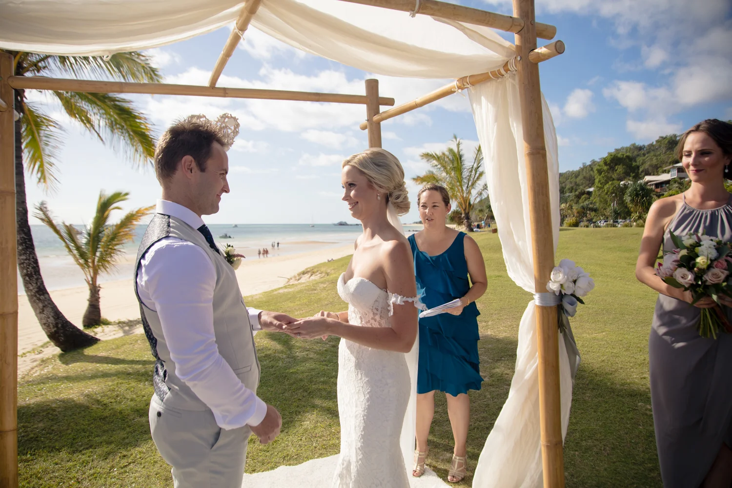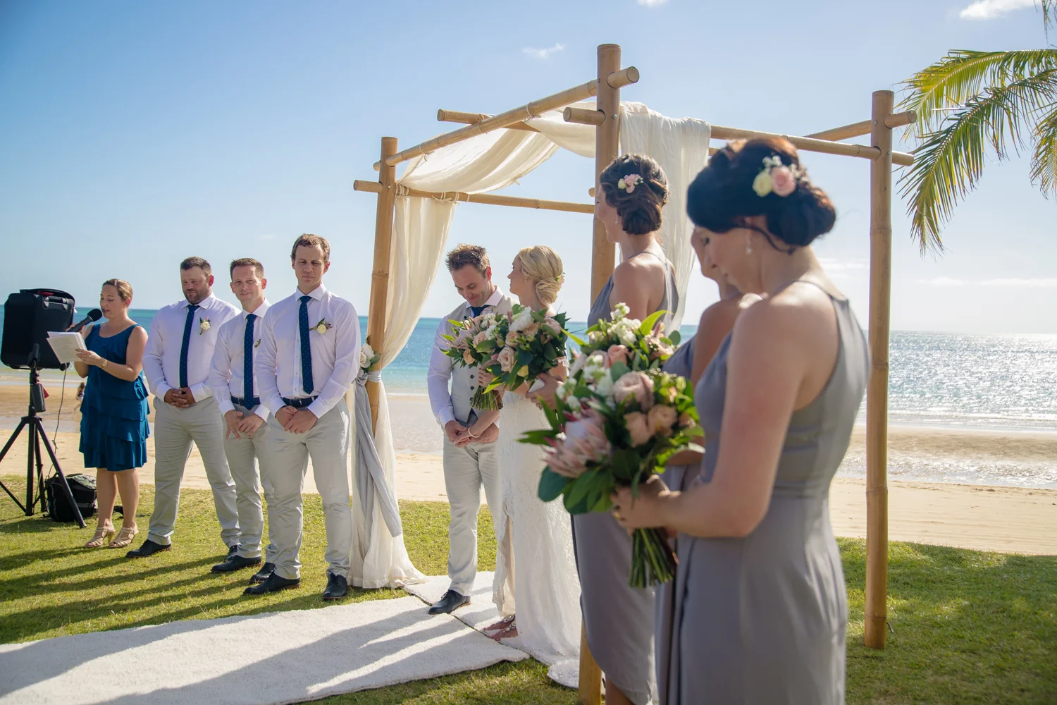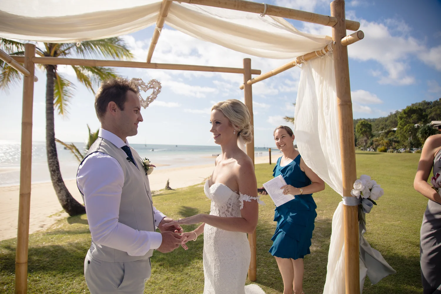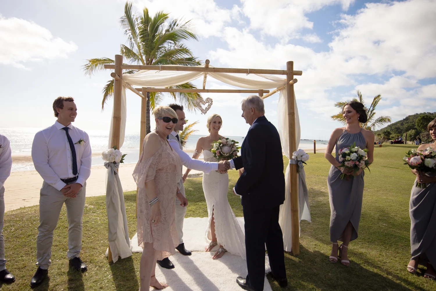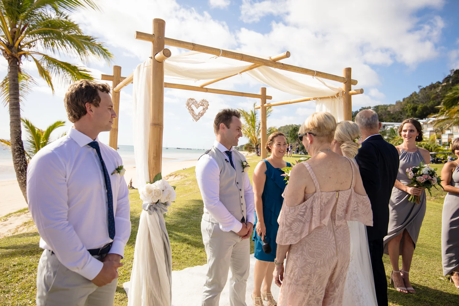 Moving onto Ella and the girls they were all super relaxed just cruising on through the morning which is lovely to see. Once Ella was ready thanks to Goldielocks Hairdressing for doing the amazing hair do & wearing her gorgeous gown designed by Made With Love Bridal we got some beautiful images out on the veranda before making our way to the ceremony location only 10 minutes down the Island. Ella's gorgeous flowers were probably some of my favourite, absolutely loved the floral design by Eden The Flower Shop.