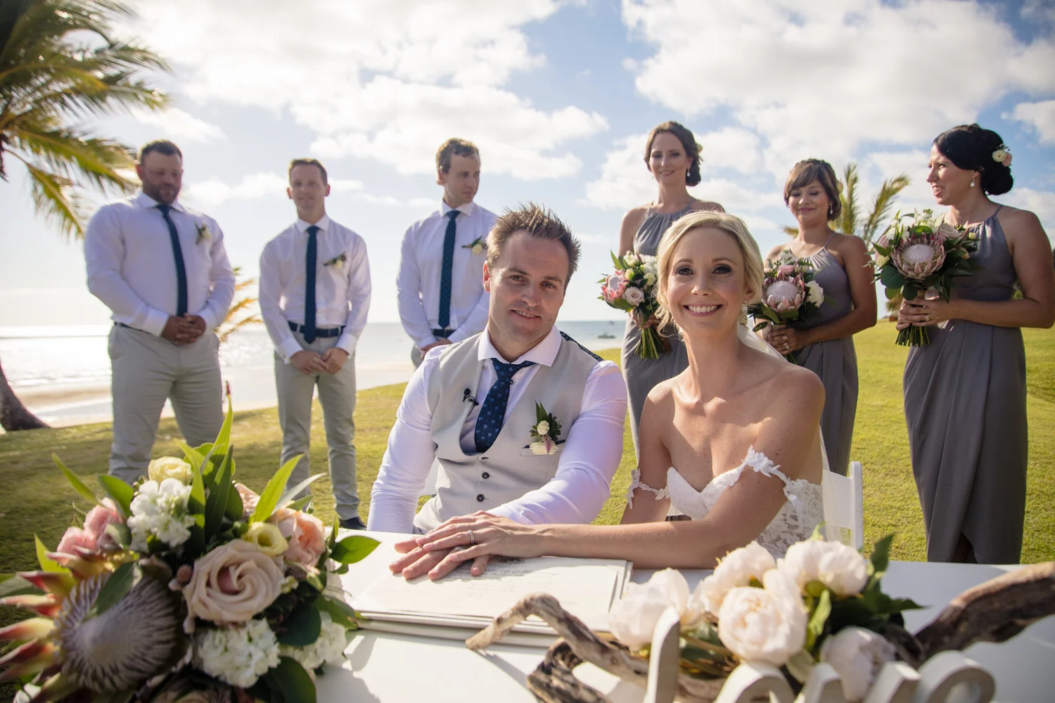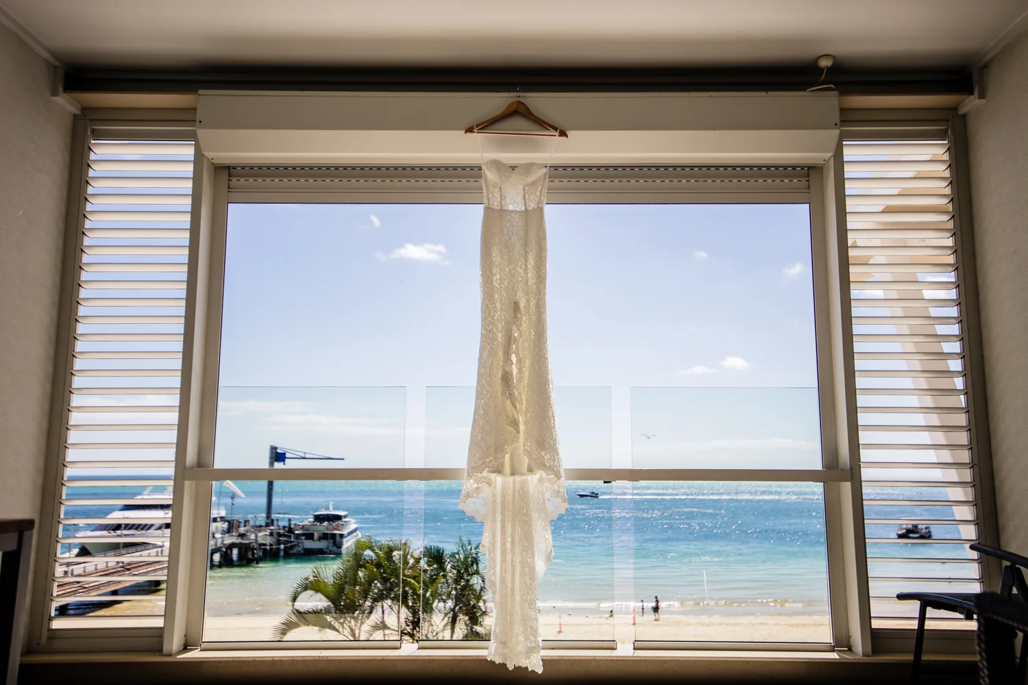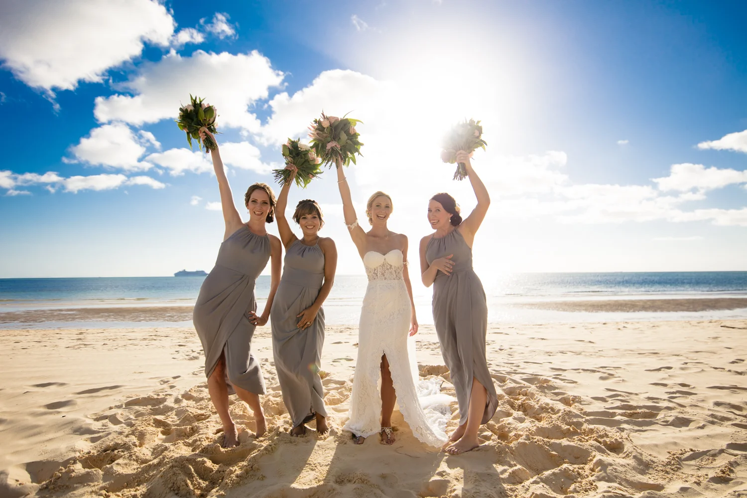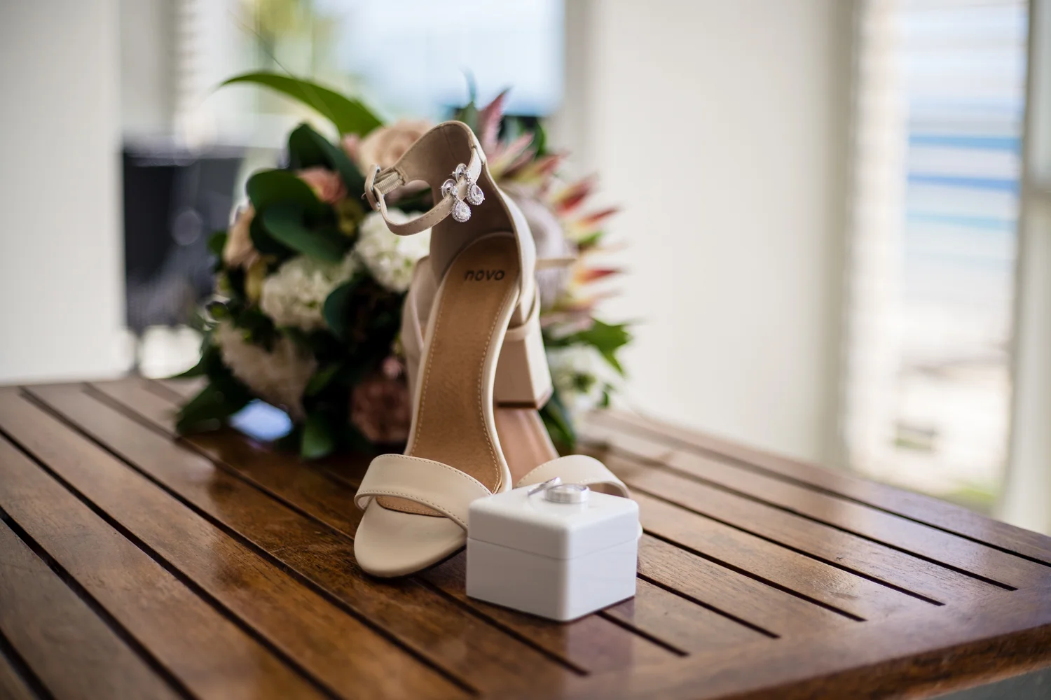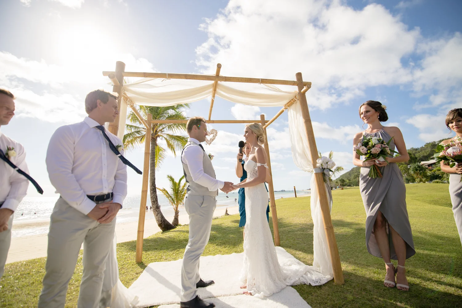 Moving onto Ella and the girls they were all super relaxed just cruising on through the morning which is lovely to see. Once Ella was ready thanks to Goldielocks Hairdressing for doing the amazing hair do & wearing her gorgeous gown designed by Made With Love Bridal we got some beautiful images out on the veranda before making our way to the ceremony location only 10 minutes down the Island. Ella's gorgeous flowers were probably some of my favourite, absolutely loved the floral design by Eden The Flower Shop.