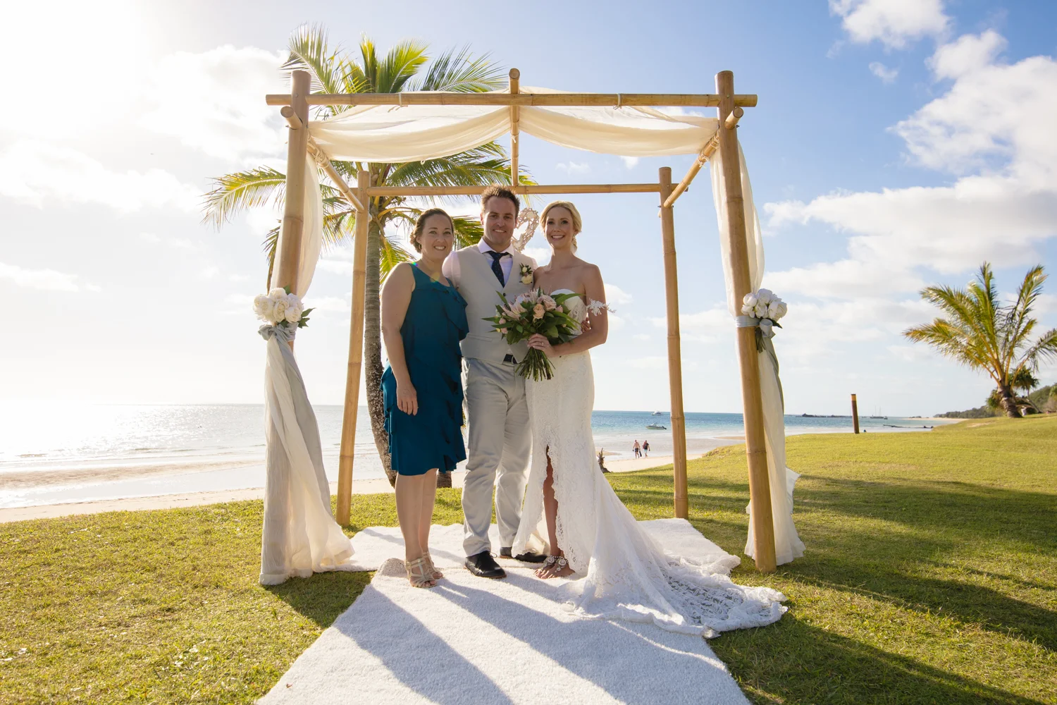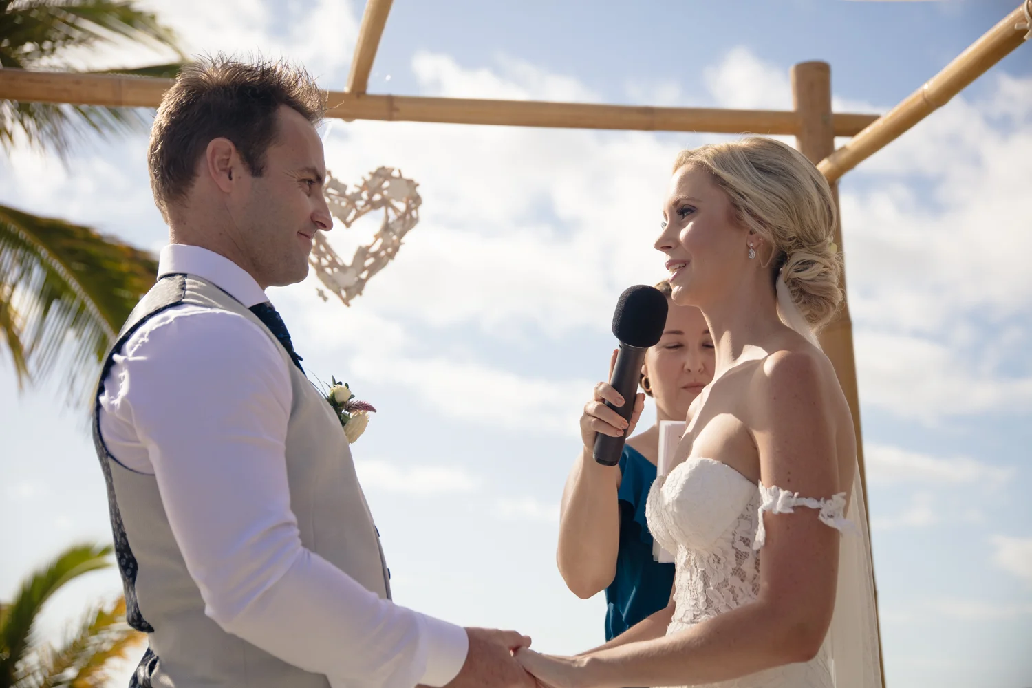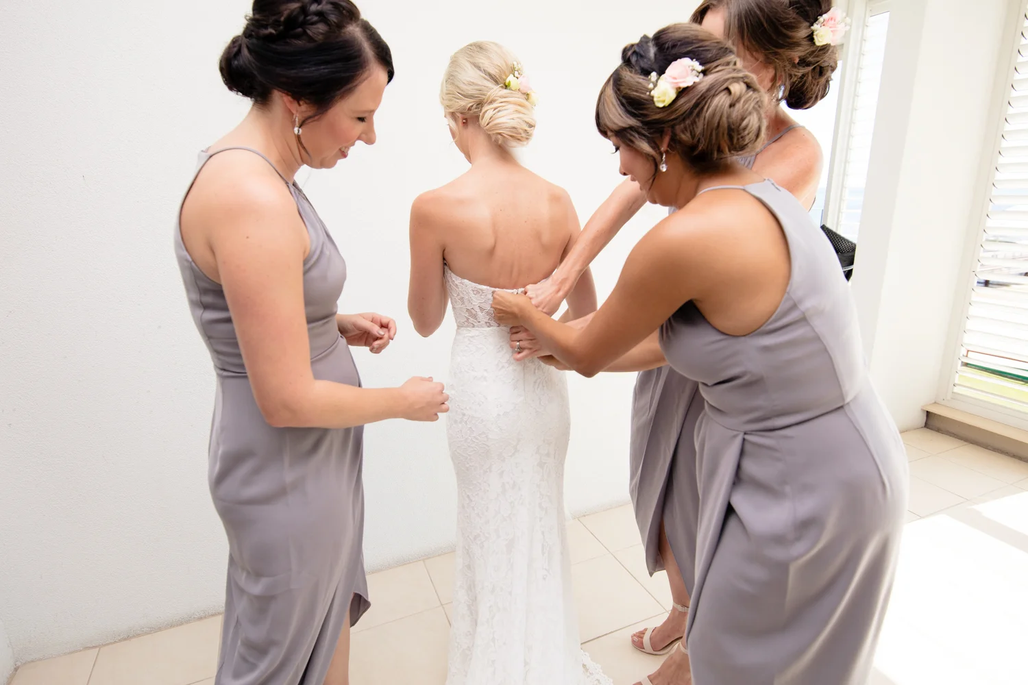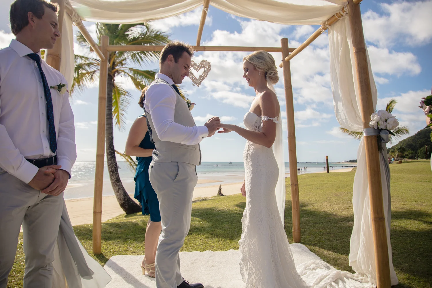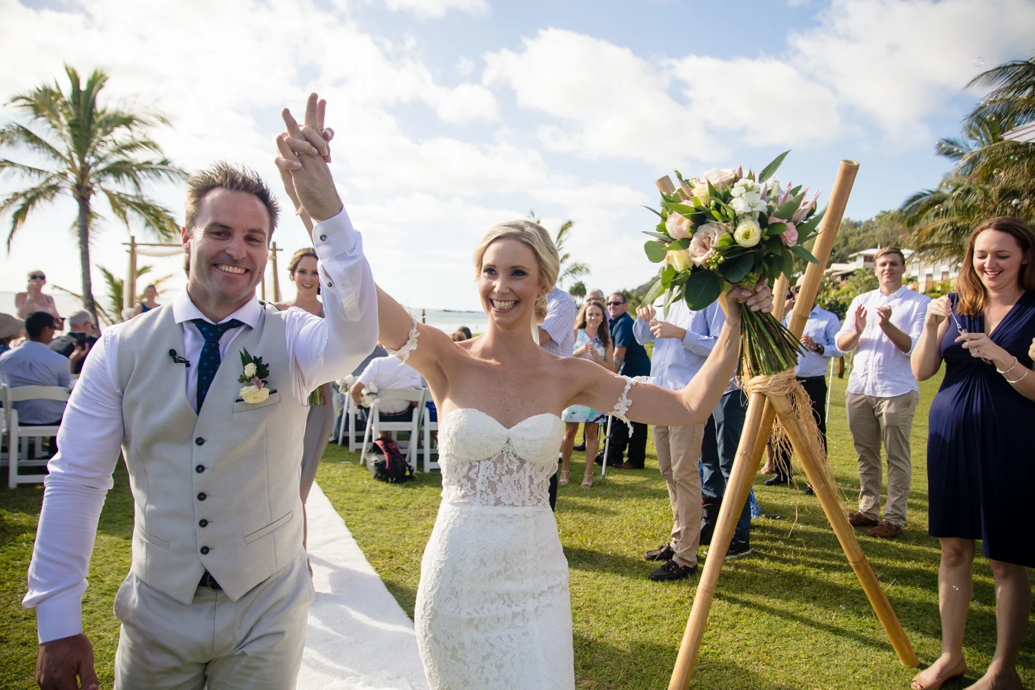 Moving onto Ella and the girls they were all super relaxed just cruising on through the morning which is lovely to see. Once Ella was ready thanks to Goldielocks Hairdressing for doing the amazing hair do & wearing her gorgeous gown designed by Made With Love Bridal we got some beautiful images out on the veranda before making our way to the ceremony location only 10 minutes down the Island. Ella's gorgeous flowers were probably some of my favourite, absolutely loved the floral design by Eden The Flower Shop.
