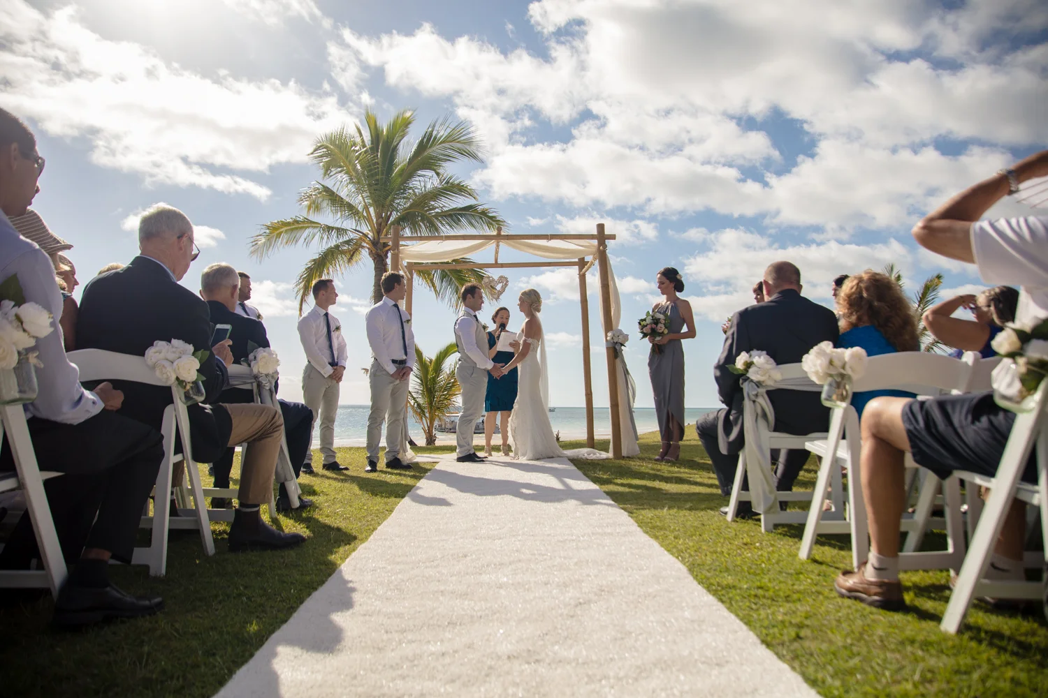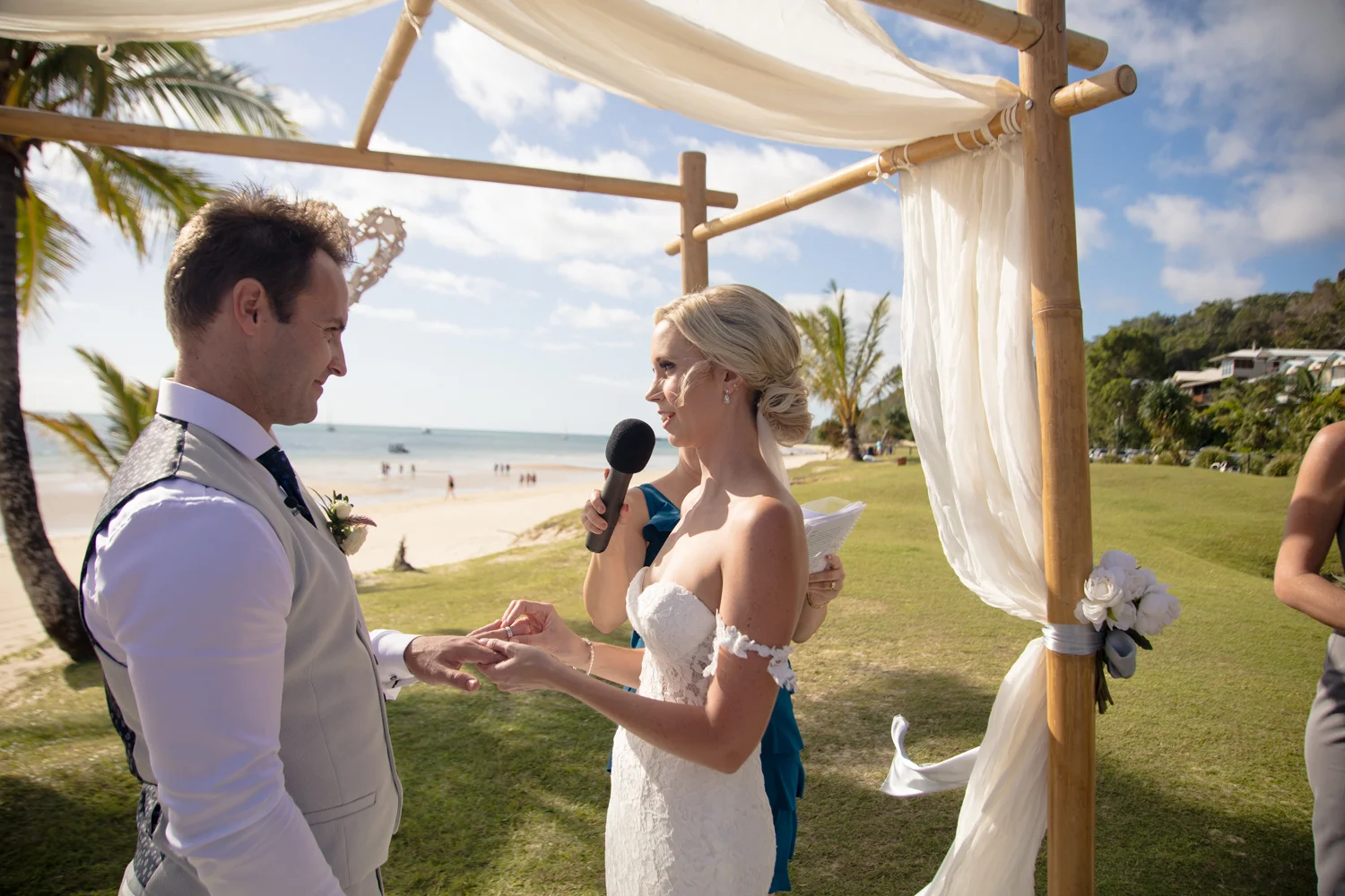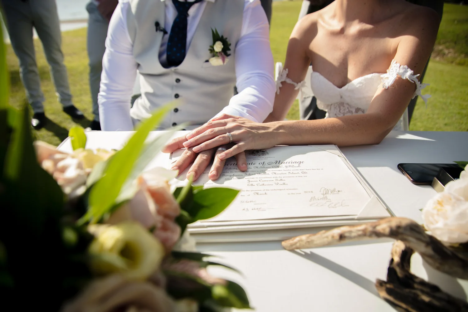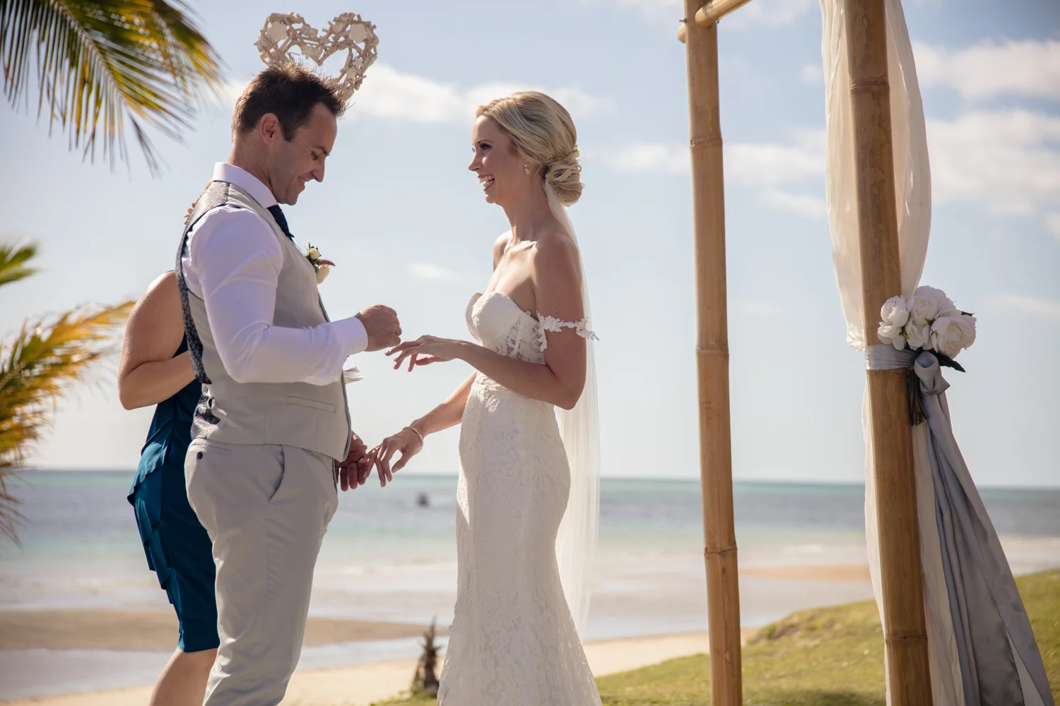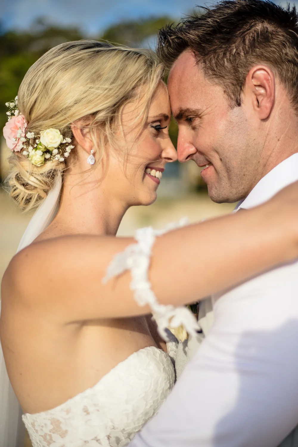 Moving onto Ella and the girls they were all super relaxed just cruising on through the morning which is lovely to see. Once Ella was ready thanks to Goldielocks Hairdressing for doing the amazing hair do & wearing her gorgeous gown designed by Made With Love Bridal we got some beautiful images out on the veranda before making our way to the ceremony location only 10 minutes down the Island. Ella's gorgeous flowers were probably some of my favourite, absolutely loved the floral design by Eden The Flower Shop.