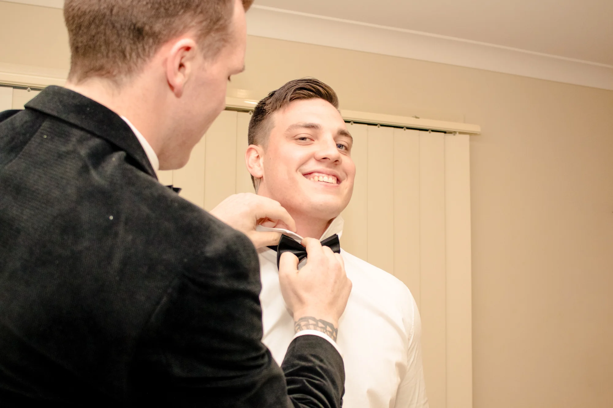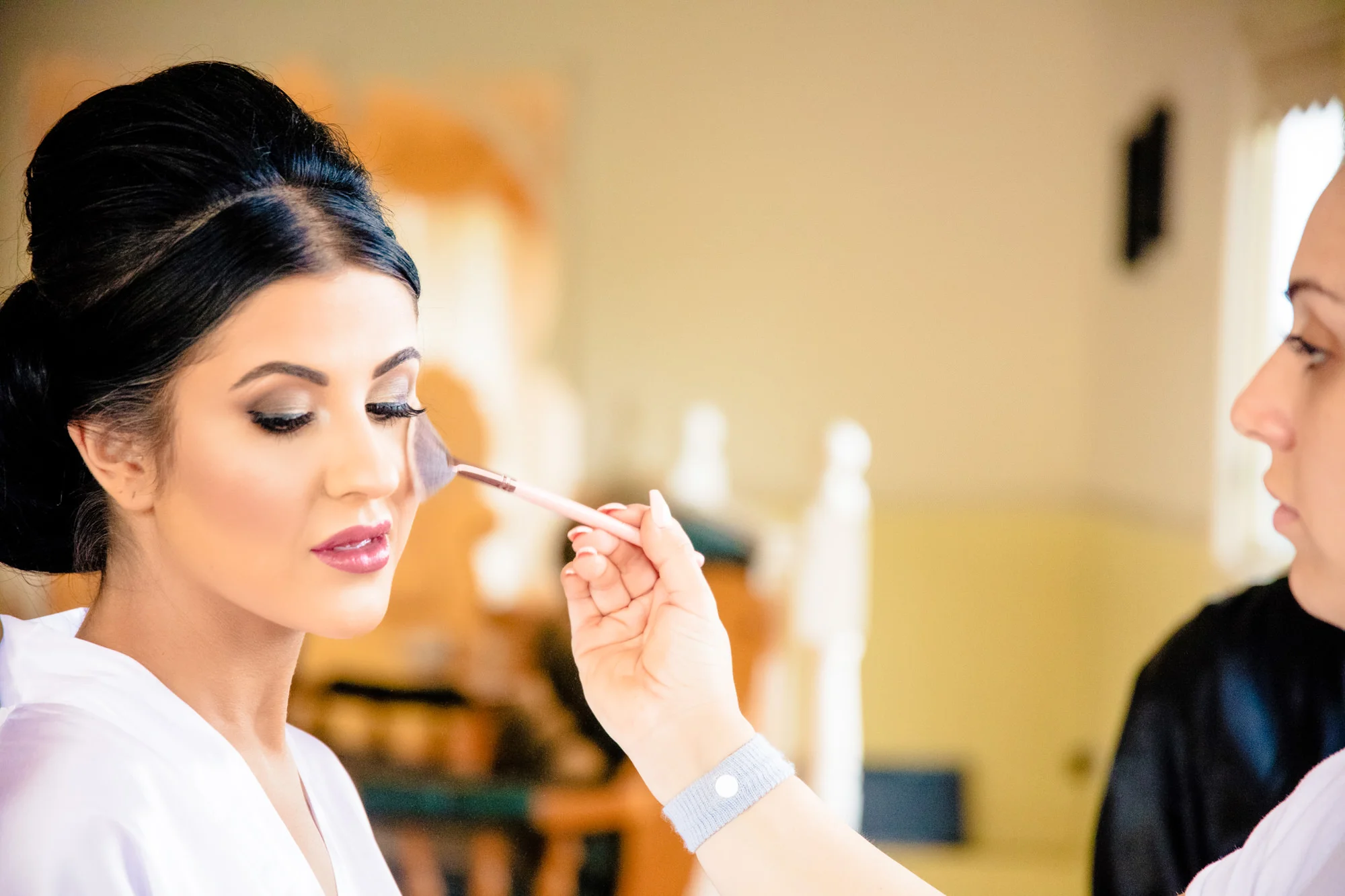 The other team turned up at Sabrina the brides house, and it was bursting with energy. Grace (Sabrina’s Mother) was running around making sure everything was running smoothly so the house was already rustling excitement, and the girls were all together sharing soaking up the day as we head inside. Sabrina was getting her make up touched up by The Blush Clique, so we quickly readied ourselves with J’adores GH5 for videography and Cannon 5DSR for photography, and got some close up shots of the beautiful bride to be.