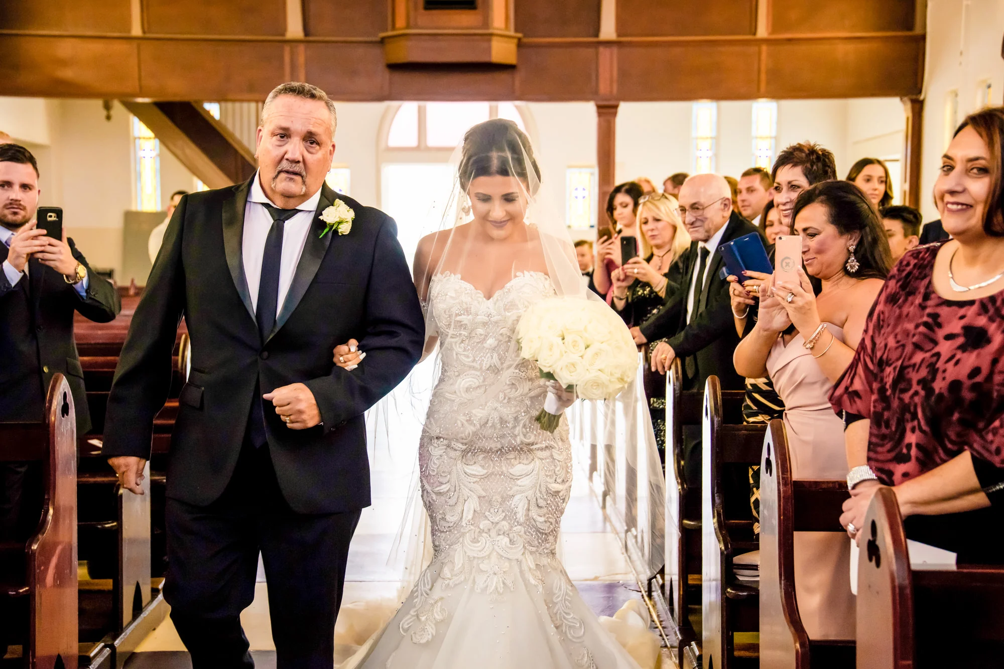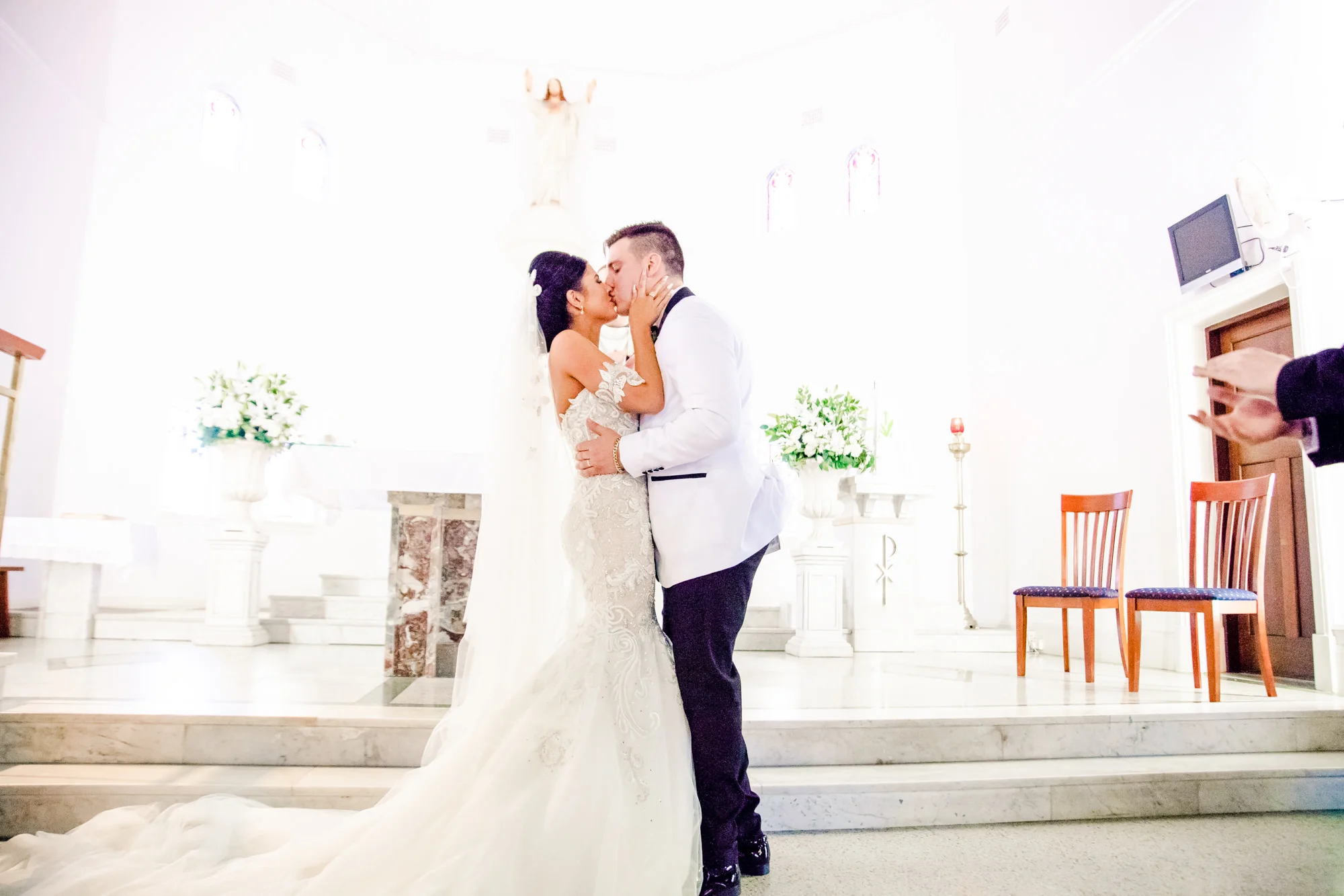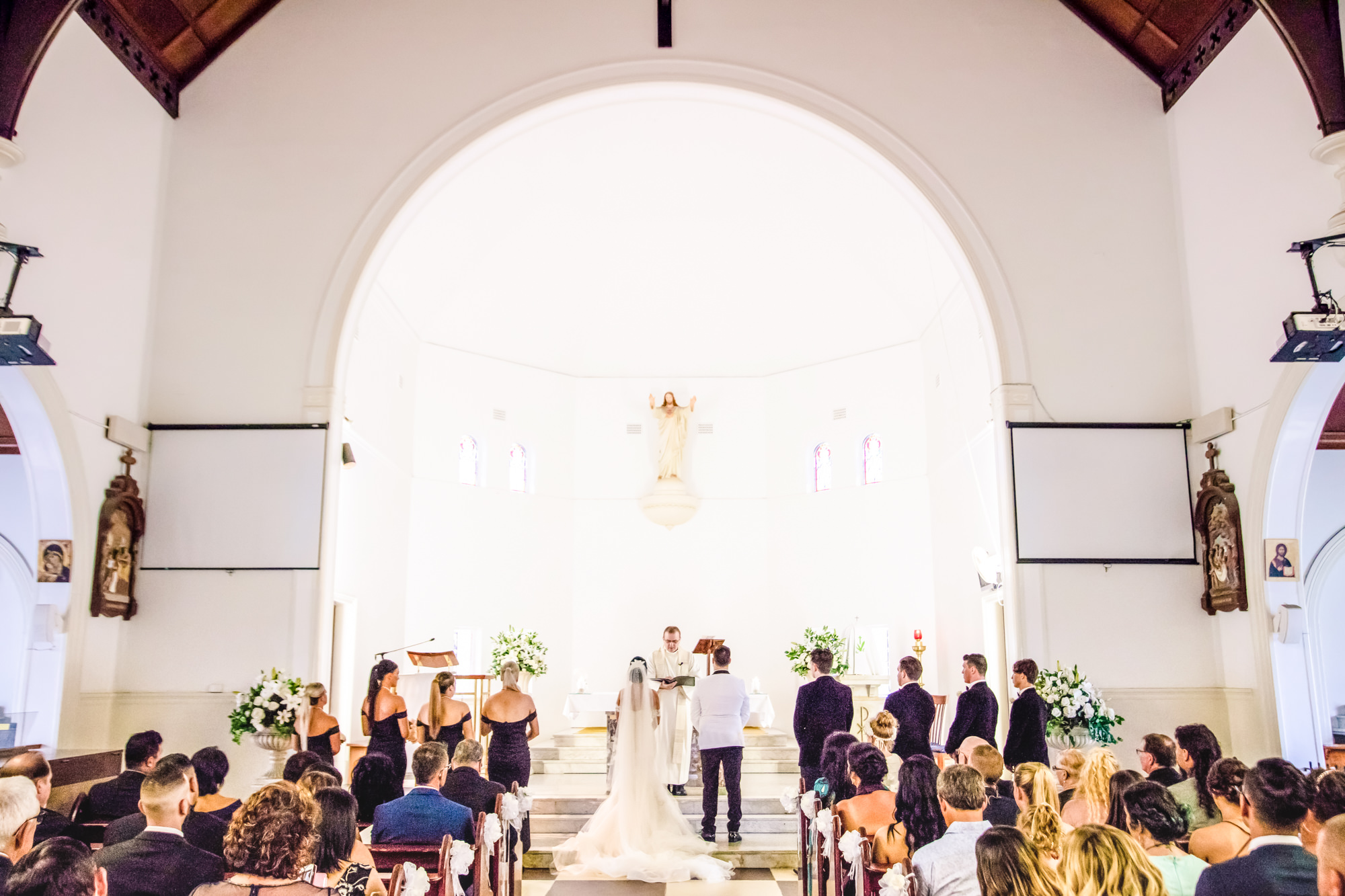 As the ceremony started at 3pm we needed to head over to St Columba's Catholic Church in Brisbane, a 30 minute drive from Sabrina's house. We raced over to Kedron, quickly getting out of the car. As the other team had previously turned up with the ceremony camera/audio gear it was quick and easy to get everything in order with precision before Sabrina walked through those doors. The Ceremony was a beautiful and lavish affair, that featured prayers and a few tears. It's always a beautiful moment seeing the first kiss, as Jacobs cheeky grin emerged as he was told to kiss HIS bride.