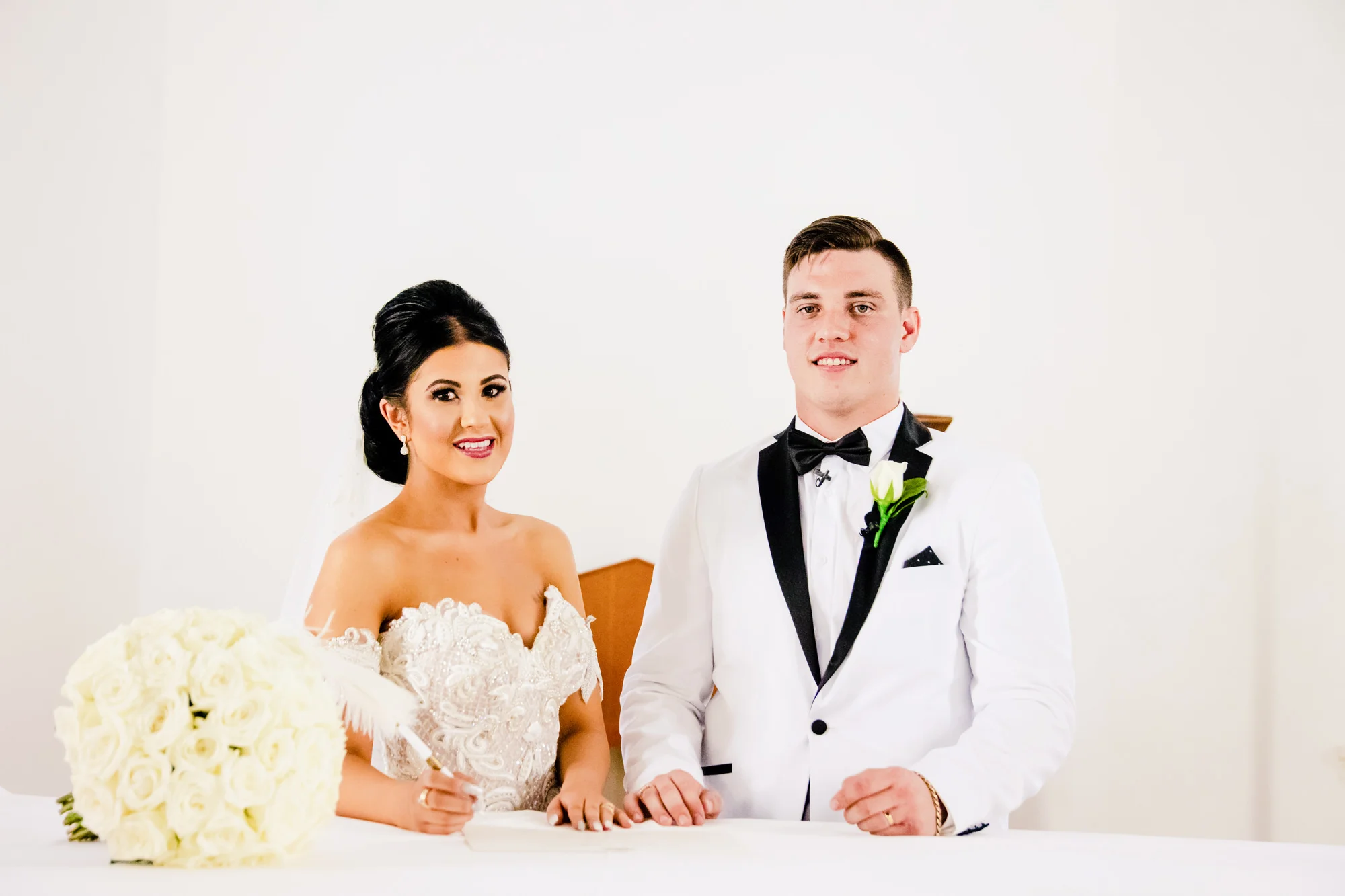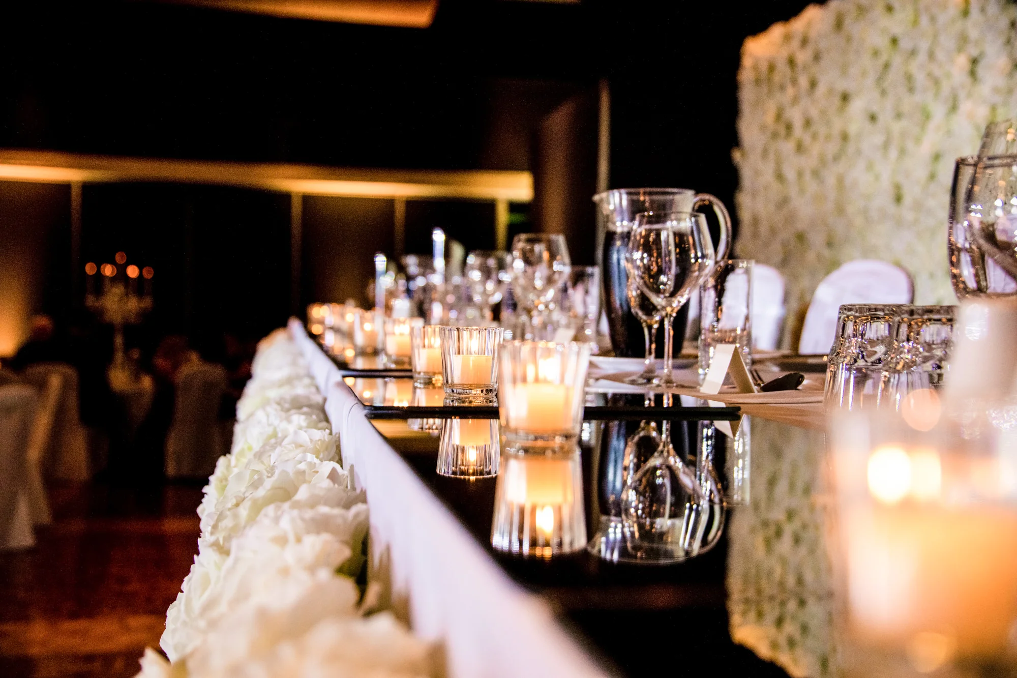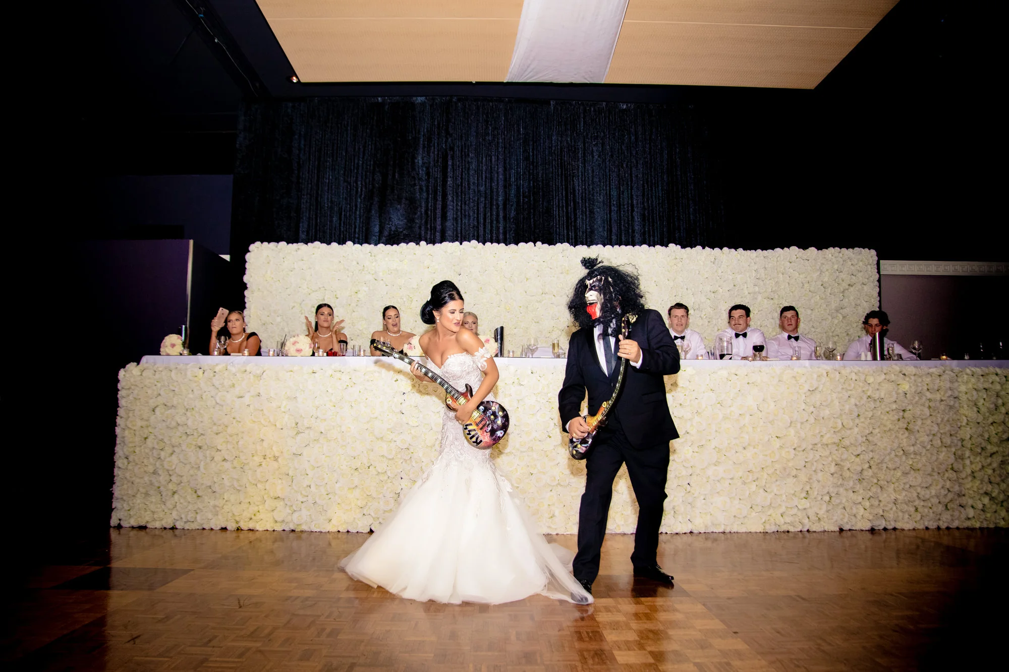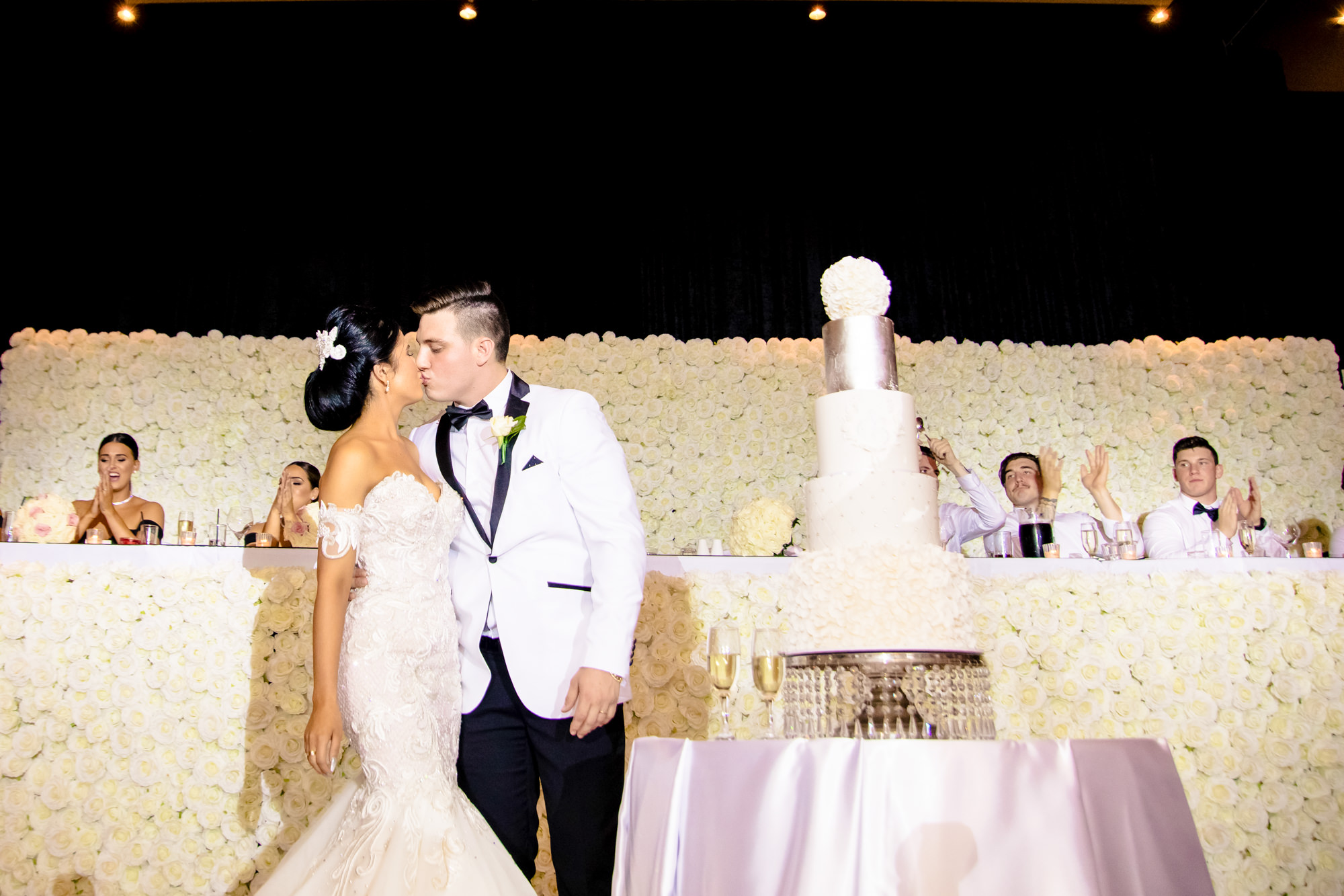 As we entered the grand ballroom the first thing you notice is the lavish Flower Wall made by Luxe Flower Wall Hire G&M Solutions. The white roses that went around the whole bridal table lit up the dance floor, it was also helped by Sabrina’s exquisite centrepiece choices that tied the room in effortlessly with the lavish chandeliers.