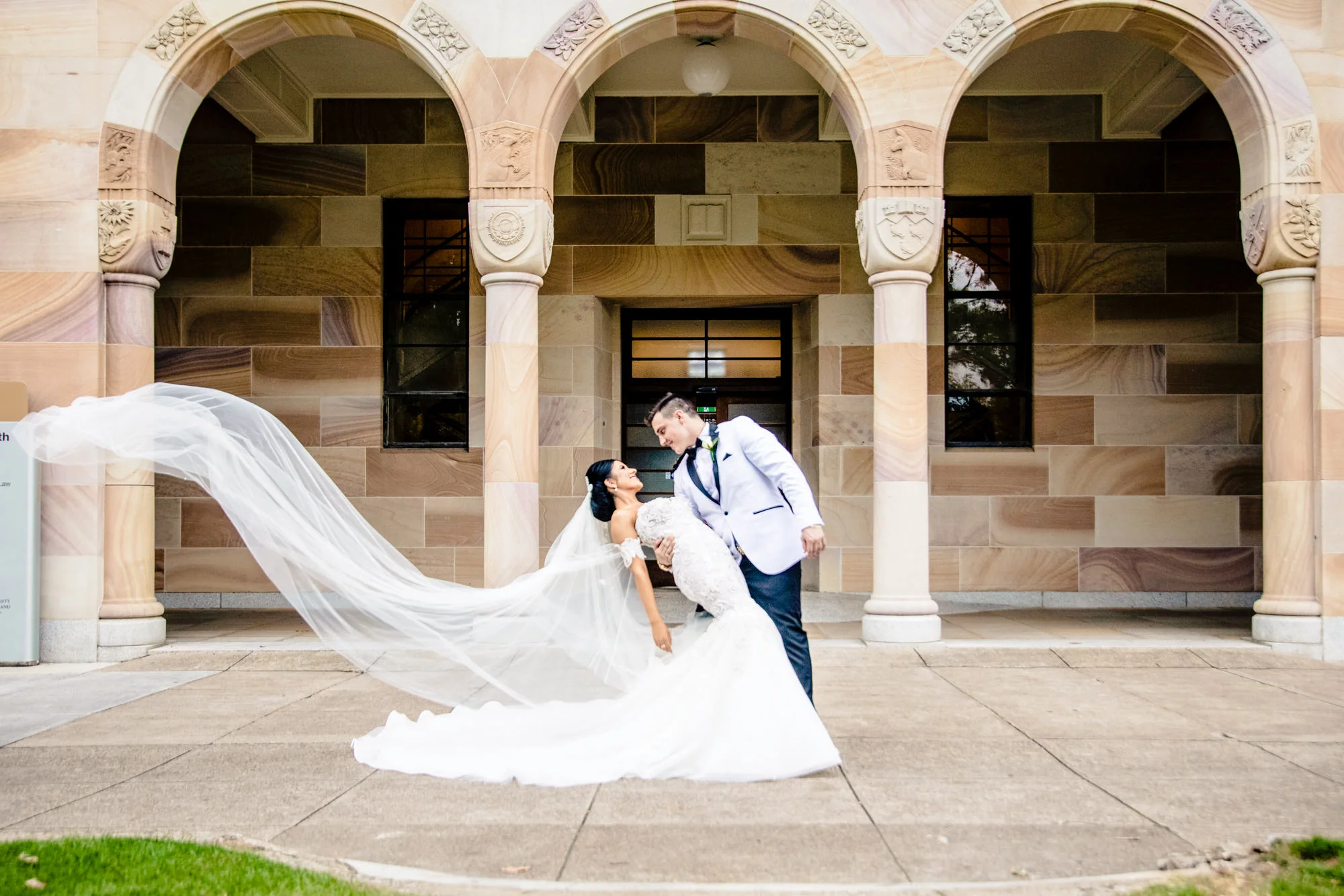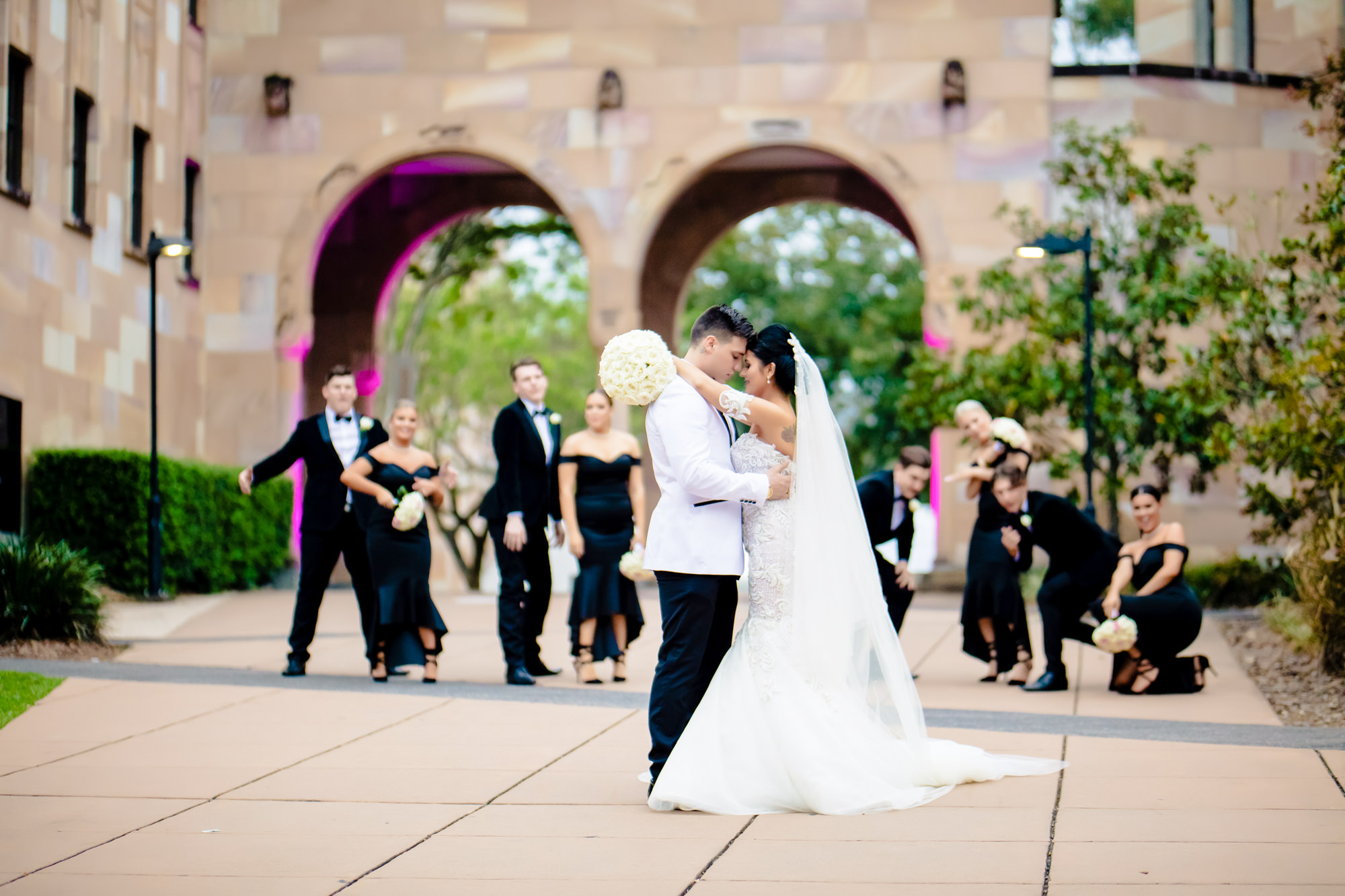 As it was raining throughout the day we made the most of our photo section by going to UQ university that has stone pillared walls that make for excellent Photography/Videography. Here we were able to capture the intimate moments as well as some pretty amazing bridal group shots before heading of to the Greek club for the reception.