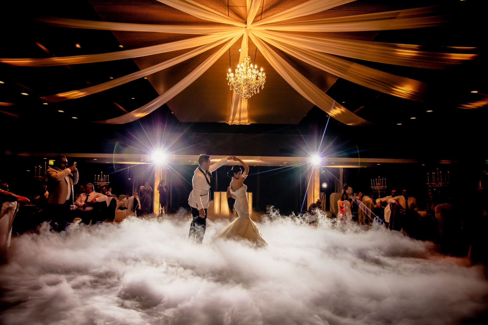 In the middle of the grand ballroom was the lavish wedding cake created by Deliberately Delicious Cakes in Brisbane City. After taking some of the snaps of the ballroom it started to quickly fill with the family and friends from Jacob & Sabrina's wedding. No sooner than later the reception entrance started and we were treated to a different to a different style that used shadows to recreate how they first met! We were catered to some amazing speeches that had Sabrina's father shedding a tear, and Jacob's best man and brother sharing a few sneaky secrets on the podium.