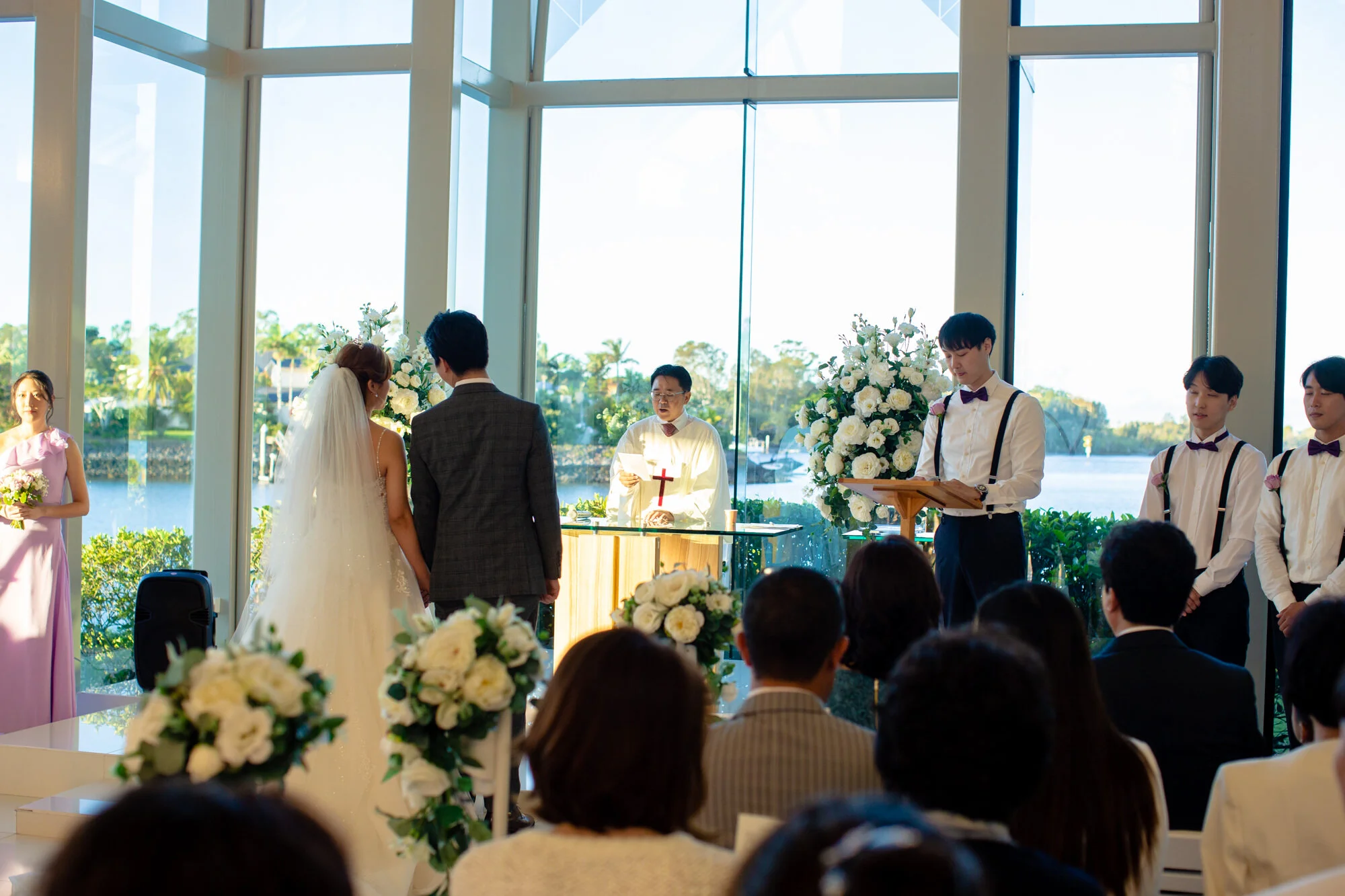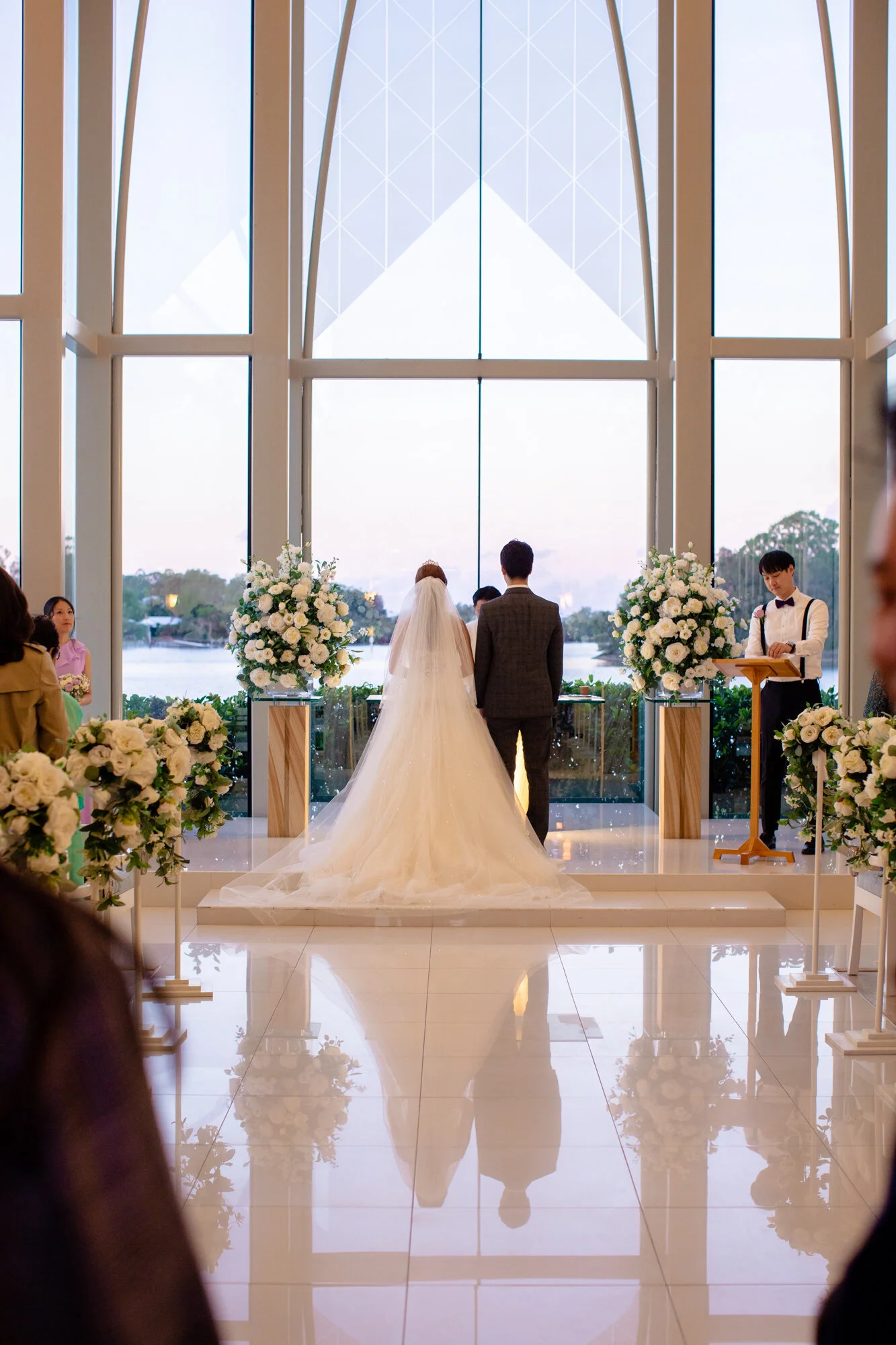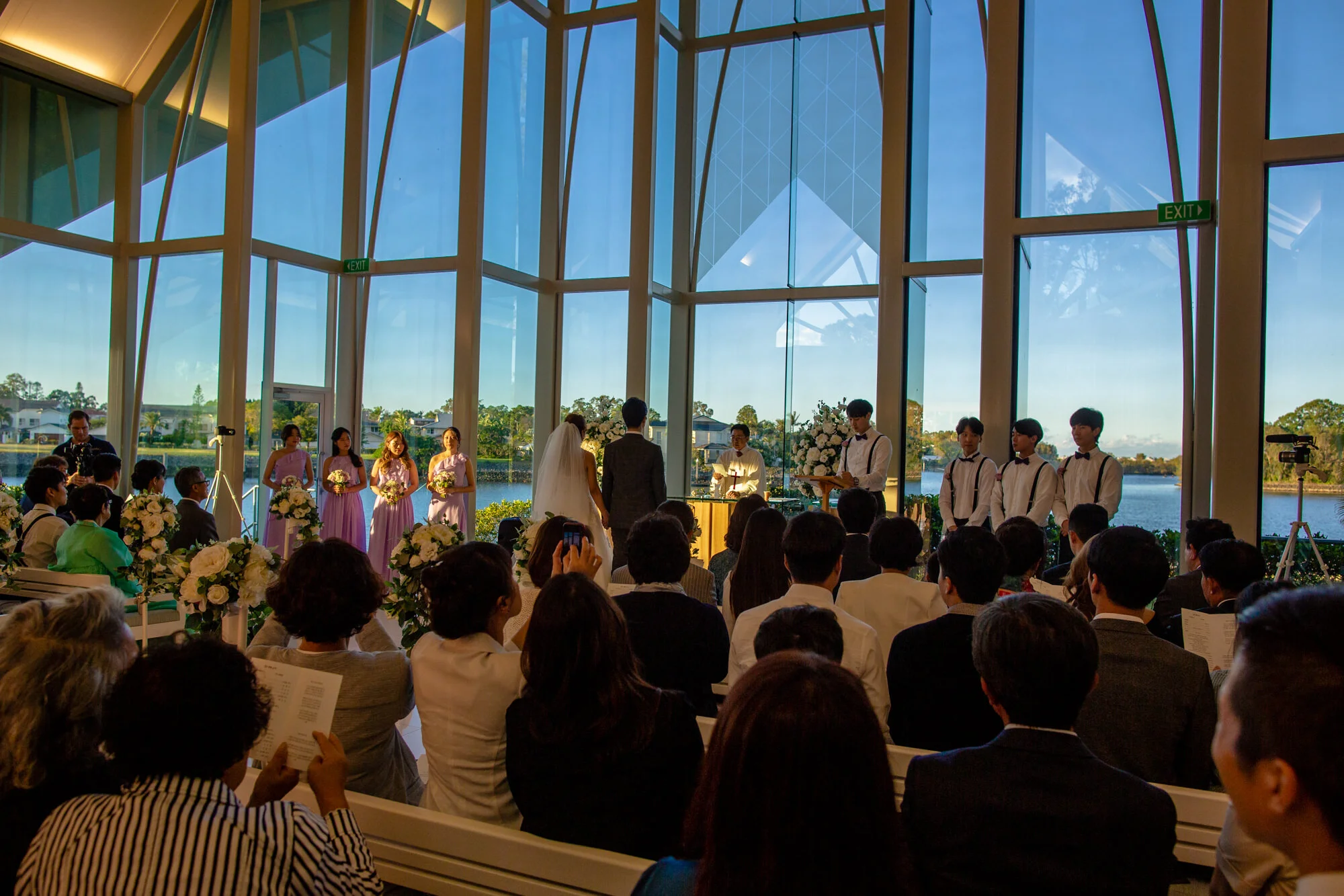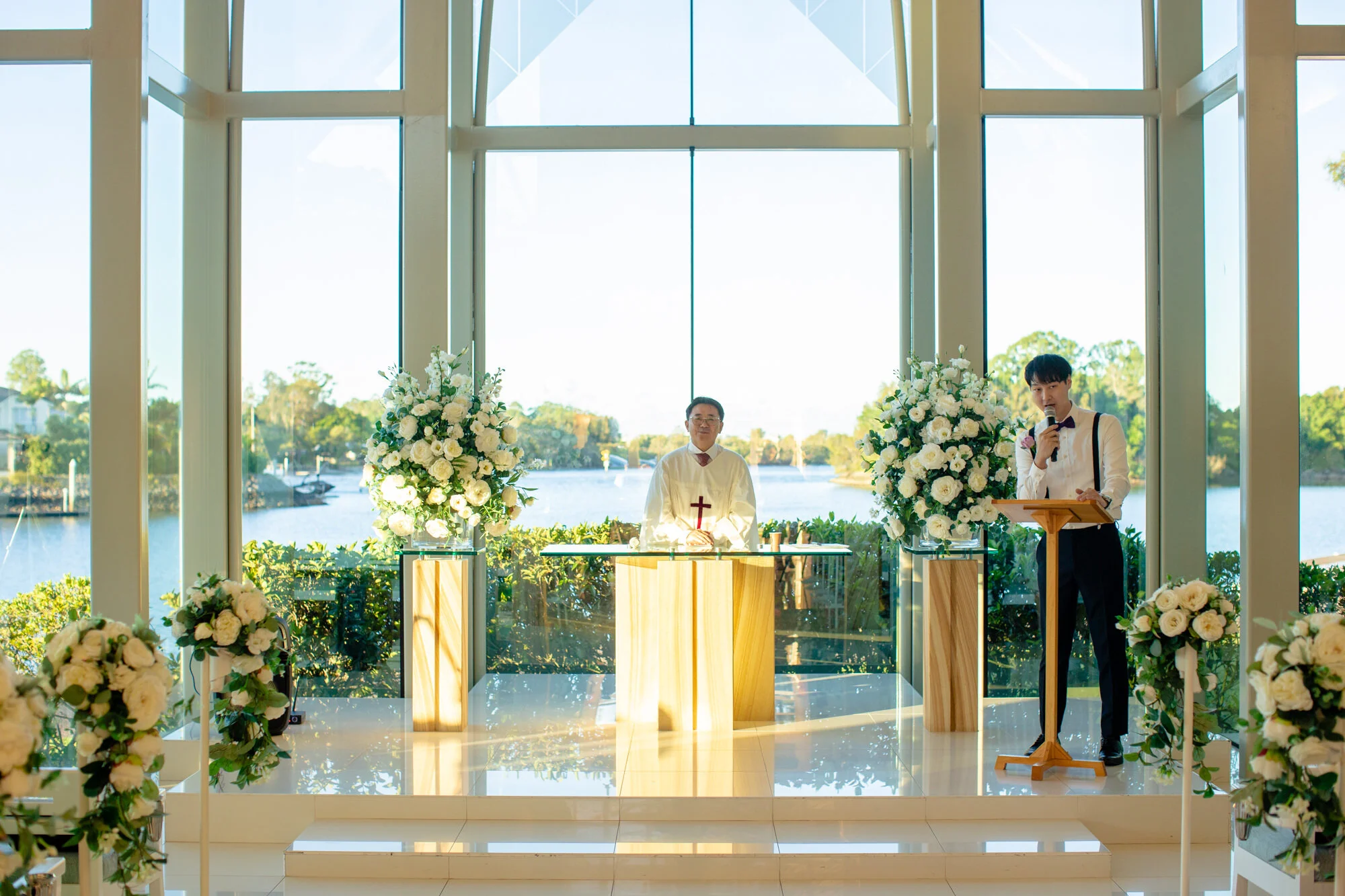 We arrived at the amazing Intercontinental chapel which is certainly a landmark for weddings around the Gold Coast, Everybody looked very smart and the groom arrived, nervous but excited. The groomsman met the bridesmaids at the entry and walked down the aisle with them which was a nice touch. Elena was walked down by both her Mother and Father it was a beautiful ceremony with a mix of culture which included some singing.