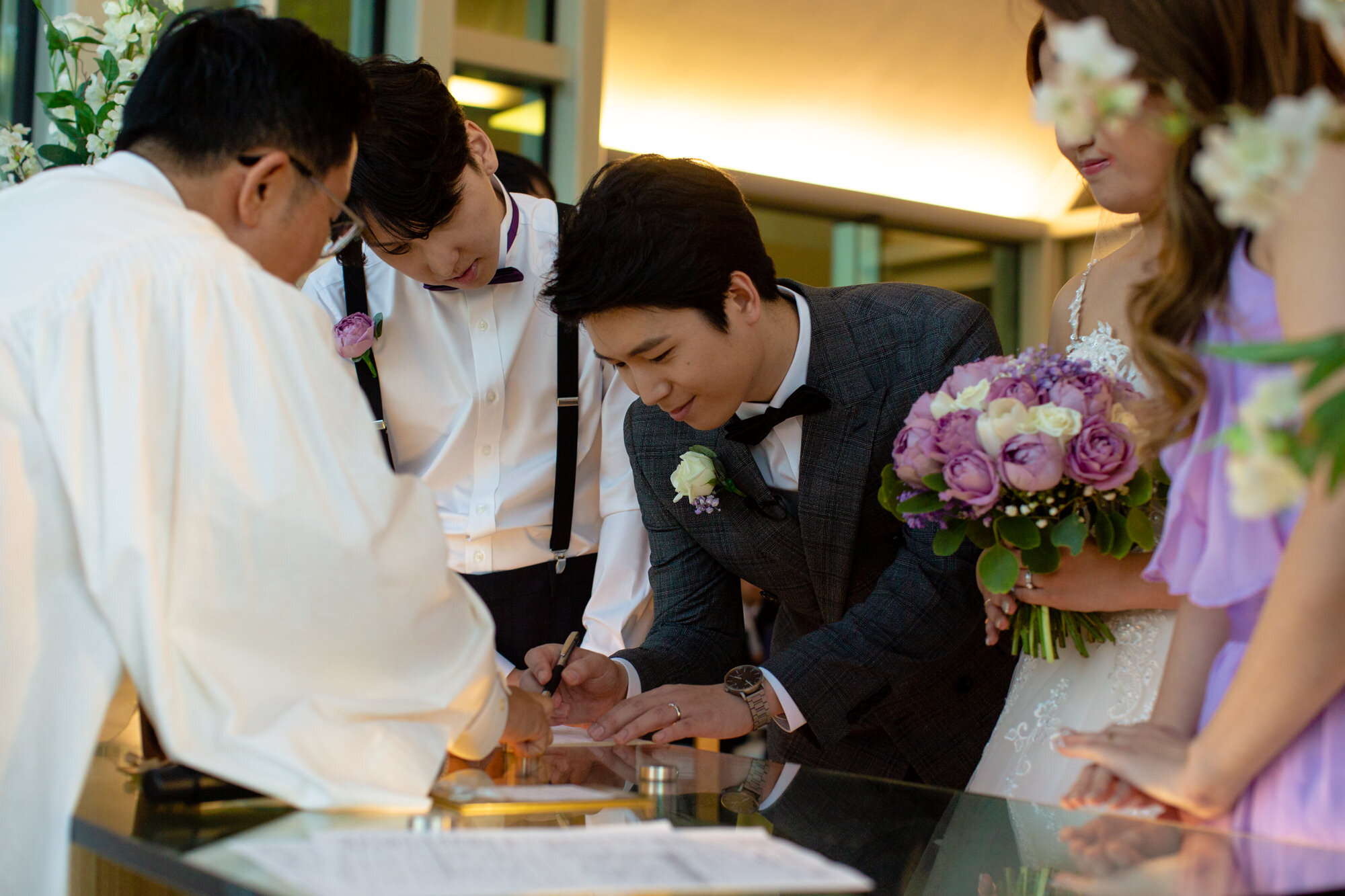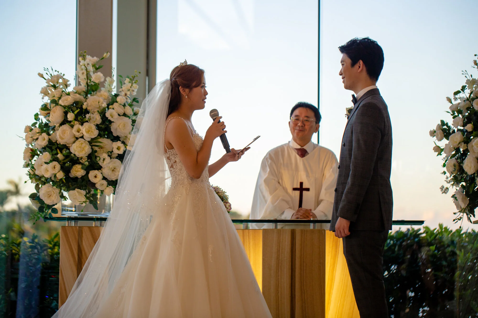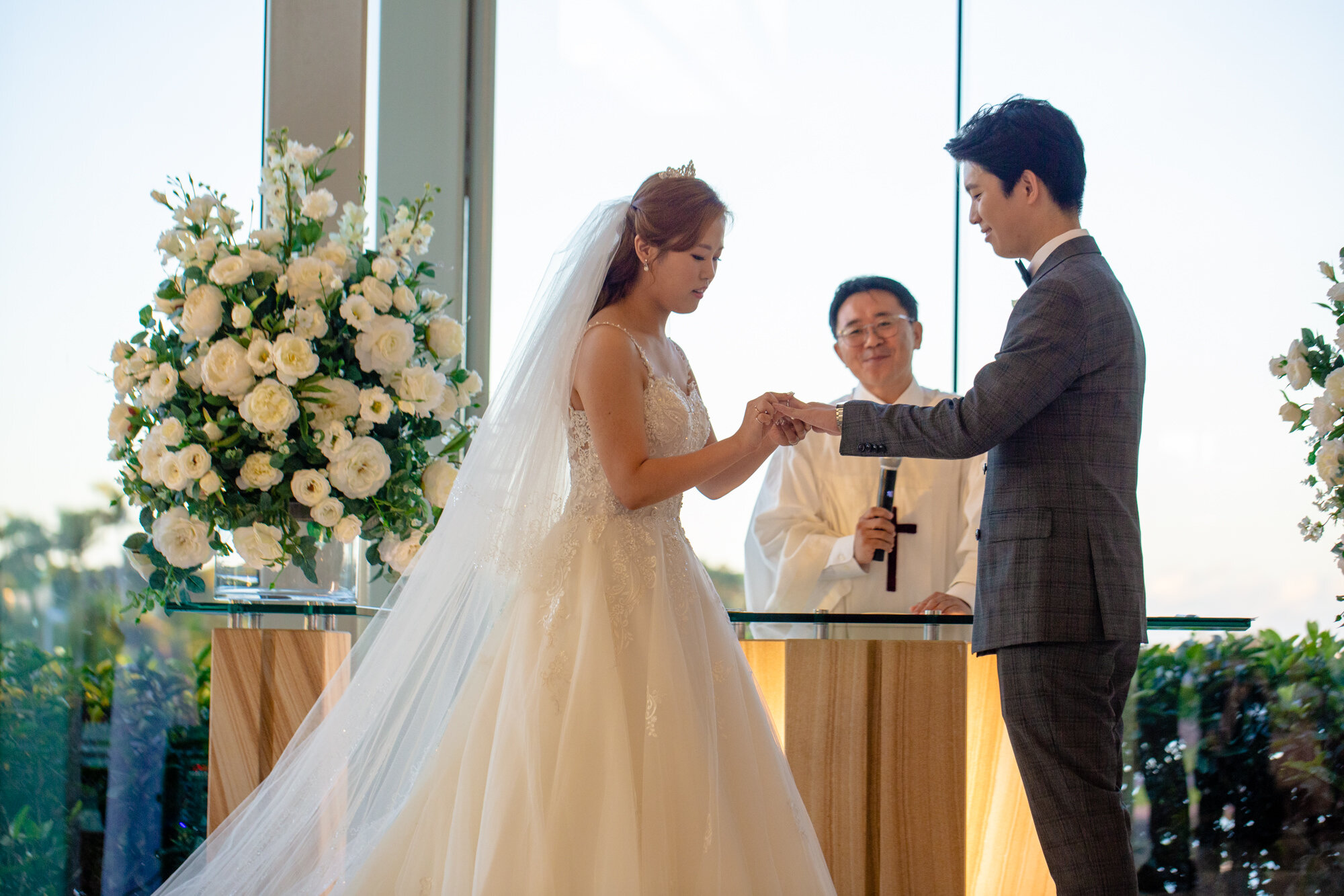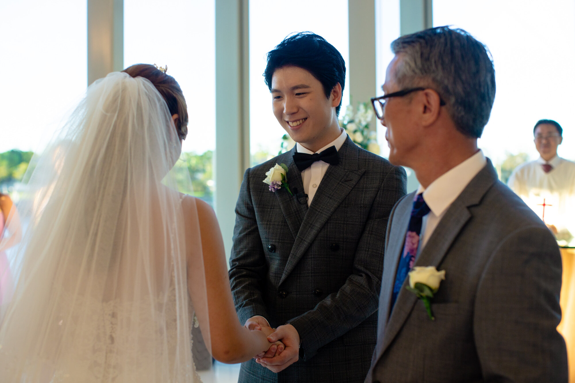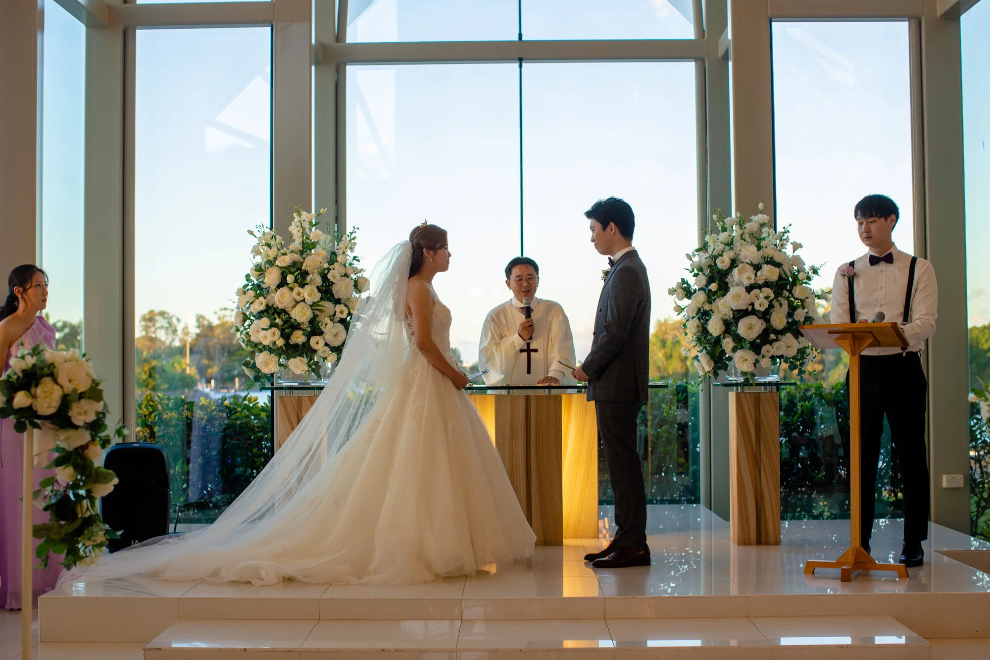 We arrived at the amazing Intercontinental chapel which is certainly a landmark for weddings around the Gold Coast, Everybody looked very smart and the groom arrived, nervous but excited. The groomsman met the bridesmaids at the entry and walked down the aisle with them which was a nice touch. Elena was walked down by both her Mother and Father it was a beautiful ceremony with a mix of culture which included some singing.