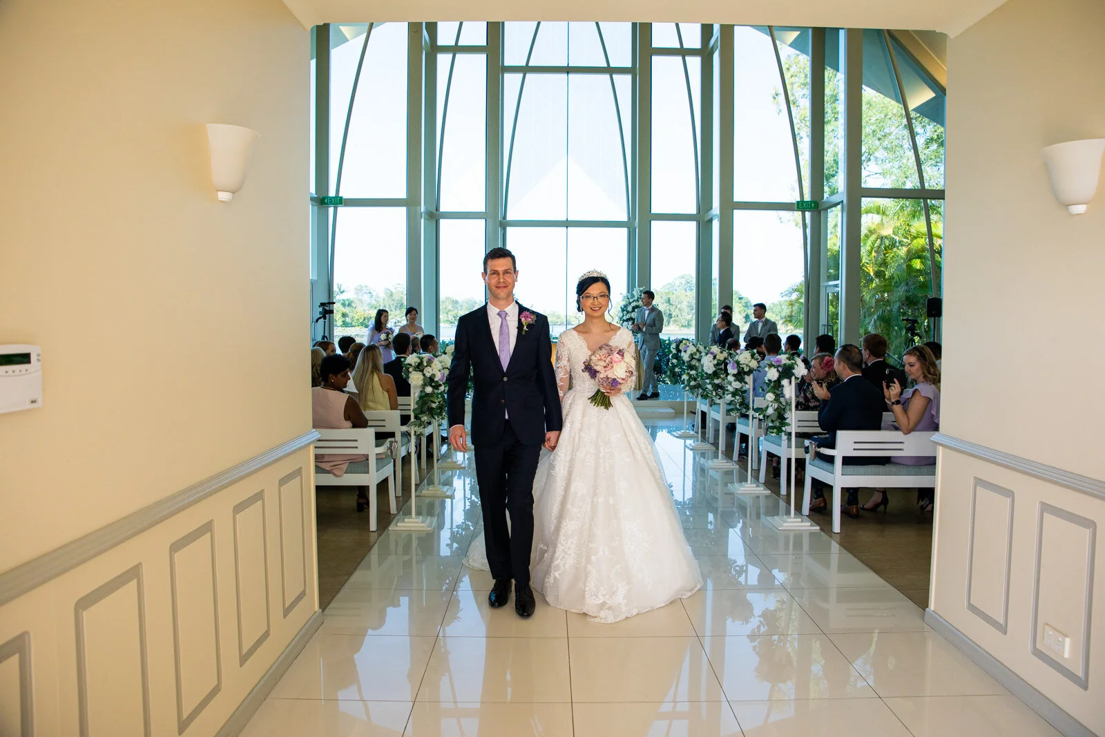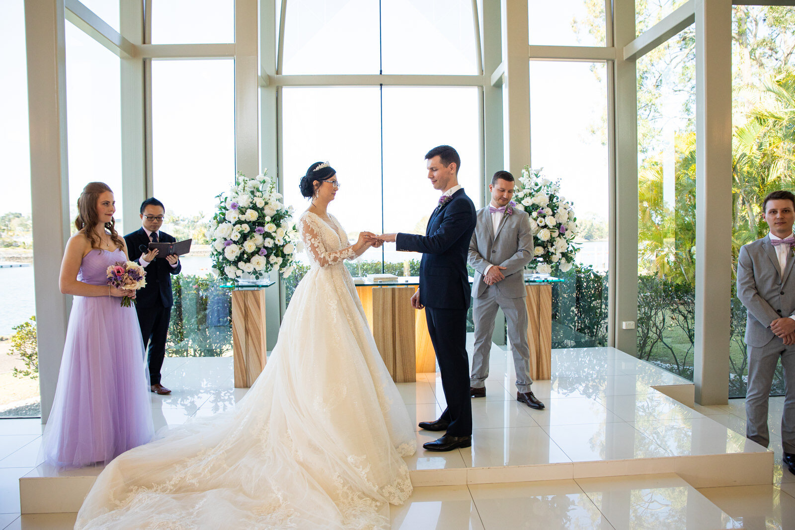 Before long it was time for the ceremony. The Intercontinental Sanctuary Cove is famous for its beautiful wide open glass chapel, it’s the sort of wedding chapel a bride will notice and recognise almost instantly. Both Nick & Lydia had selected such a beautiful wedding venue and as always, we were super excited to shoot here.