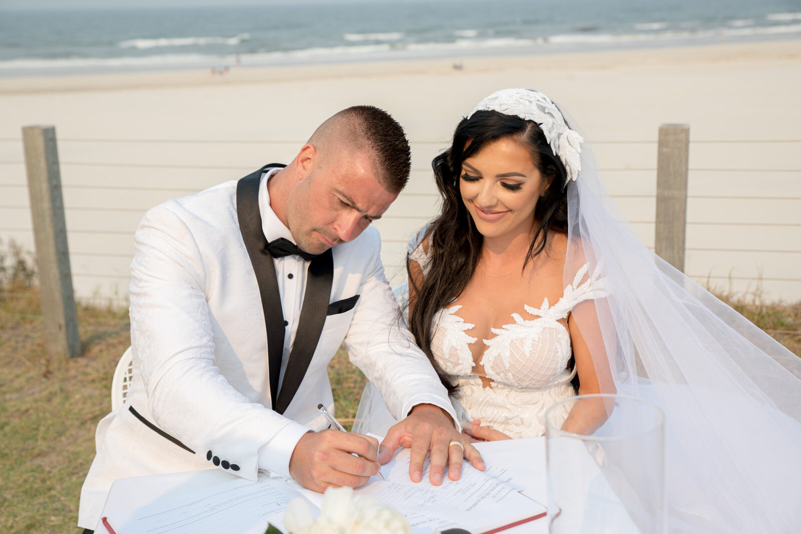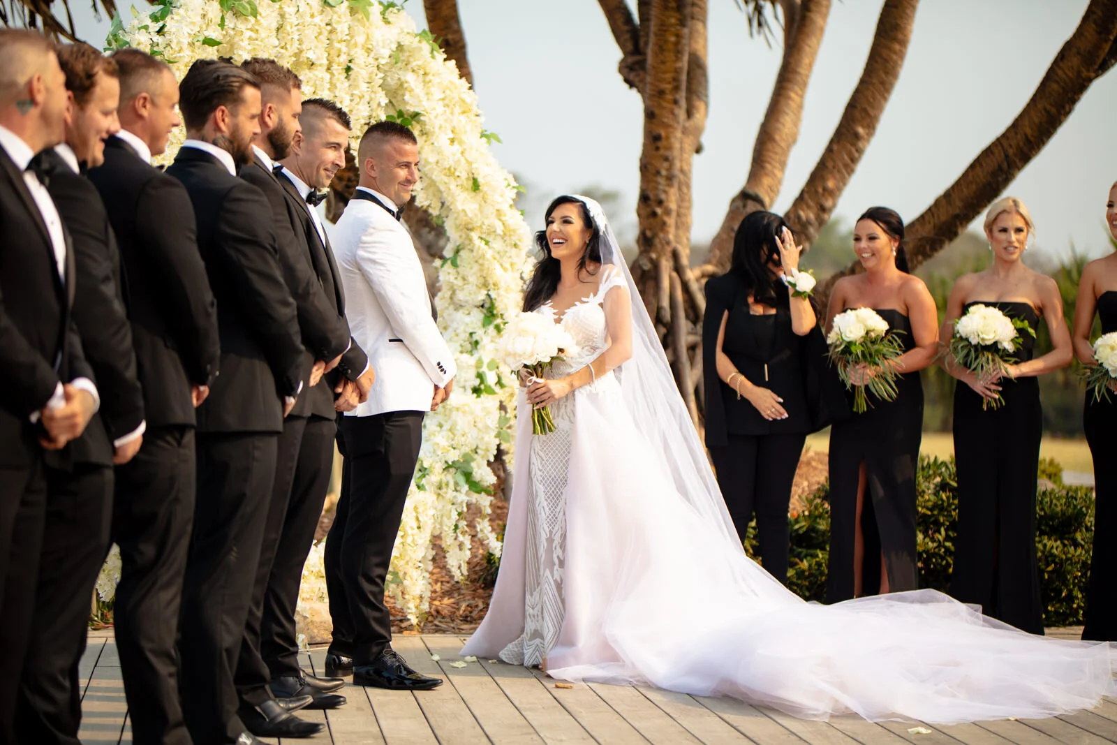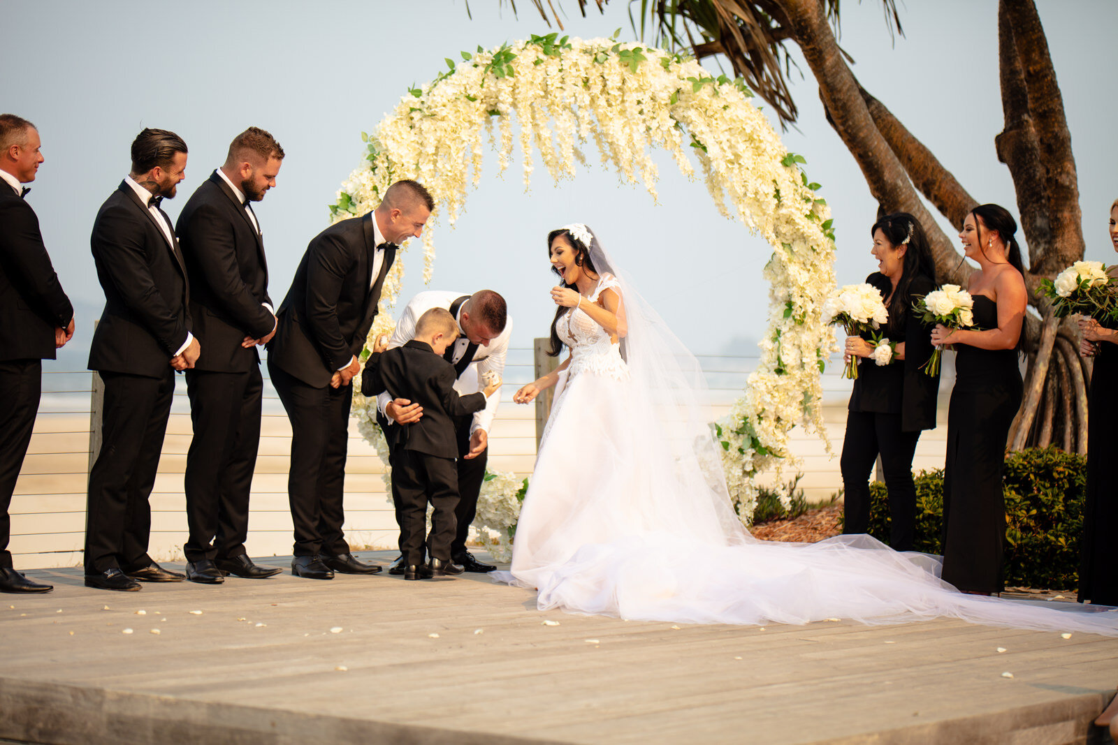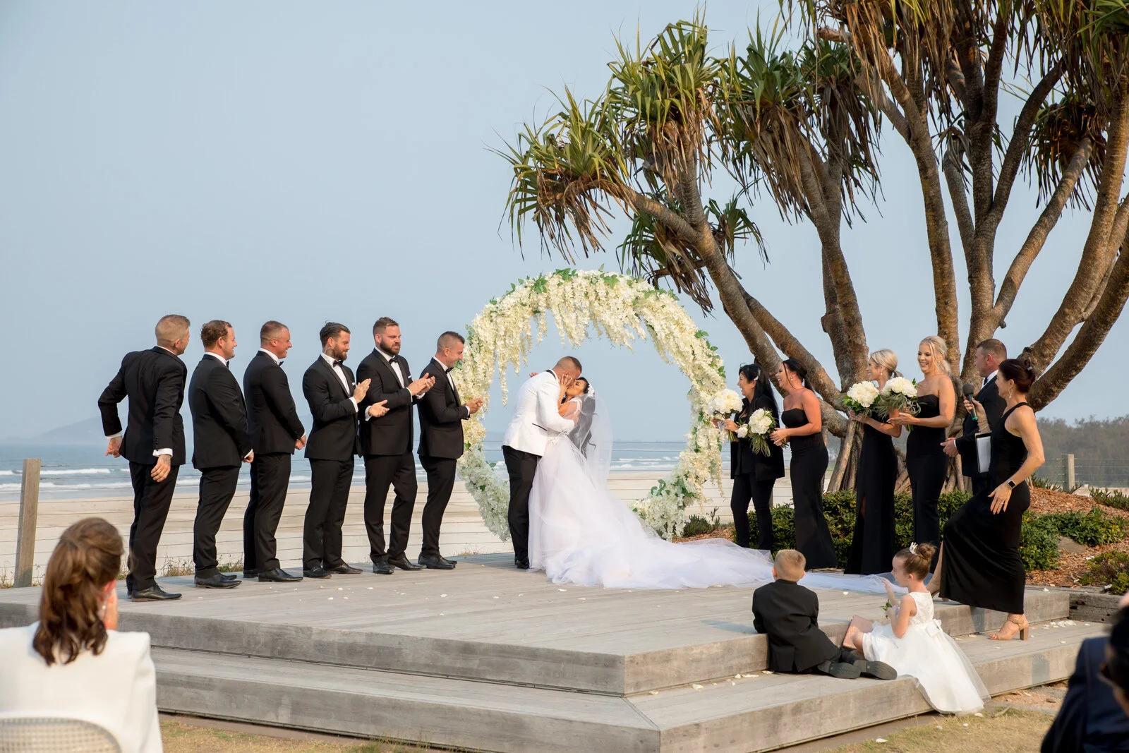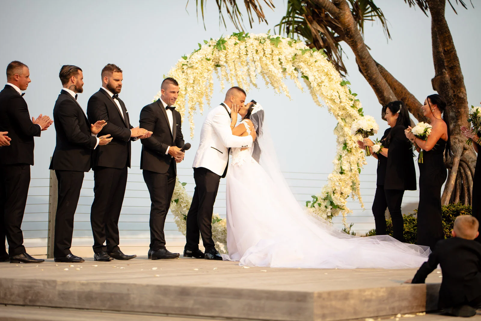 With gorgeous ocean views, the ceremony was in an epic location. Guests starting to arrive you could definitely feel the love everyone had for Ben and Brittni-Lea. The ceremony was short and sweet, straight to the point and exactly what it was always meant to be, perfect. If you are looking for an absolute beachfront Ceremony Location, the ceremony area at Elements of Byron will not disappoint. The French Petal also added that finishing touch to the area, creating a jaw-dropping circle arbour for Ben and Brittni-Lea to stand before as they said their vowels.