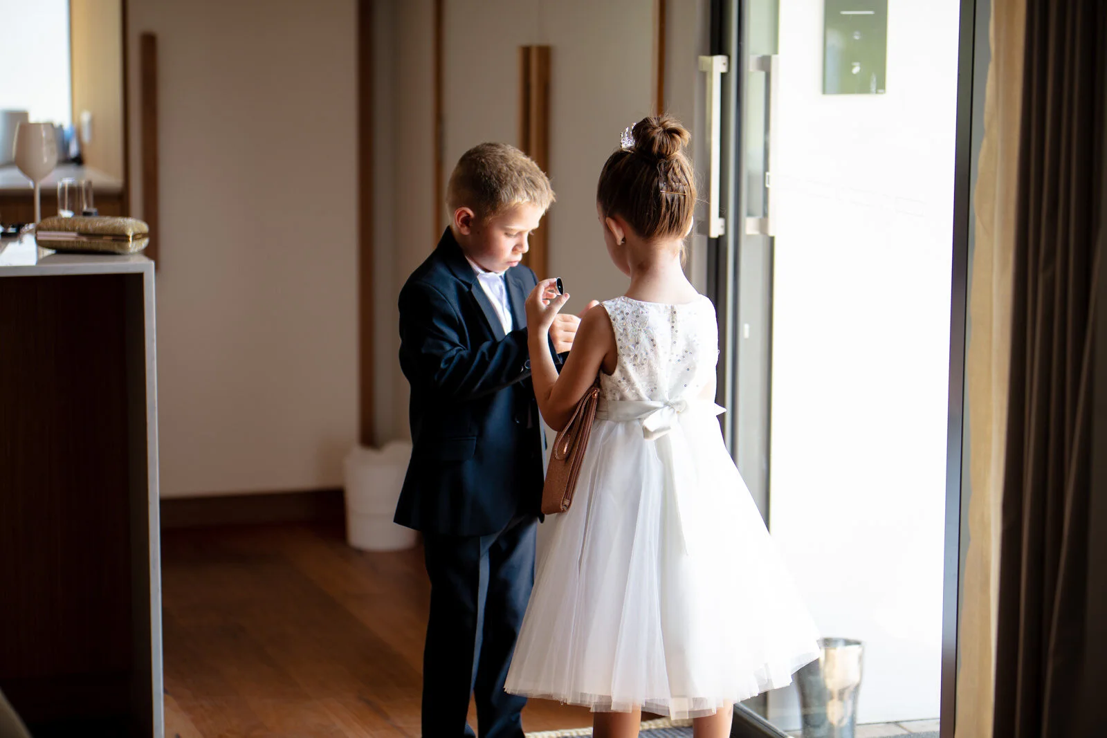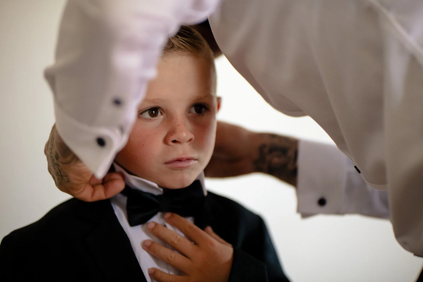 After finishing up with the boys we went over to Brittni-Lea and the girls. We arrived just as she was having the final touches made to her hair and she looked absolutely stunning. Her dressed from Hollyrose Couture suited her to perfection, it was such an elegant and flattering style. With a few finishing touches, Brittni-Lea was ready to head to the Ceremony.