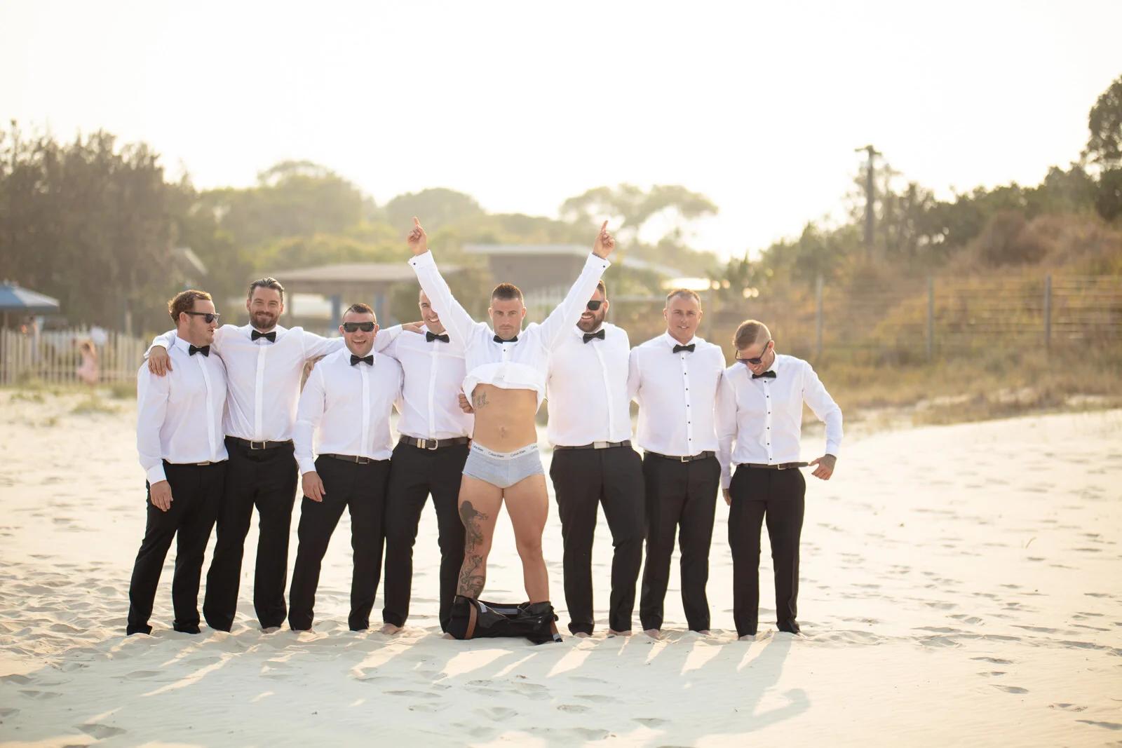 Arriving at the venue the staff were super helpful with getting us to where we needed to go. As we got to the Groom and groomsmen, it became apparent that it was going to be a fun day. Lots of personalities and seemed like a super fun group of people. They all stripped down to their underwear for part of the shoot, walking around the resort, beer in hand, letting the good time roll.